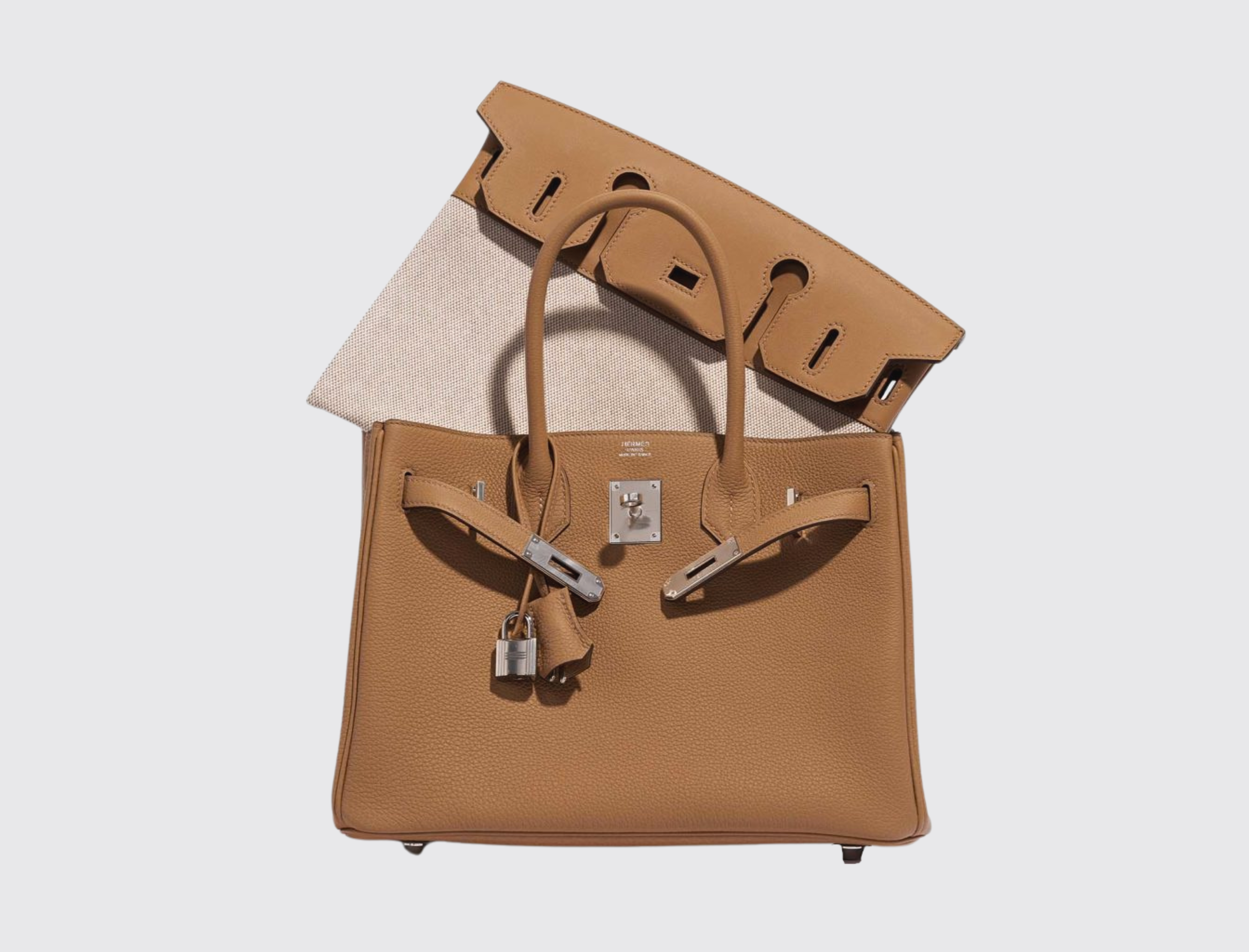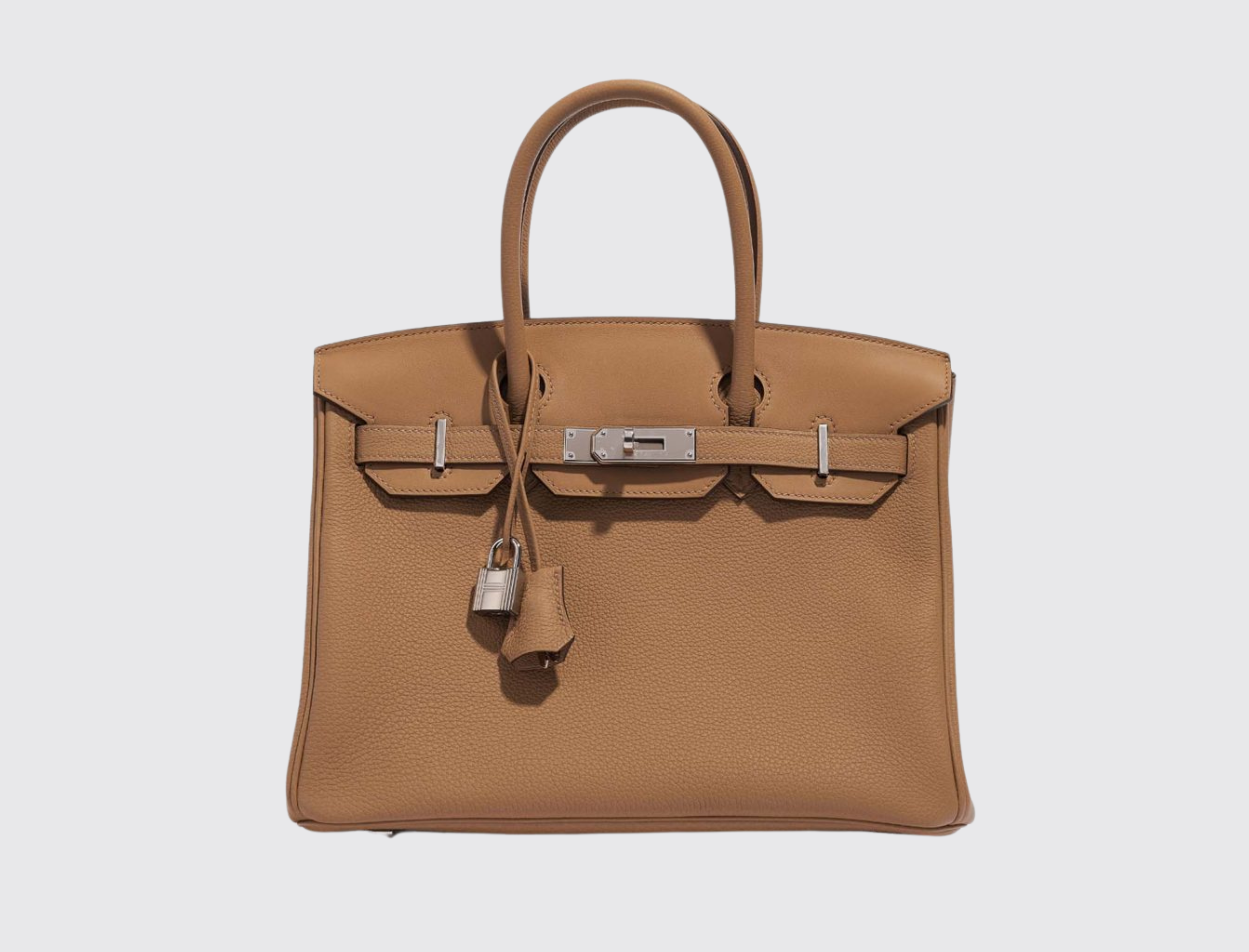 The Hermes Birkin 30 is a compact yet iconic symbol of luxury and craftsmanship. In the sophisticated mushroom color, this bag offers a chic and versatile look, perfect for both day and evening wear.