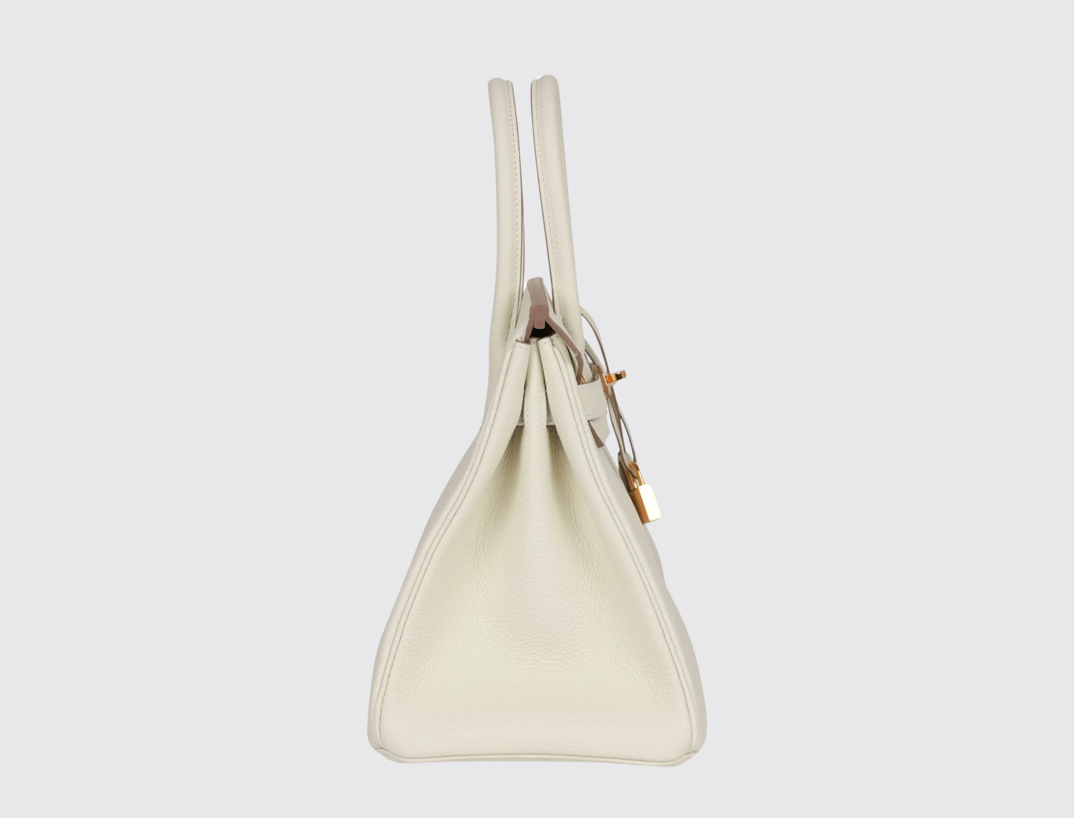 The Hermes Birkin 30 is a compact yet iconic symbol of luxury and craftsmanship. In the sophisticated mushroom color, this bag offers a chic and versatile look, perfect for both day and evening wear.