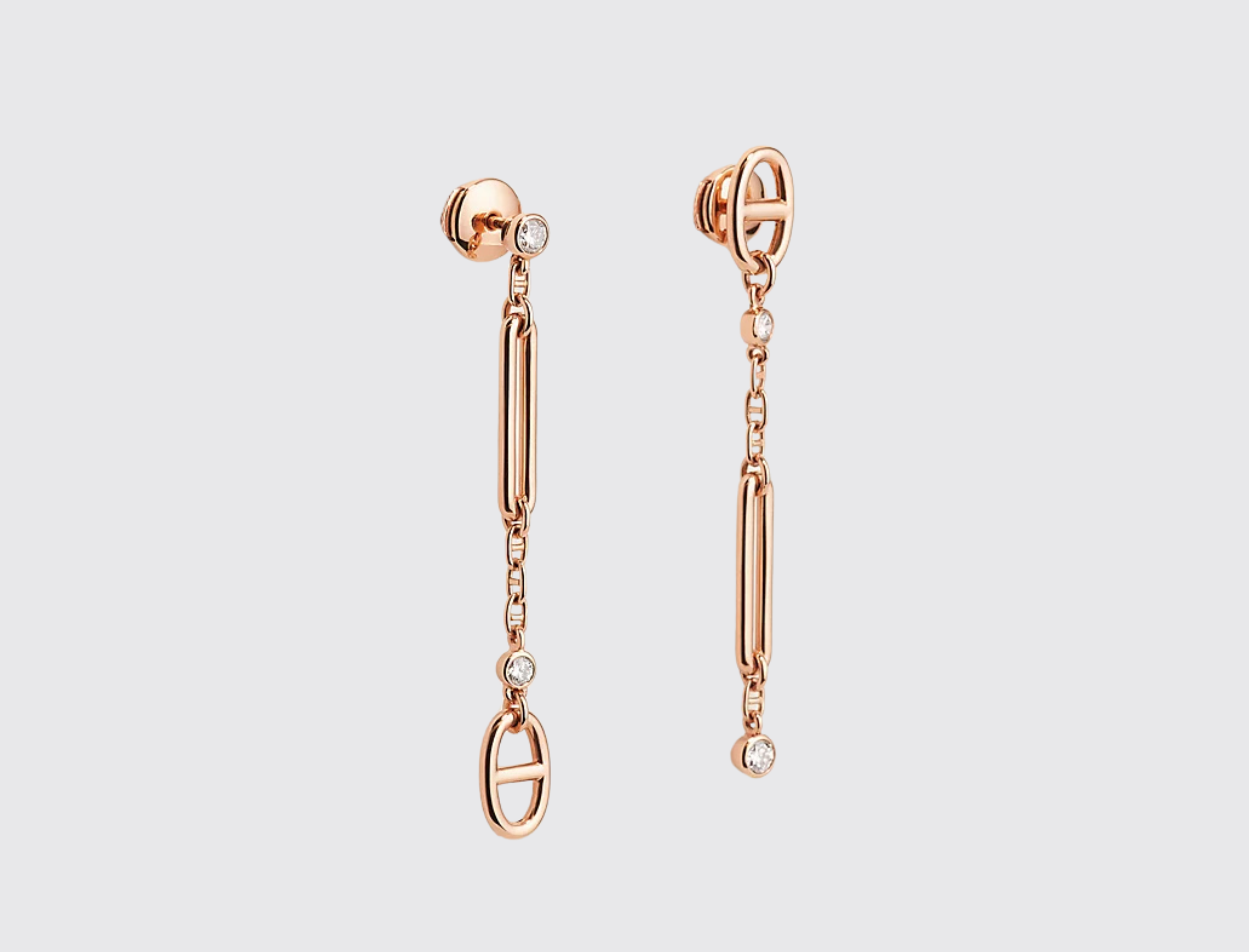 - Earrings in rose gold set with diamonds