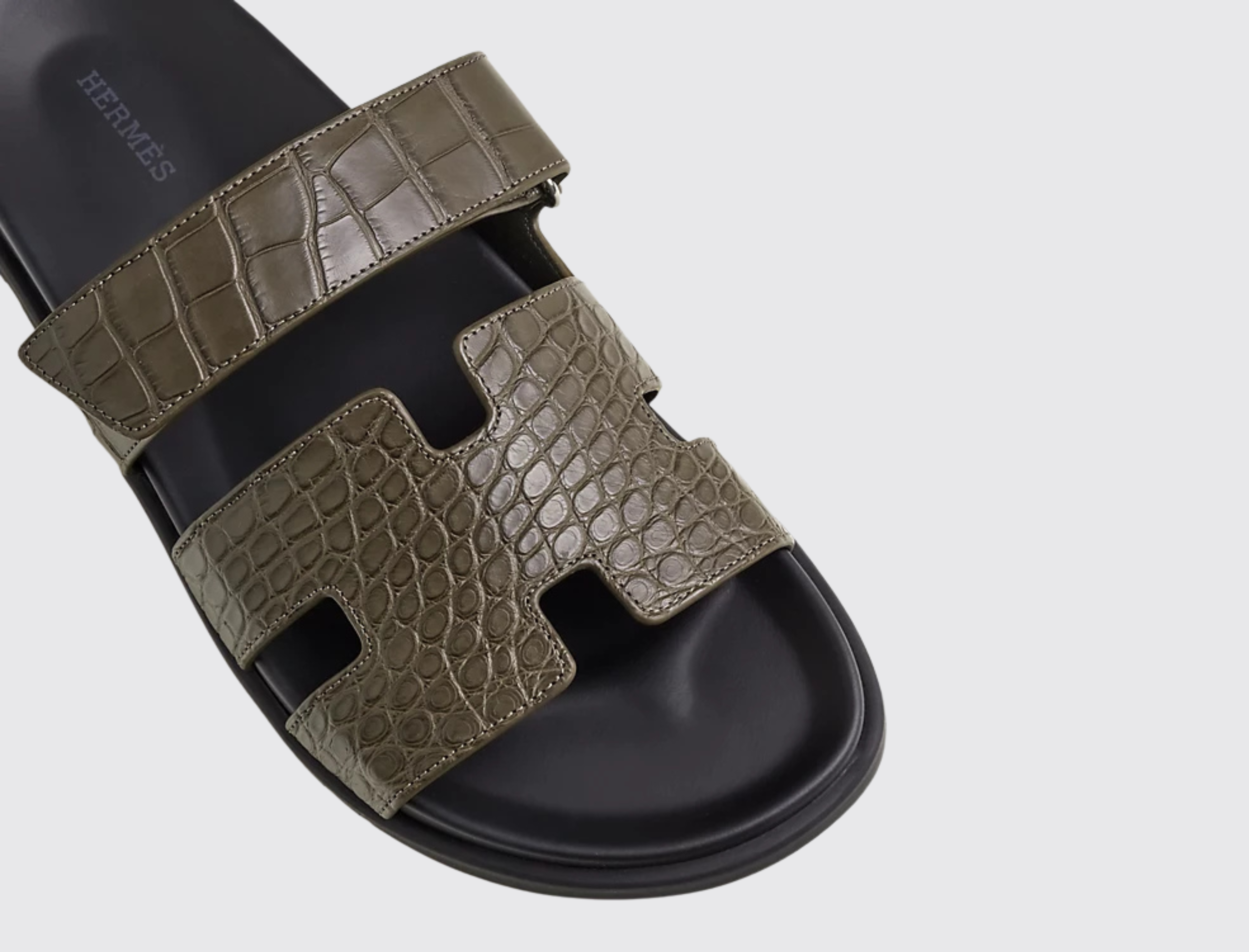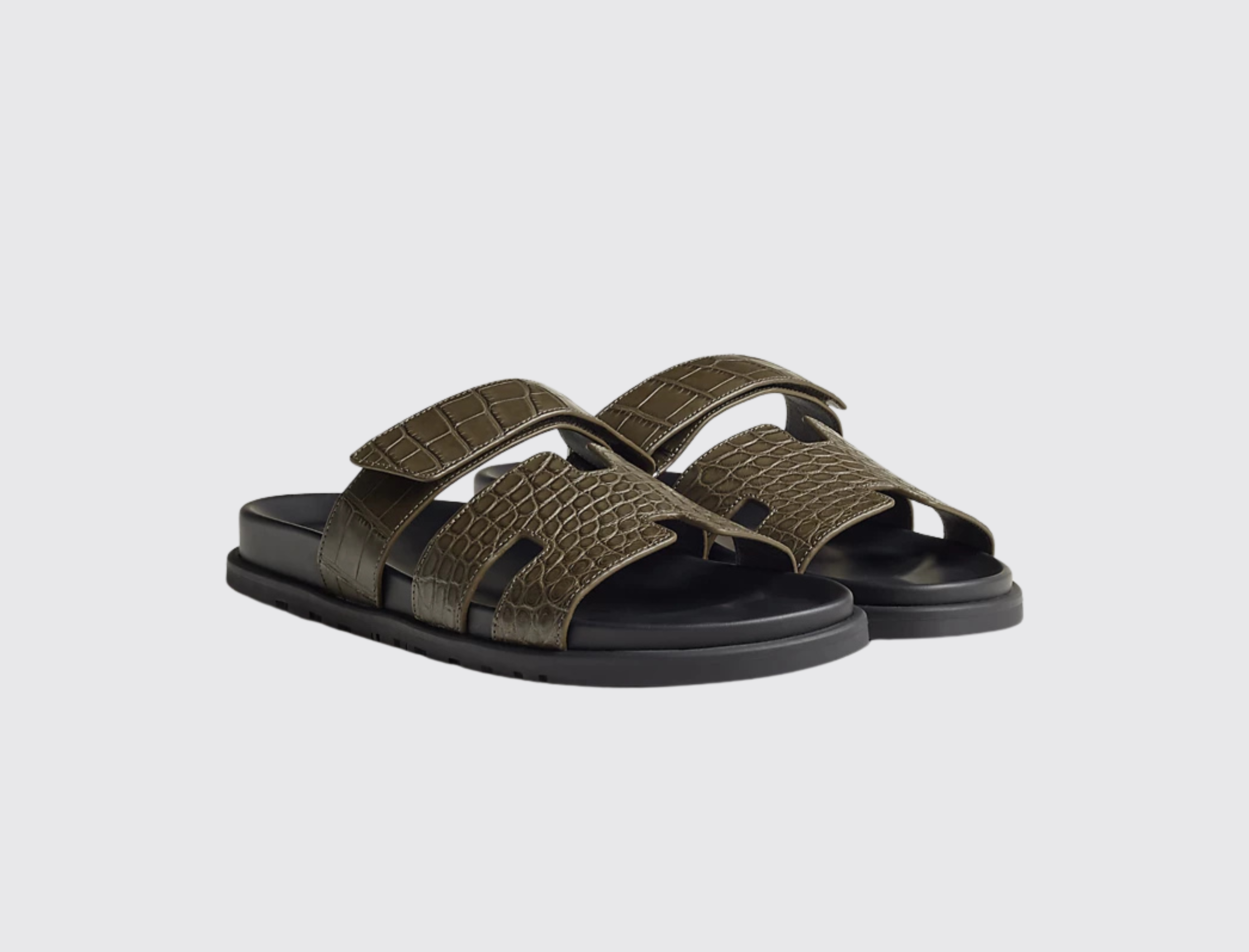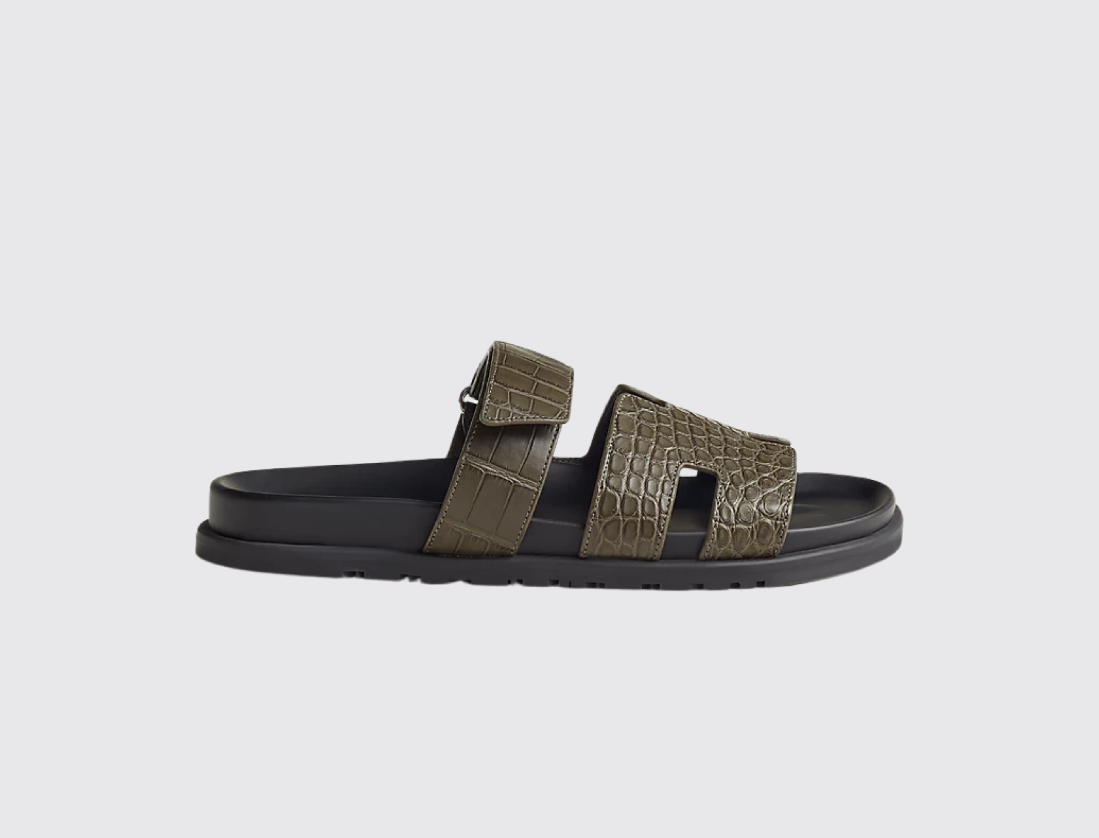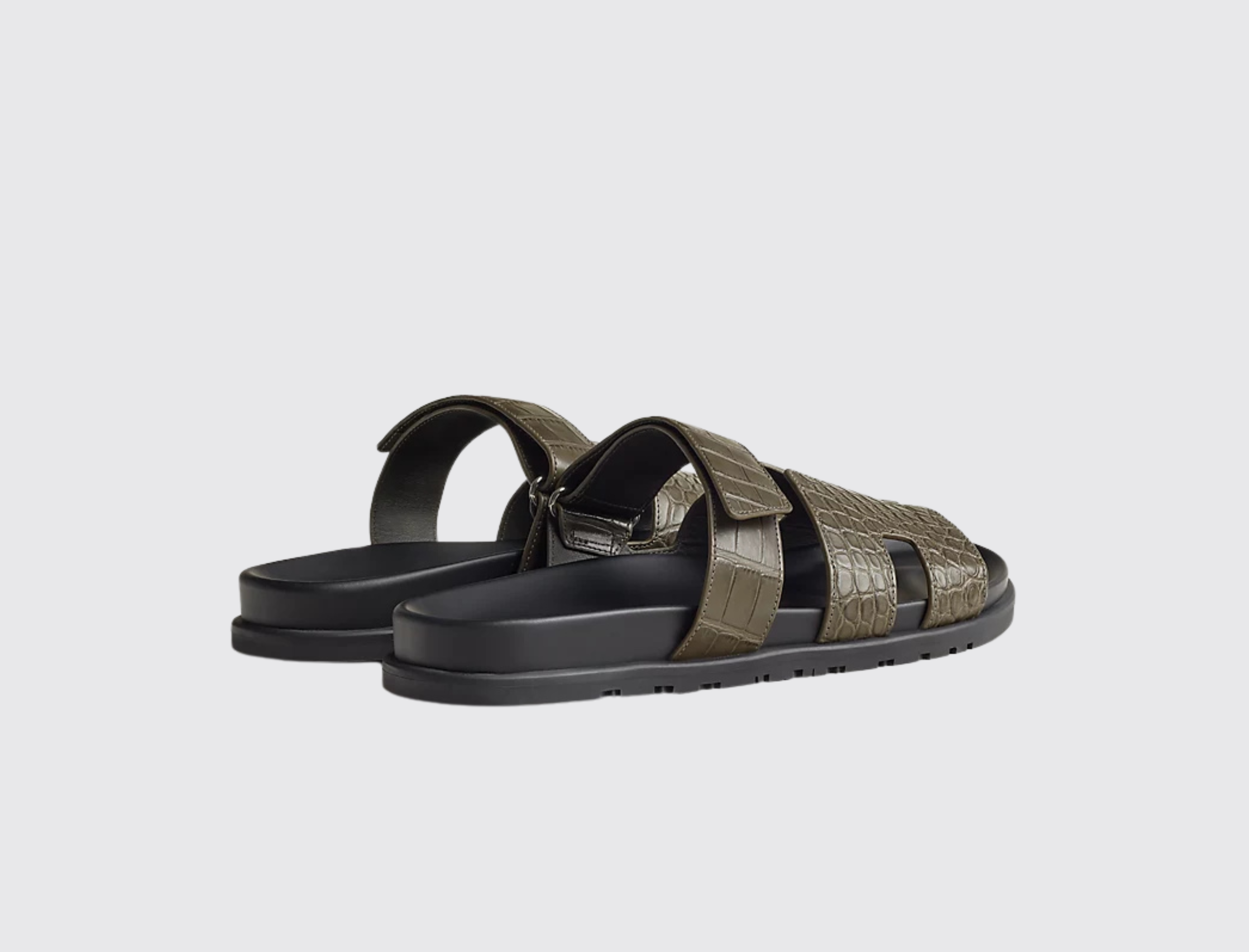 Techno-sandal in matte alligator with anatomical rubber sole and adjustable strap. A sleek design for a comfortable and casual look.
