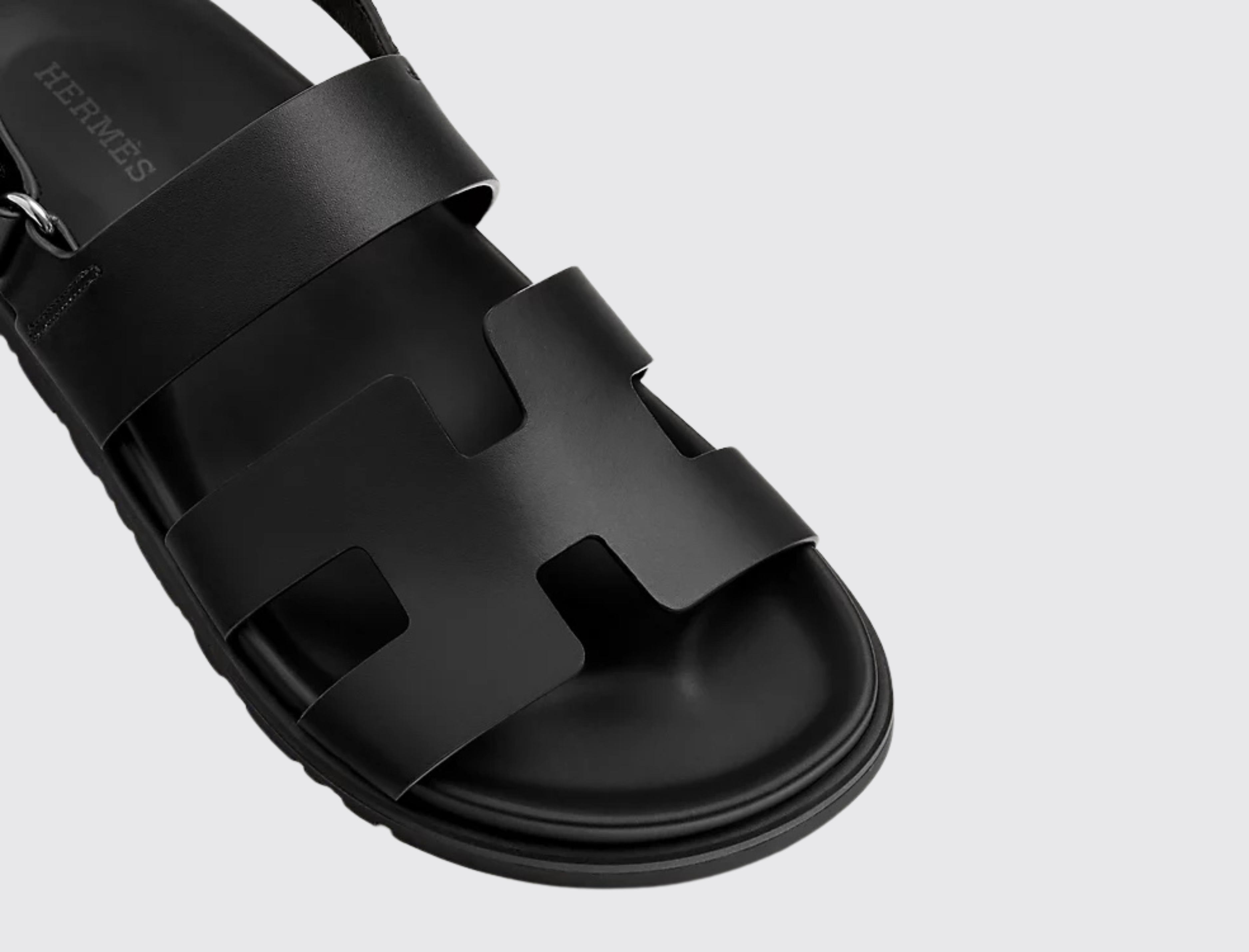 The Hermès Genius Sandal features bold leather straps, a contoured sole, and clean lines—offering a modern, architectural take on everyday comfort.