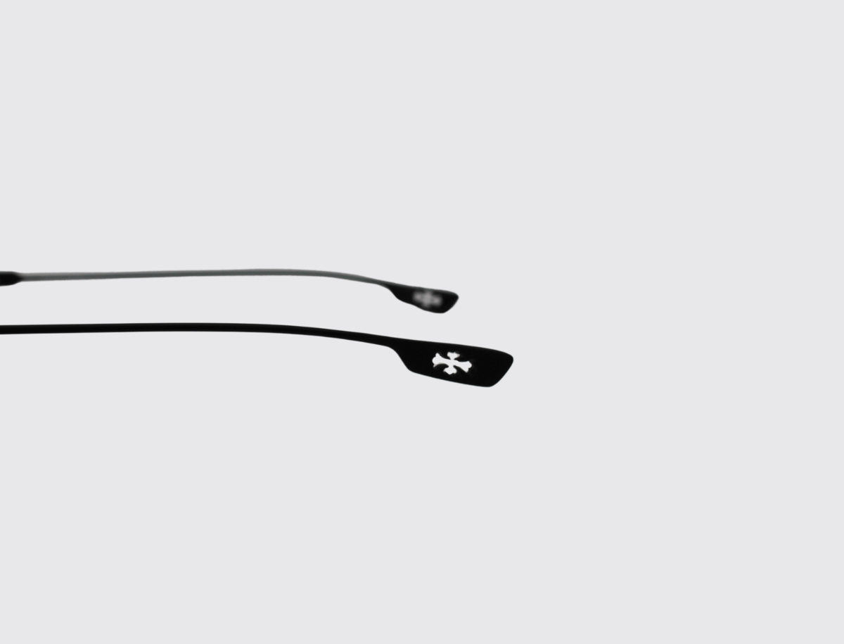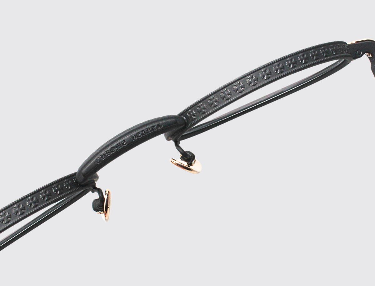 The Honey Dipped Glasses are within the luxury eyewear collection by Chrome Hearts. With intricate detailing at the temples, the overall design is exceptional.
