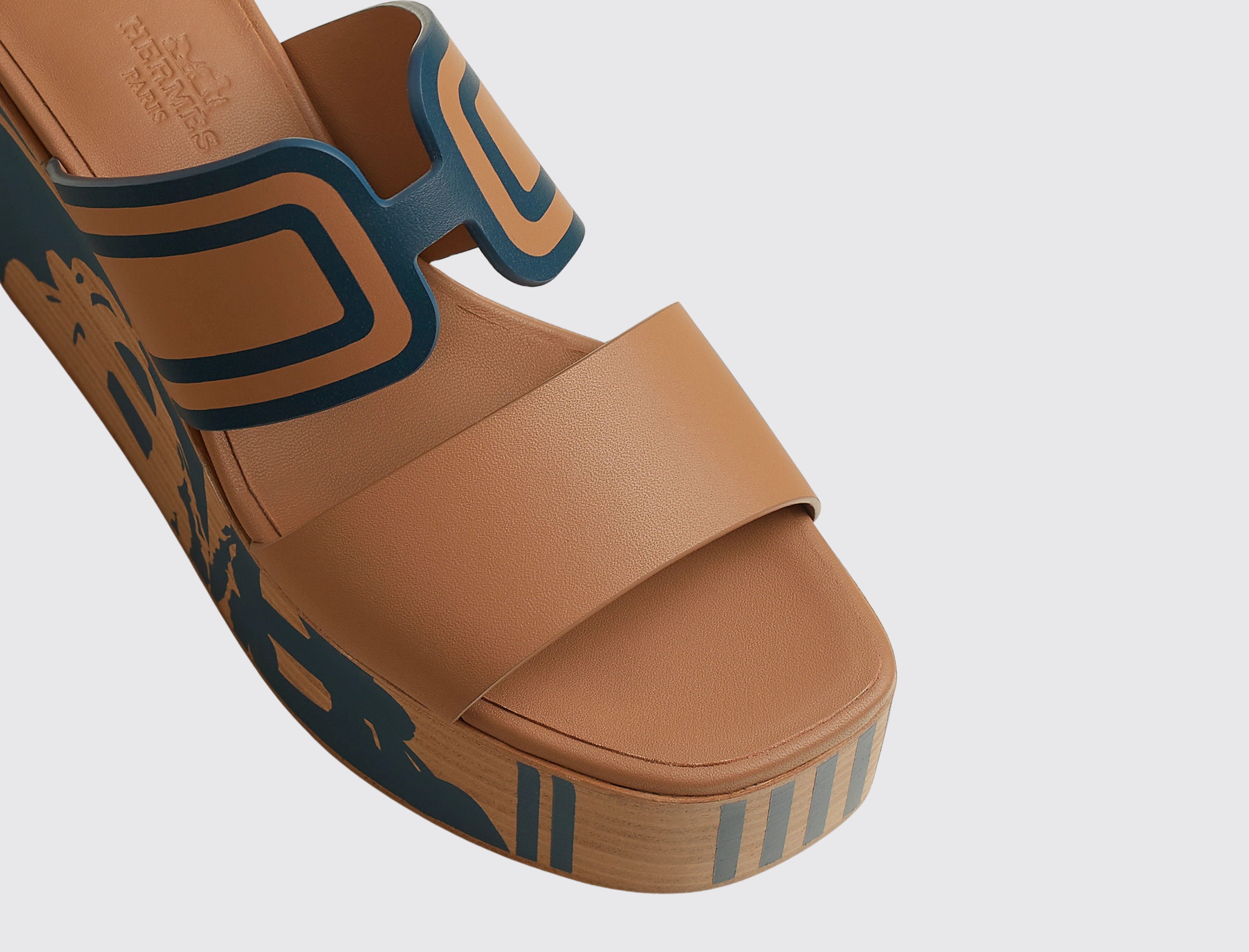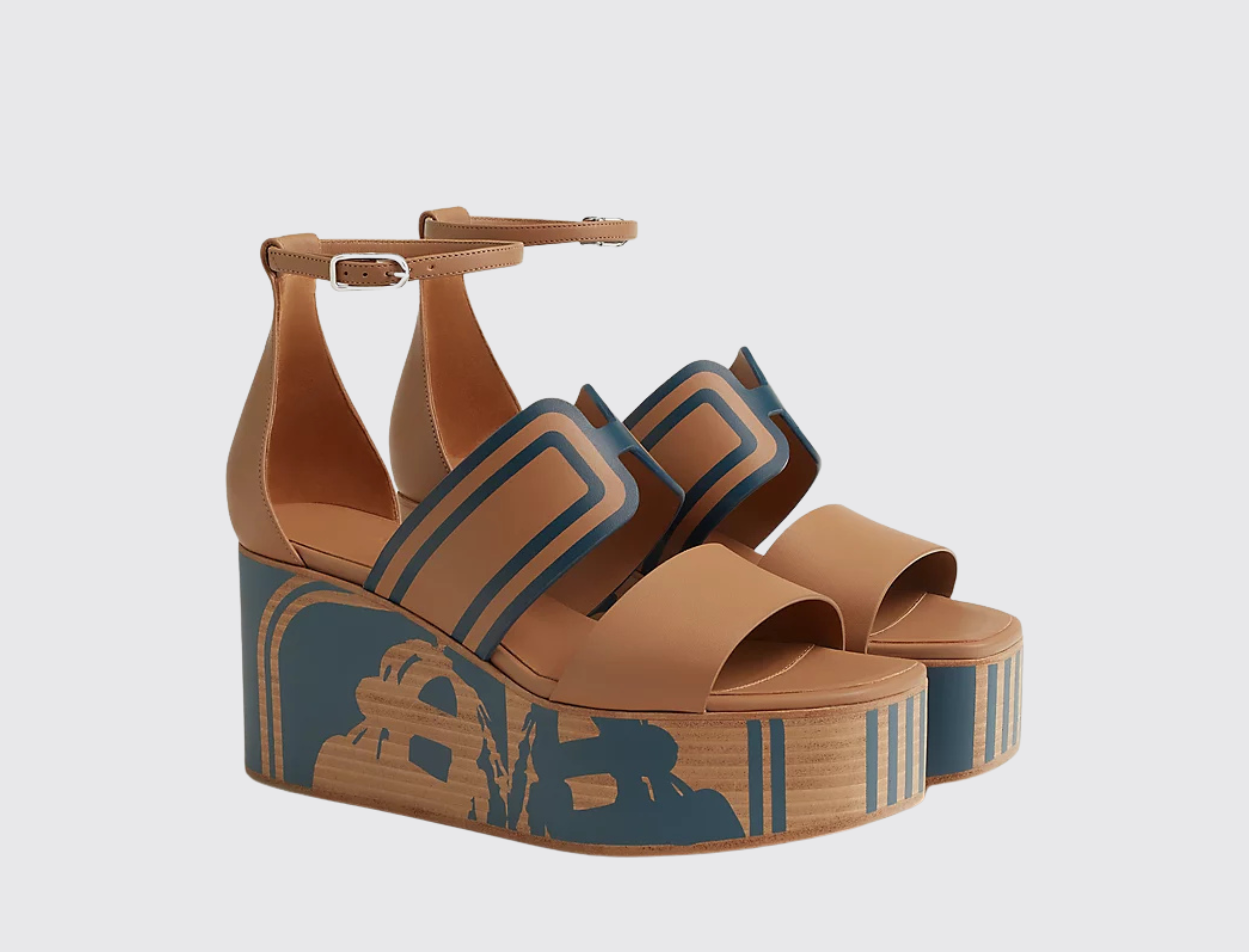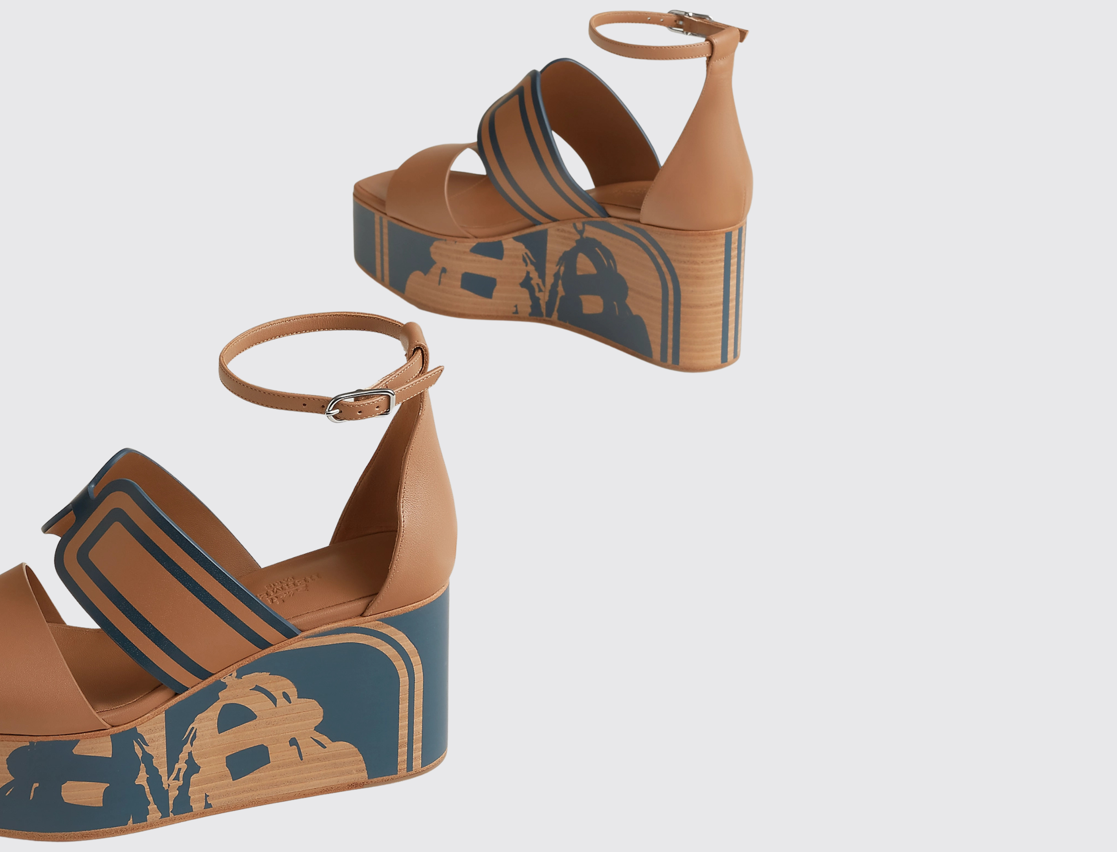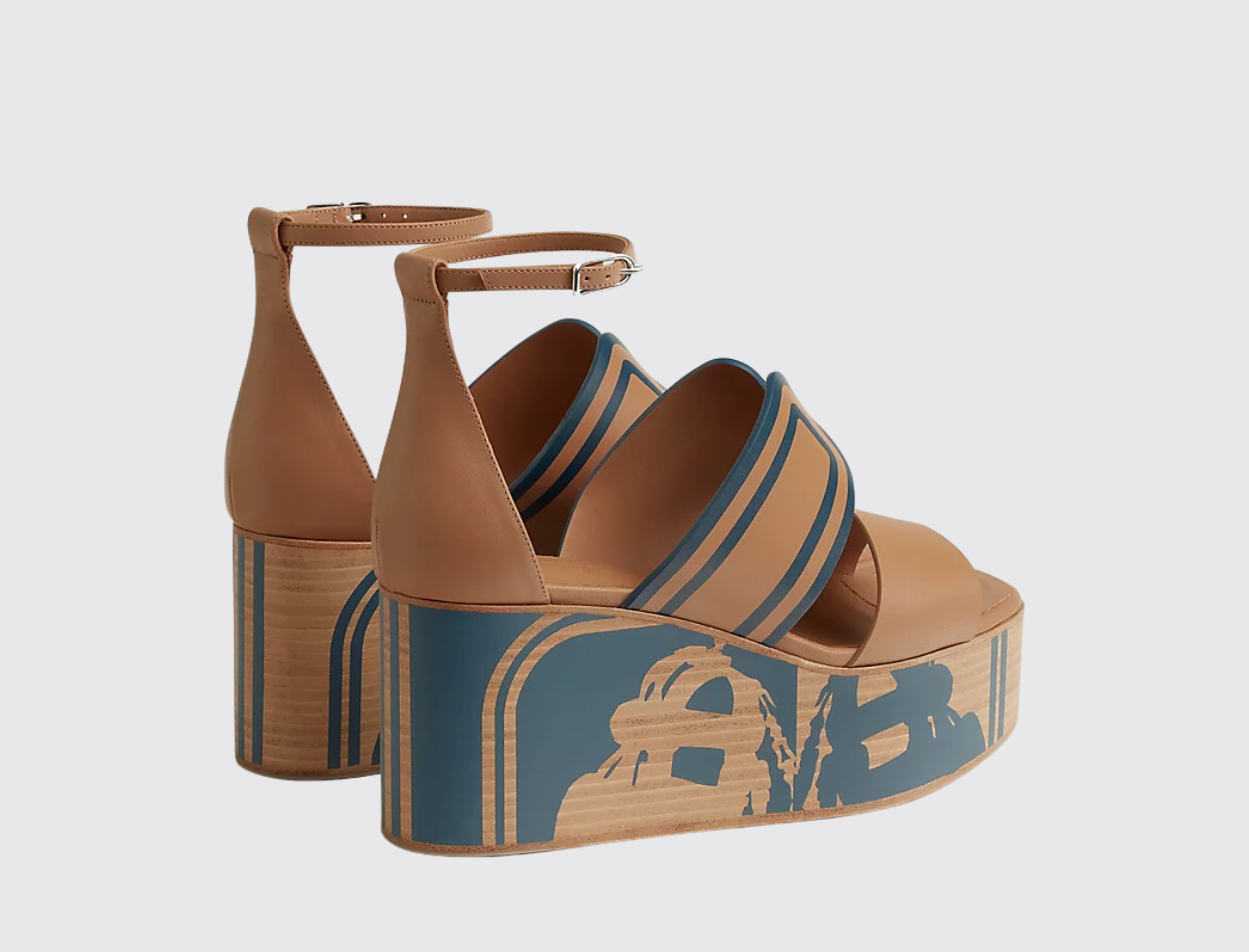 The Hermès Kalis 35 Sandal is a high-heeled design crafted from premium leather with printed details. It offers a bold and stylish look, and serves any look you desire.