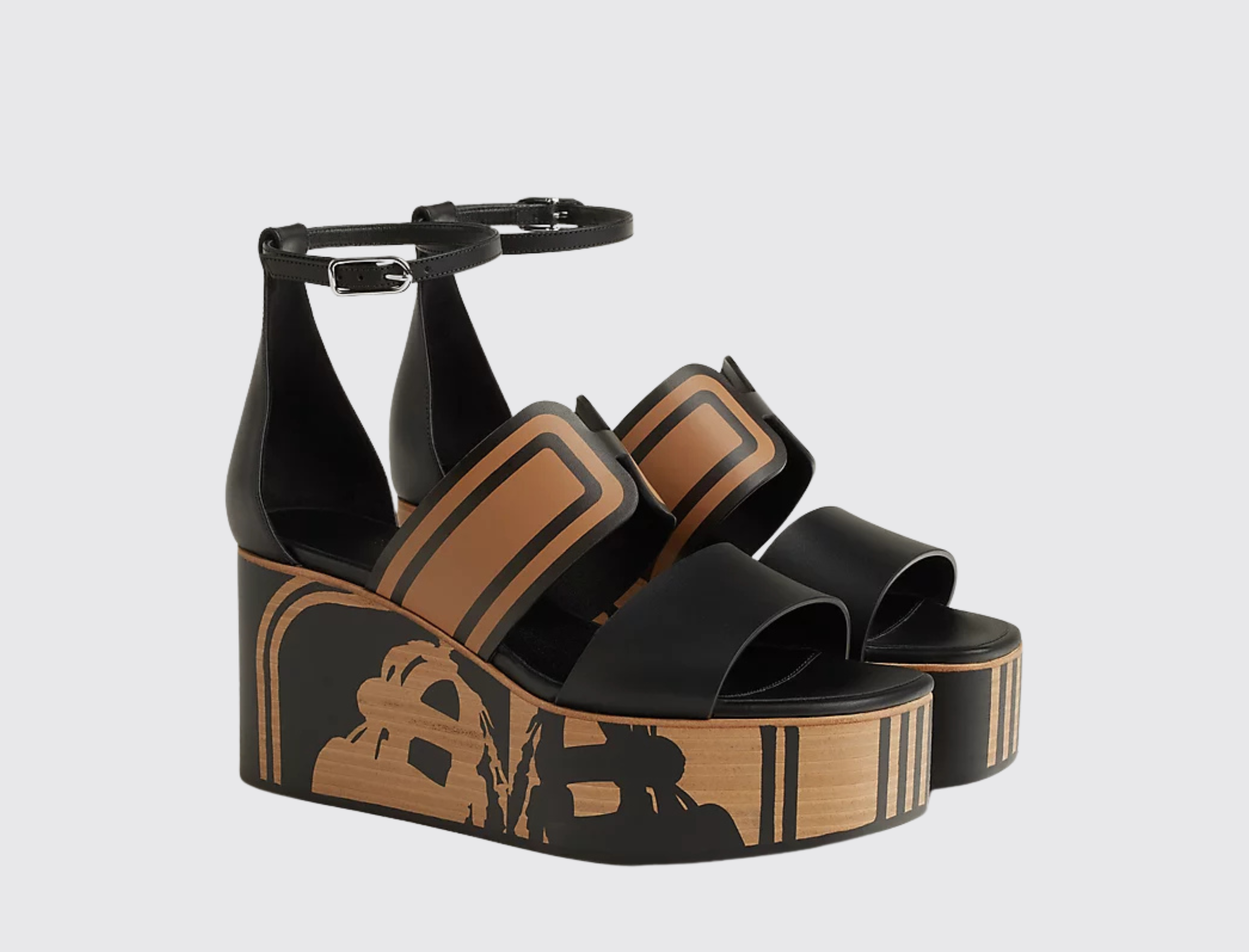 The Hermès Kalis 35 Sandal is a high-heeled design crafted from premium leather with printed details. It offers a bold and stylish look, and serves any look you desire.