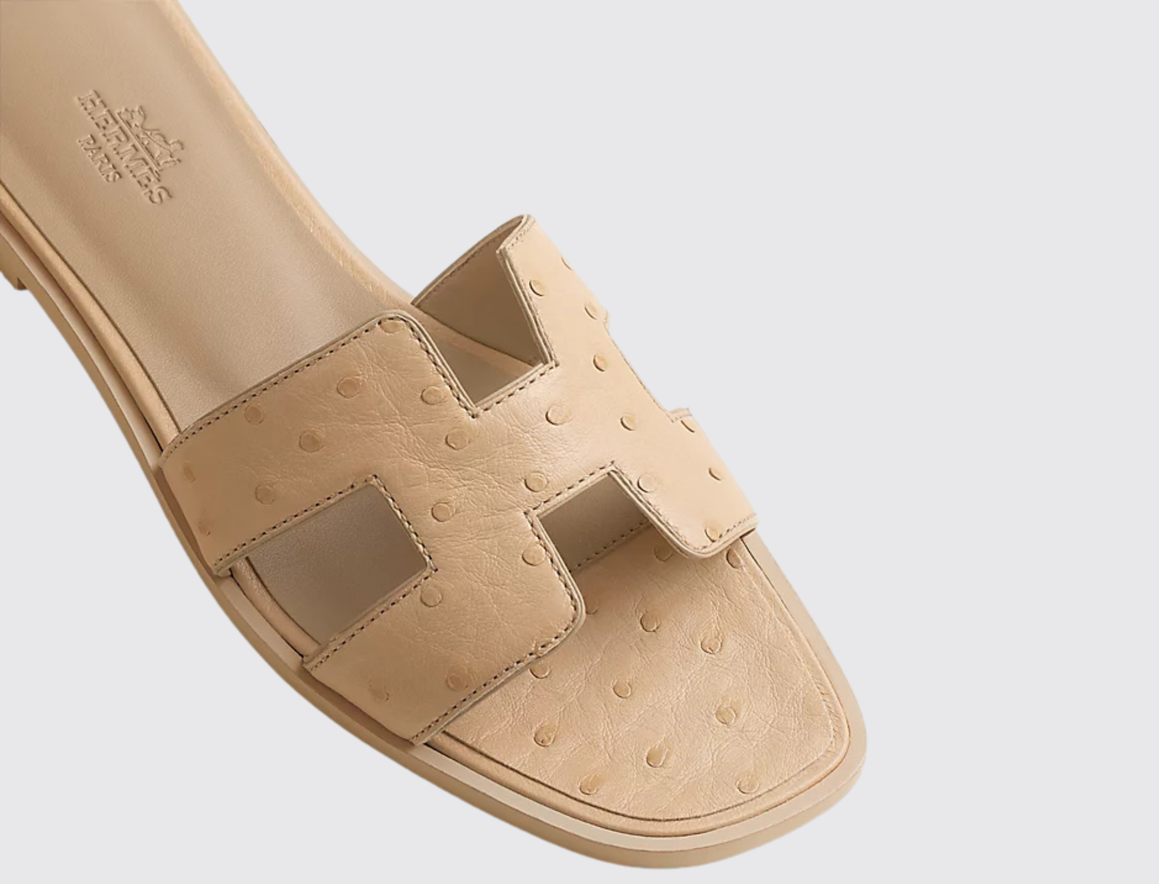 The sandal is an invitation to travel. Its journey begins on the shores of Oran, warmed by the radiant sun. Then, alive with vibrant colors and geometric lines, it makes its way between Ndebele houses. Created in 1997 by Pierre Hardy and enhanced by the iconic H cut, its style is minimalist and timeless. From one collection to the next, this summer icon is constantly reimagined in a multitude of colors and materials.