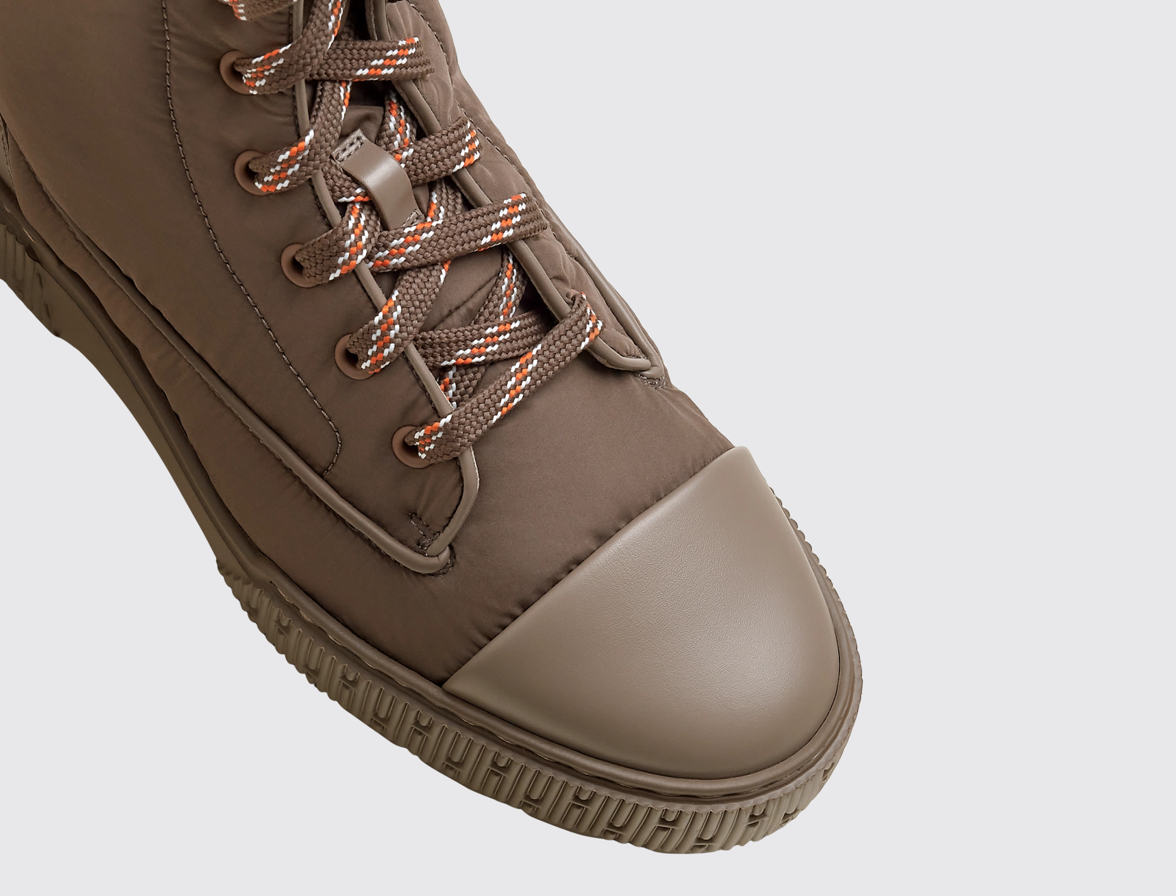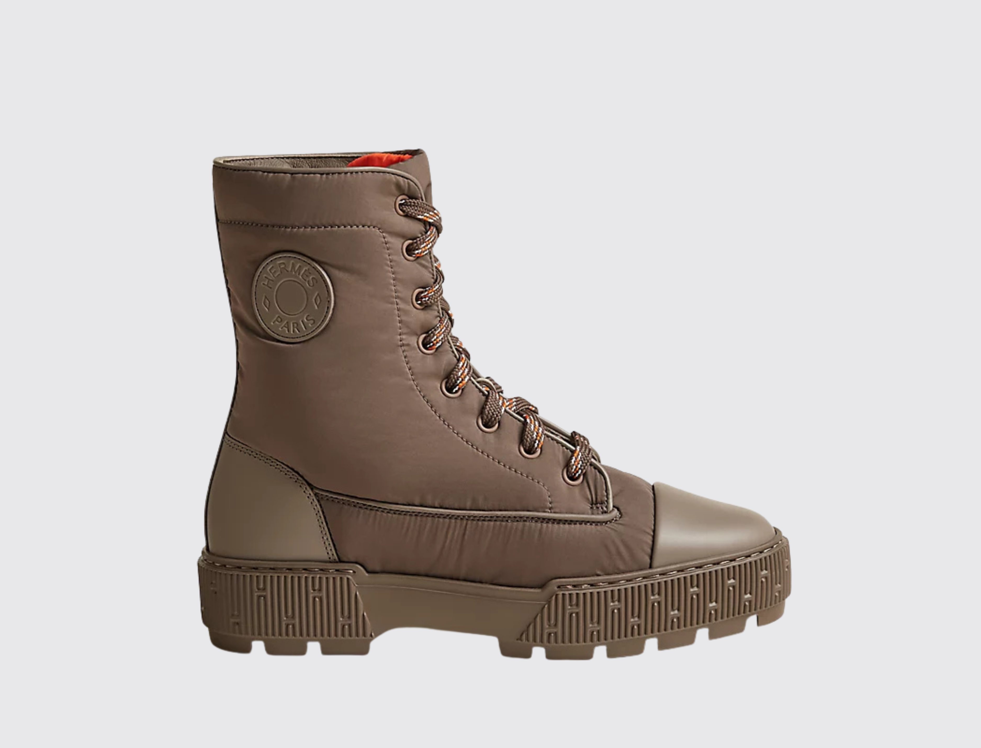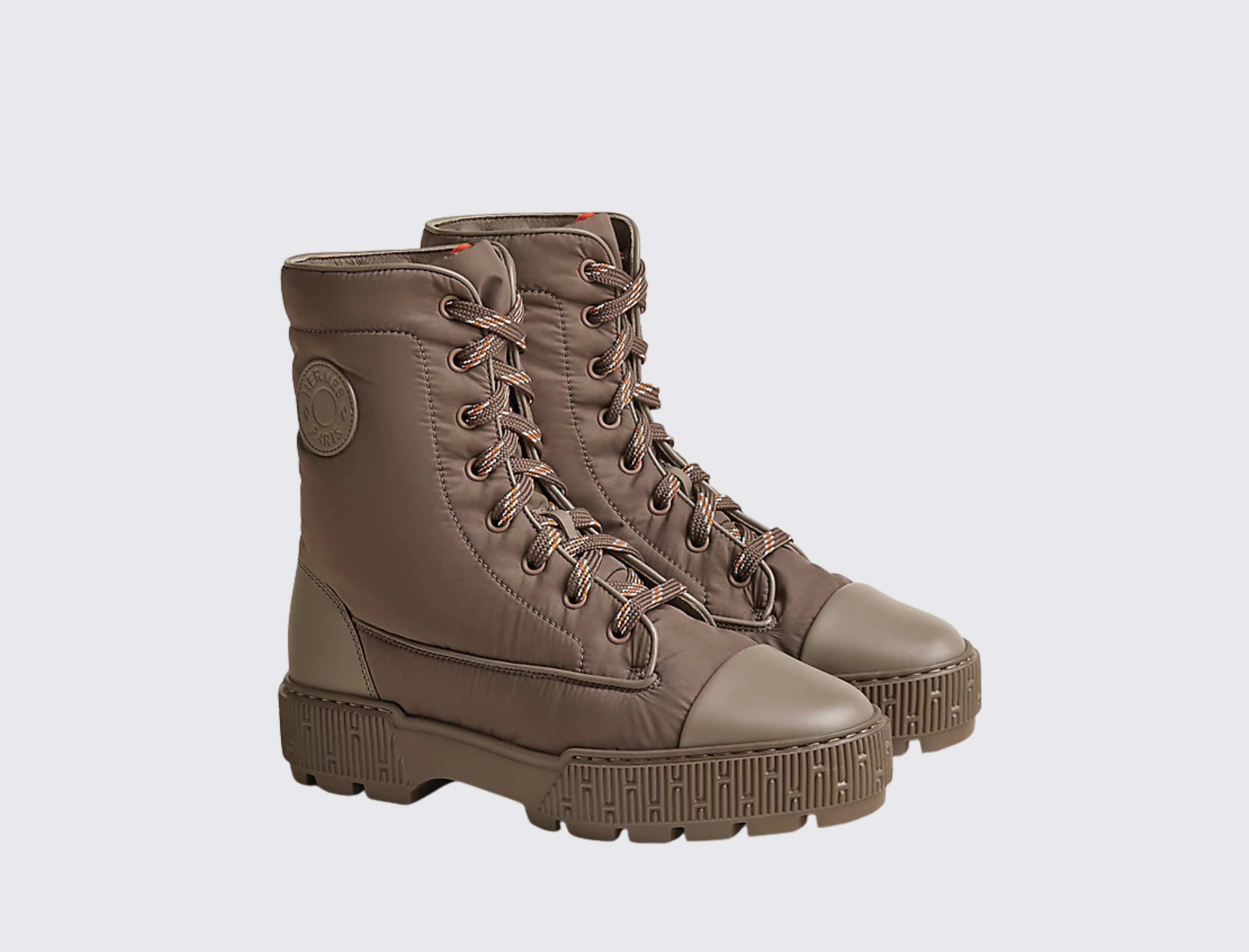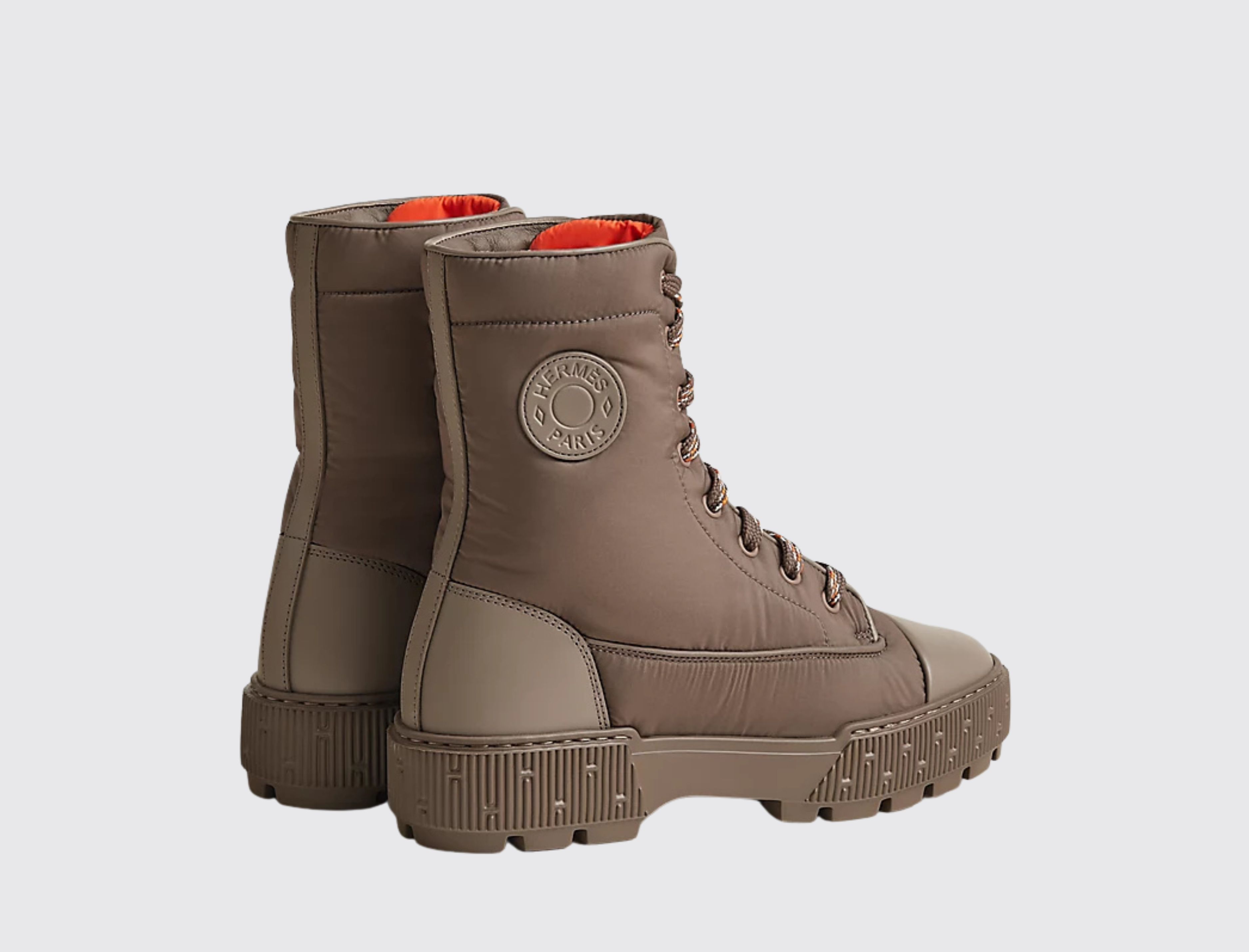 Featuring technical fabric and an ultra-light sole, the Fresh ankle boot is ready to take the leap. Comfortable in any situation, urban or green, its simple and sporty lines open it to all possibilities. A signature of the Hermès spirit, its Clou de Selle badge offers elegance on all terrain.