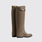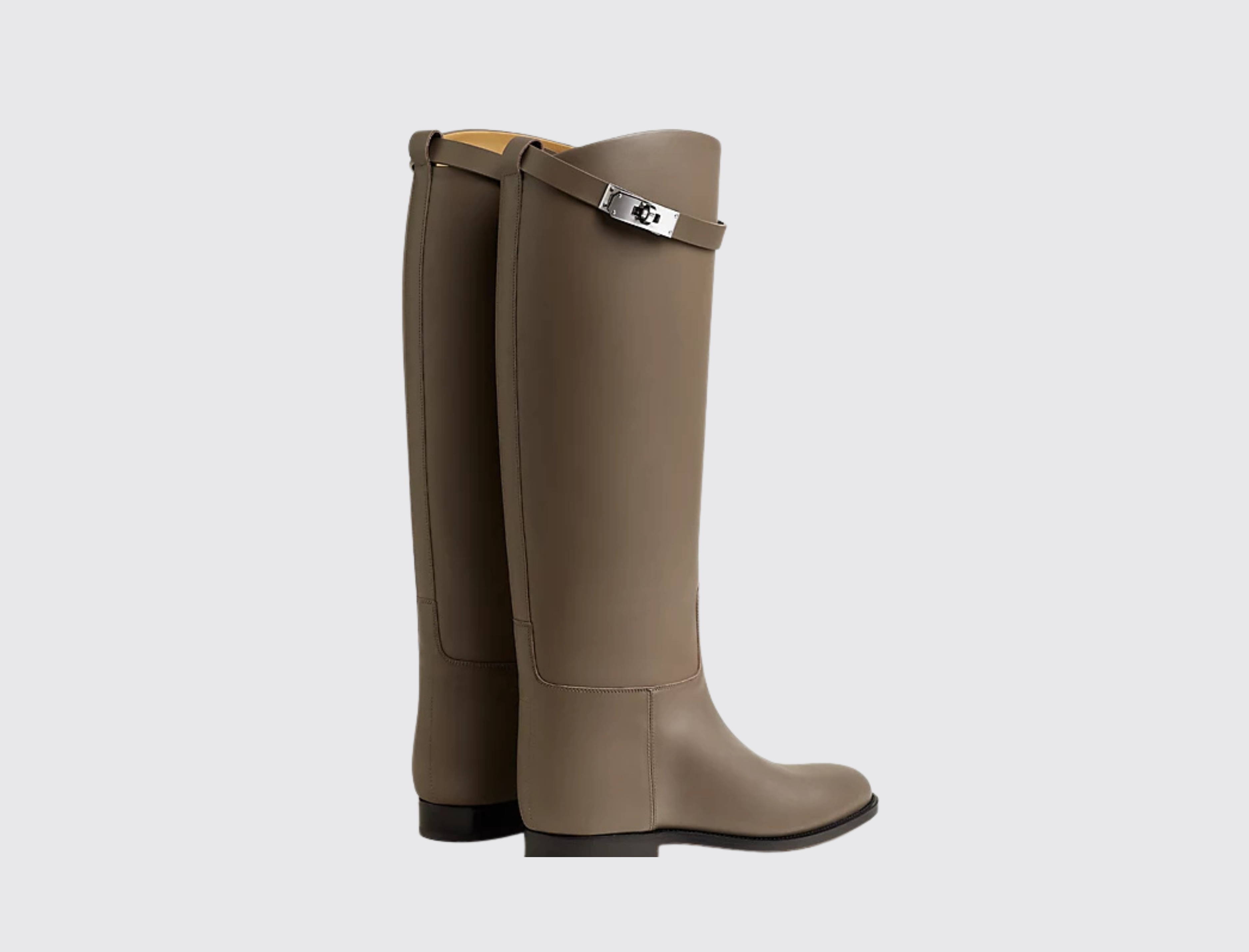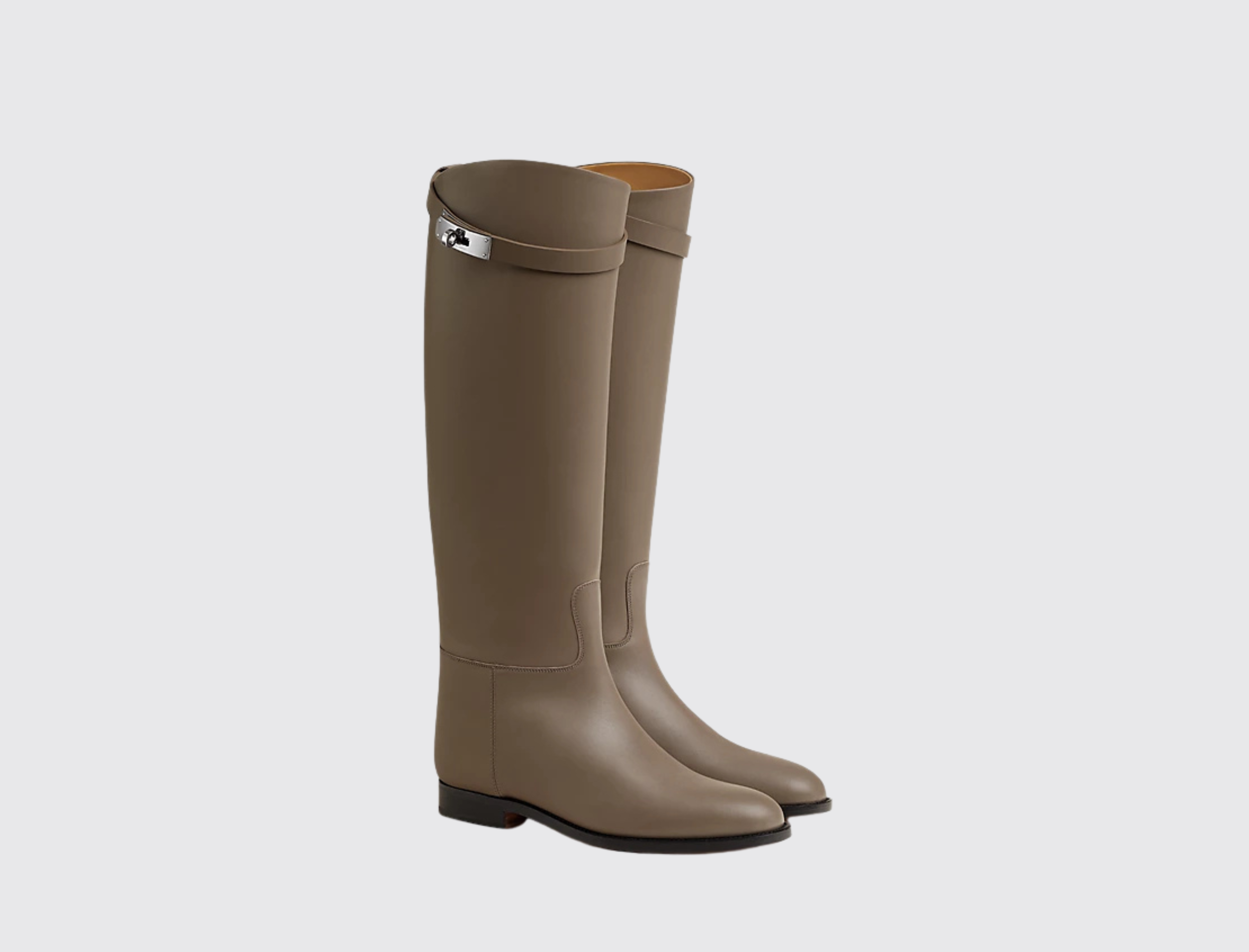 The Jumping boot draws inspiration from the Maison's equestrian roots. From its signature Kelly buckle to its essential lines underpinned by expert craftsmanship, it single-handedly embodies all the distinctive codes of Hermès. It's a contemporary riding boot that evolves with the seasons, adopting new palettes of color, shape, and material.