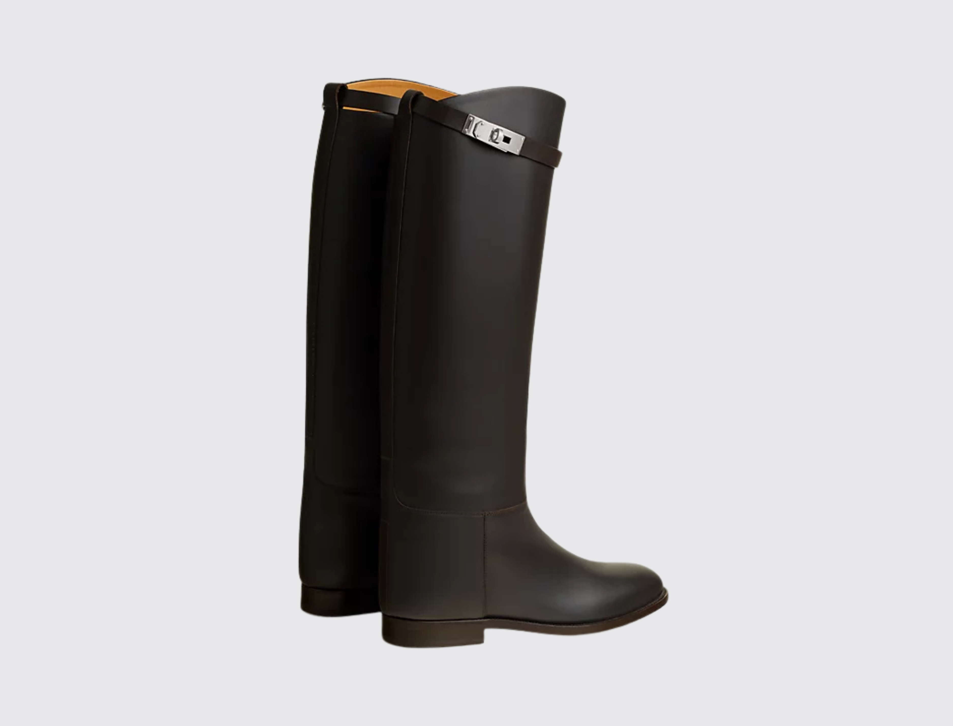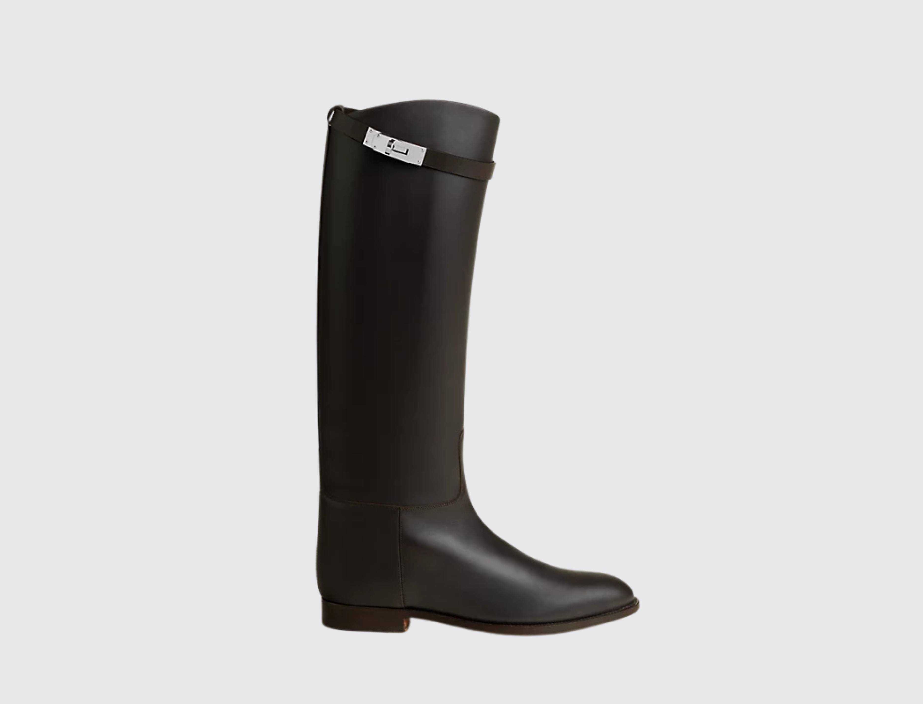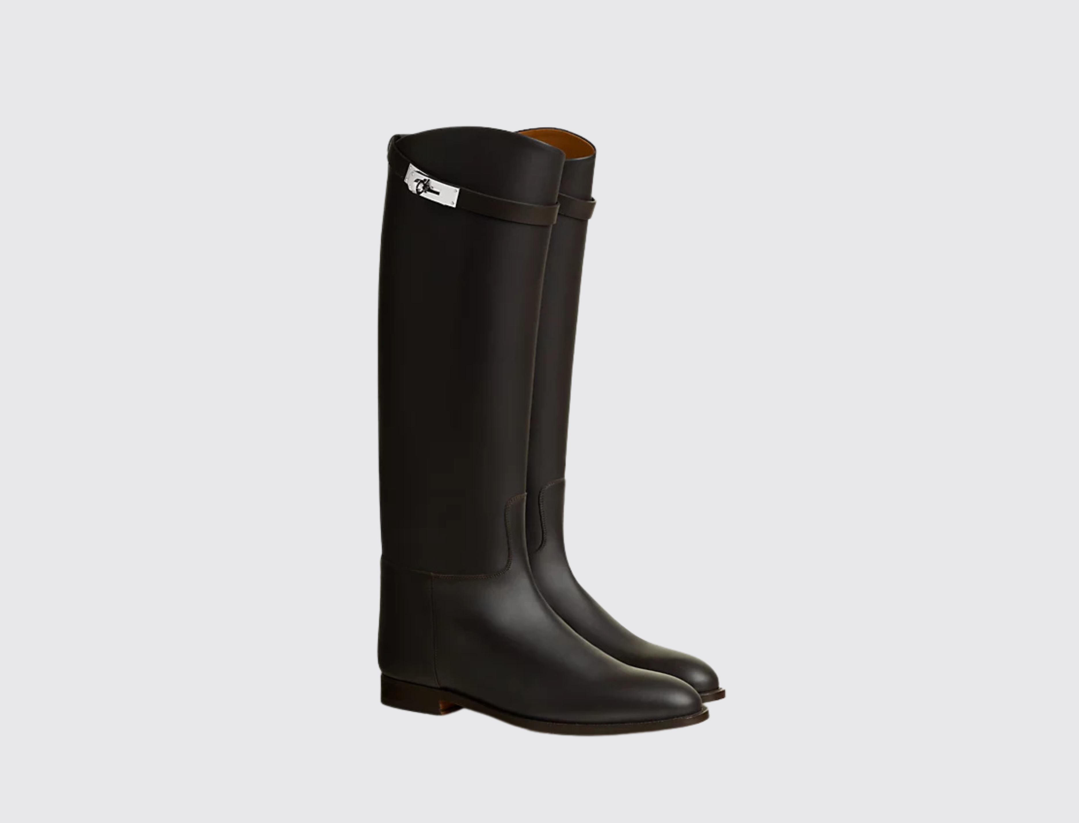 The Jumping boot draws inspiration from the Maison's equestrian roots. From its signature Kelly buckle to its essential lines underpinned by expert craftsmanship, it single-handedly embodies all the distinctive codes of Hermès. It's a contemporary riding boot that evolves with the seasons, adopting new palettes of color, shape, and material.
