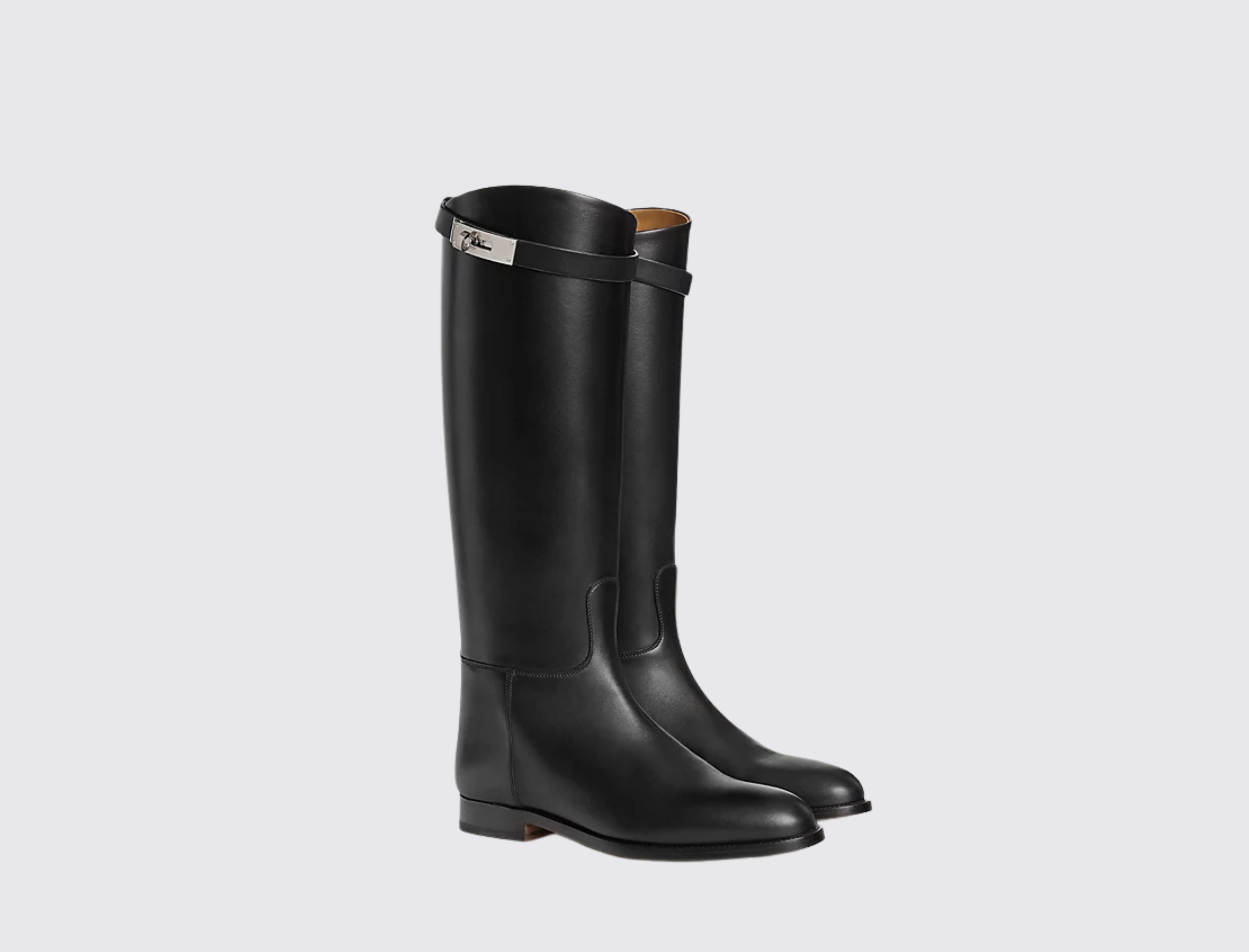 The Jumping boot draws inspiration from the Maison's equestrian roots. From its signature Kelly buckle to its essential lines underpinned by expert craftsmanship, it single-handedly embodies all the distinctive codes of Hermès. It's a contemporary riding boot that evolves with the seasons, adopting new palettes of color, shape, and material.