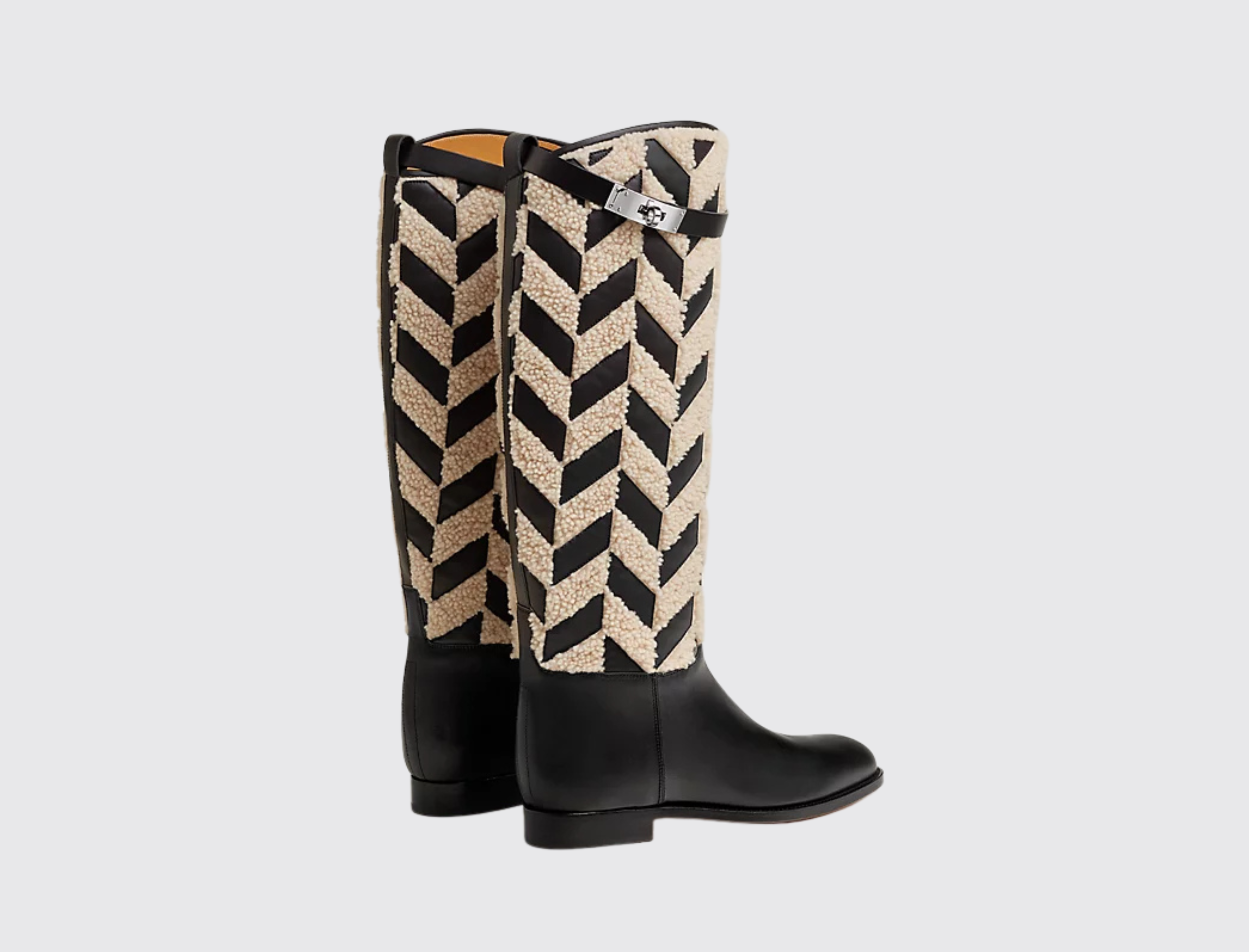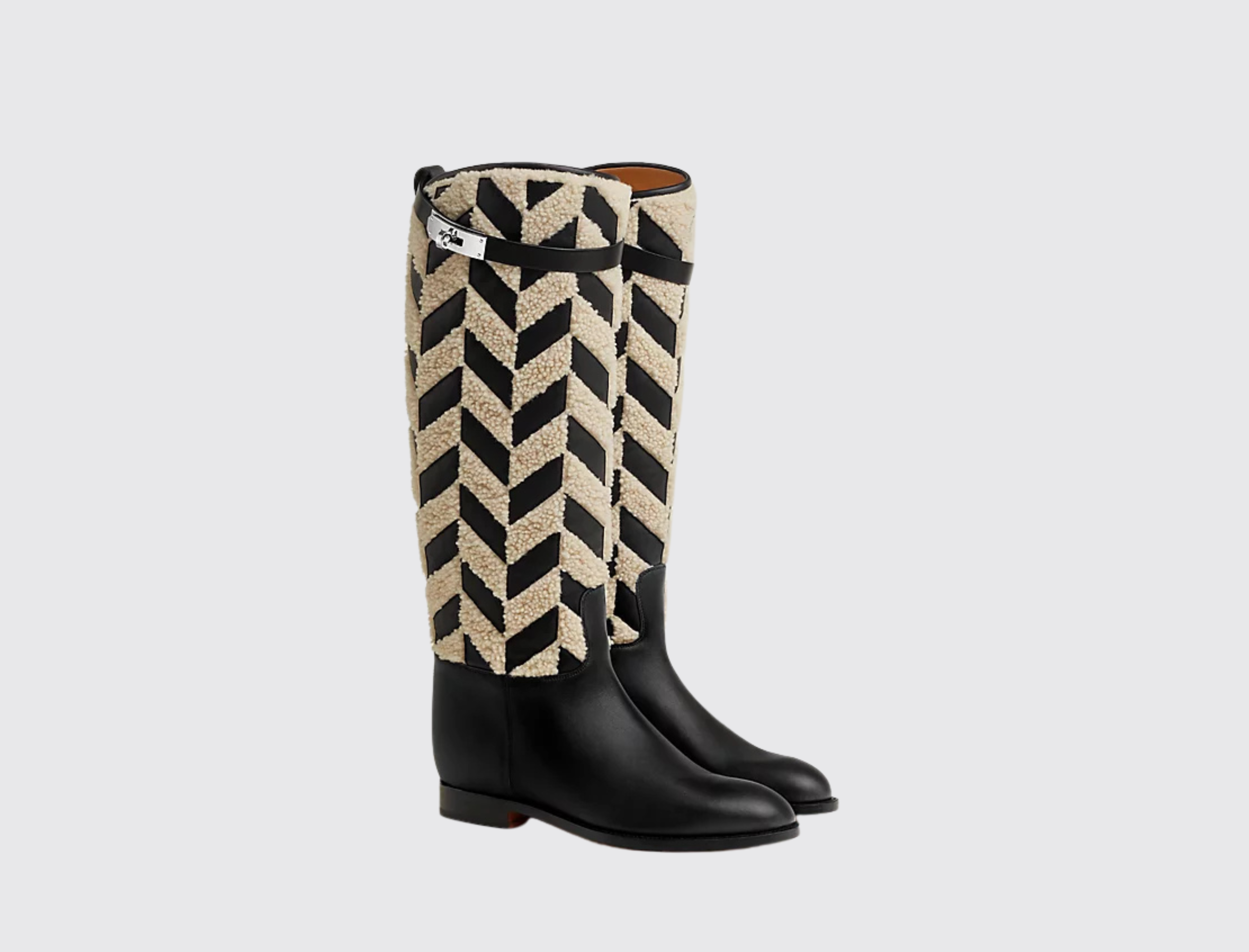 The Jumping boot draws inspiration from the Maison's equestrian roots. From its signature Kelly buckle to its essential lines underpinned by expert craftsmanship, it single-handedly embodies all the distinctive codes of Hermès. It's a contemporary riding boot that evolves with the seasons, adopting new palettes of color, shape, and material.