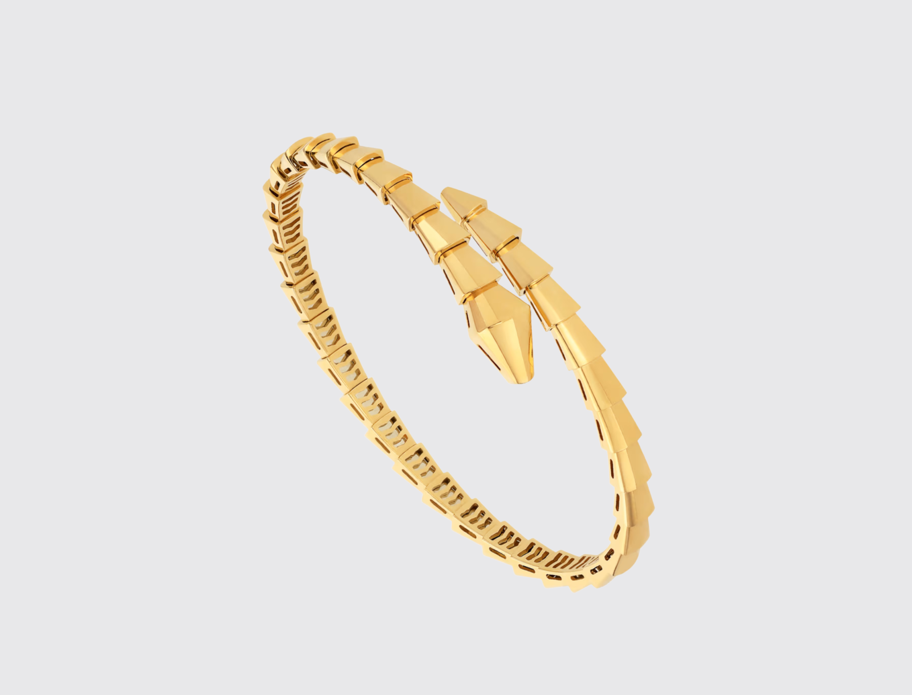 With its signature blend of pure aesthetics, enveloping shapes and charismatic flair, the Serpenti Viper 18 kt yellow gold bracelet is an essential interpretation of Bvlgari’s icon of endless metamorphosis.