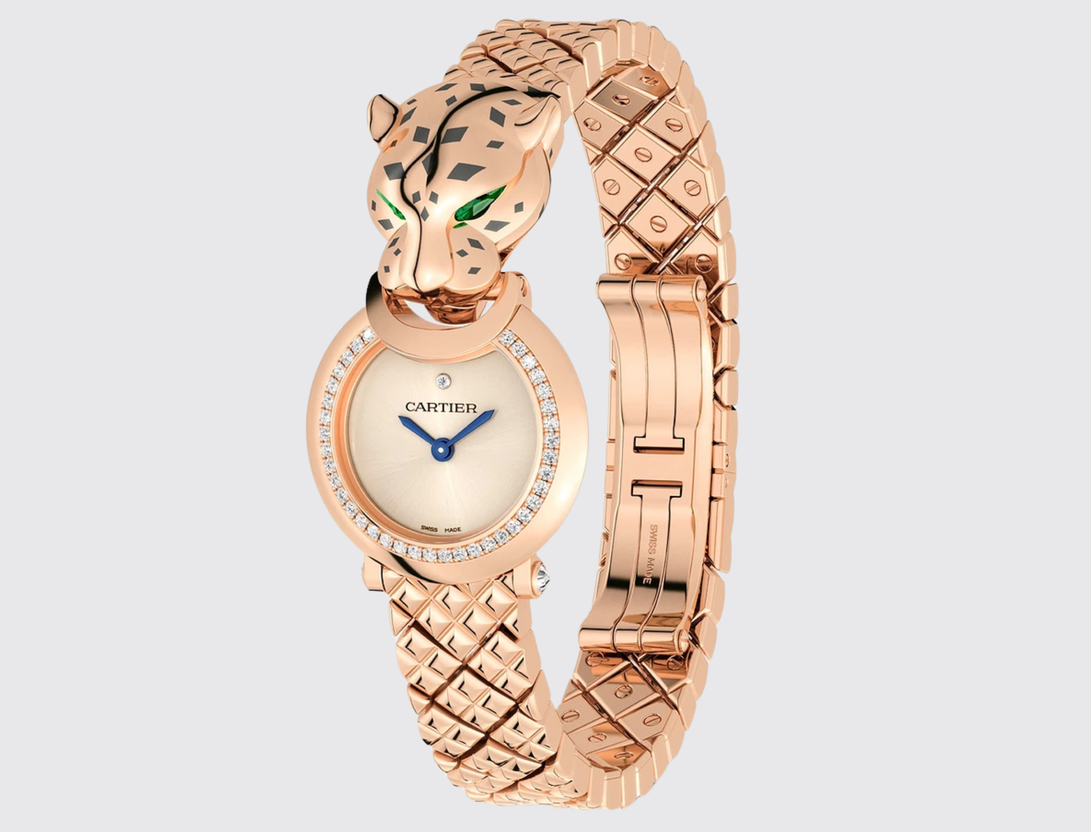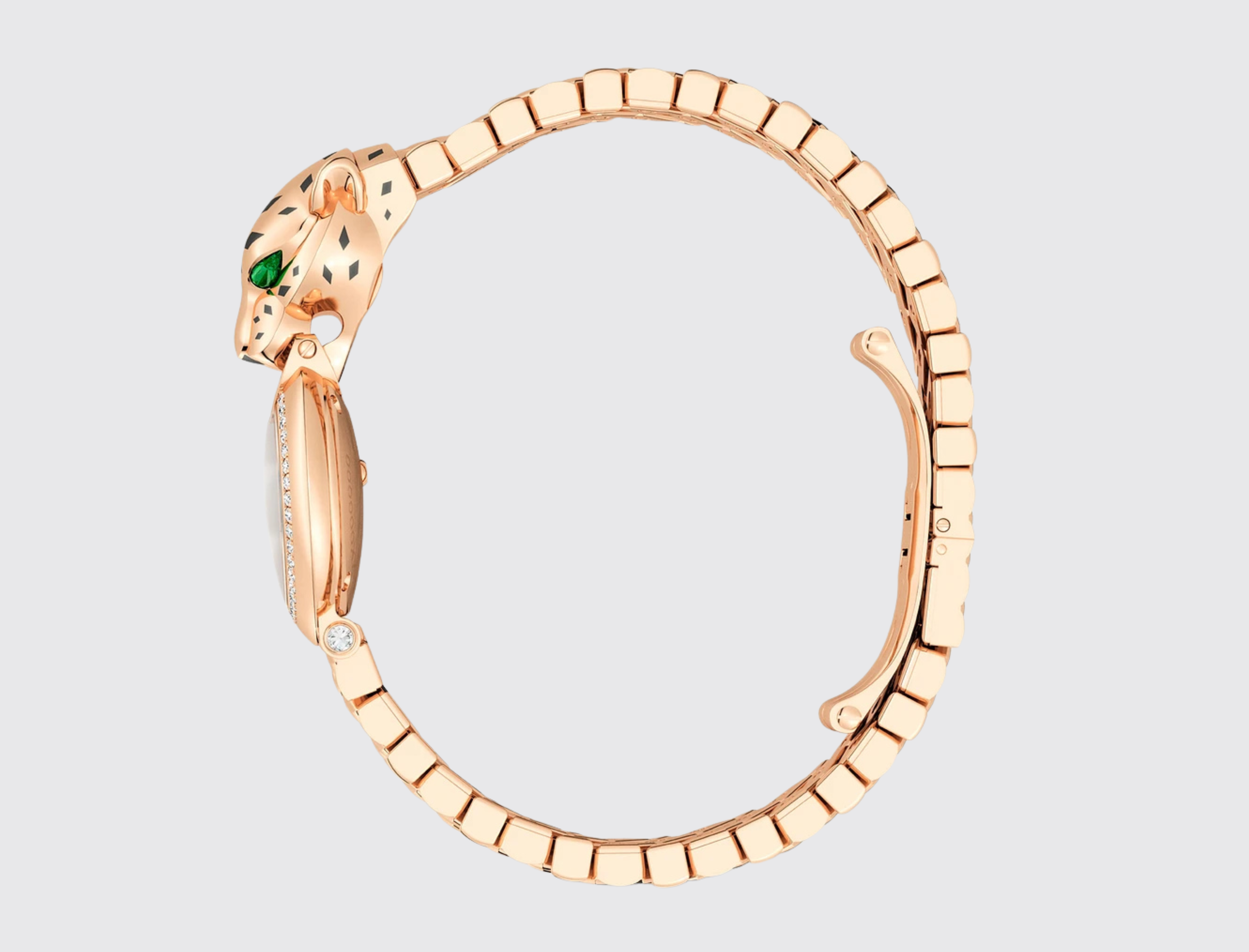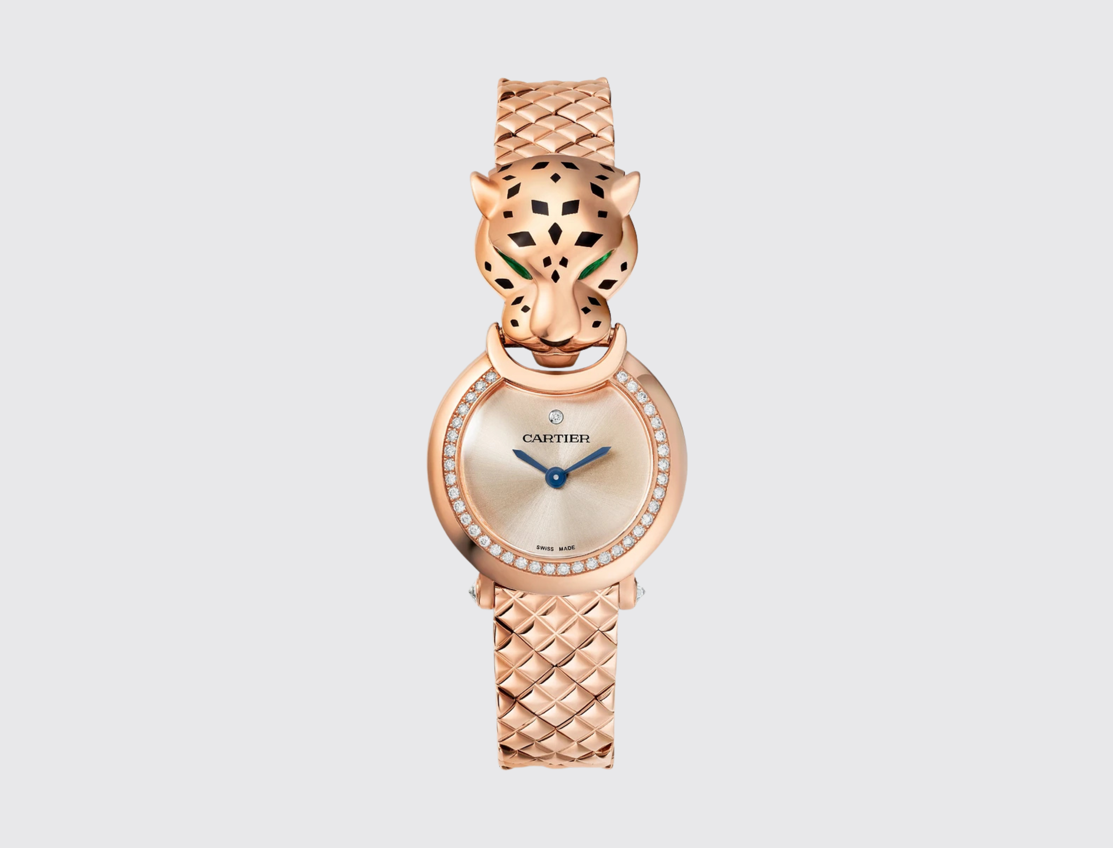 Indulge in the art that is this masterpiece! The La Panthère de Cartier HPI01381 is a state-of-the-art, timeless piece that transforms the ordinary into extravagance. The panther emblem symbolizes the brand's commitment to manufacturing the finest items that exclusively showcase the essence of craftsmanship.
