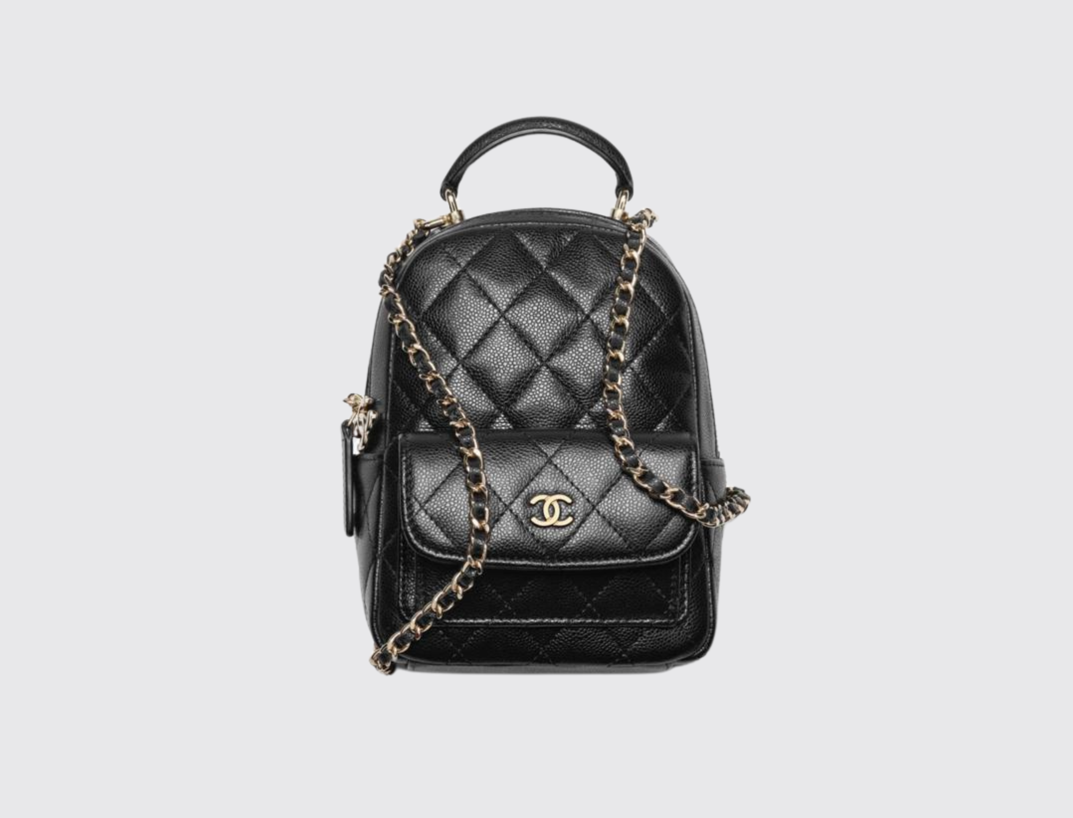 The Chanel mini backpack is a chic accessory, blending practicality with luxury. This statement bag features a spacious design with a signature shiny leather finish, the classic Chanel chain strap, and the iconic brand logo.