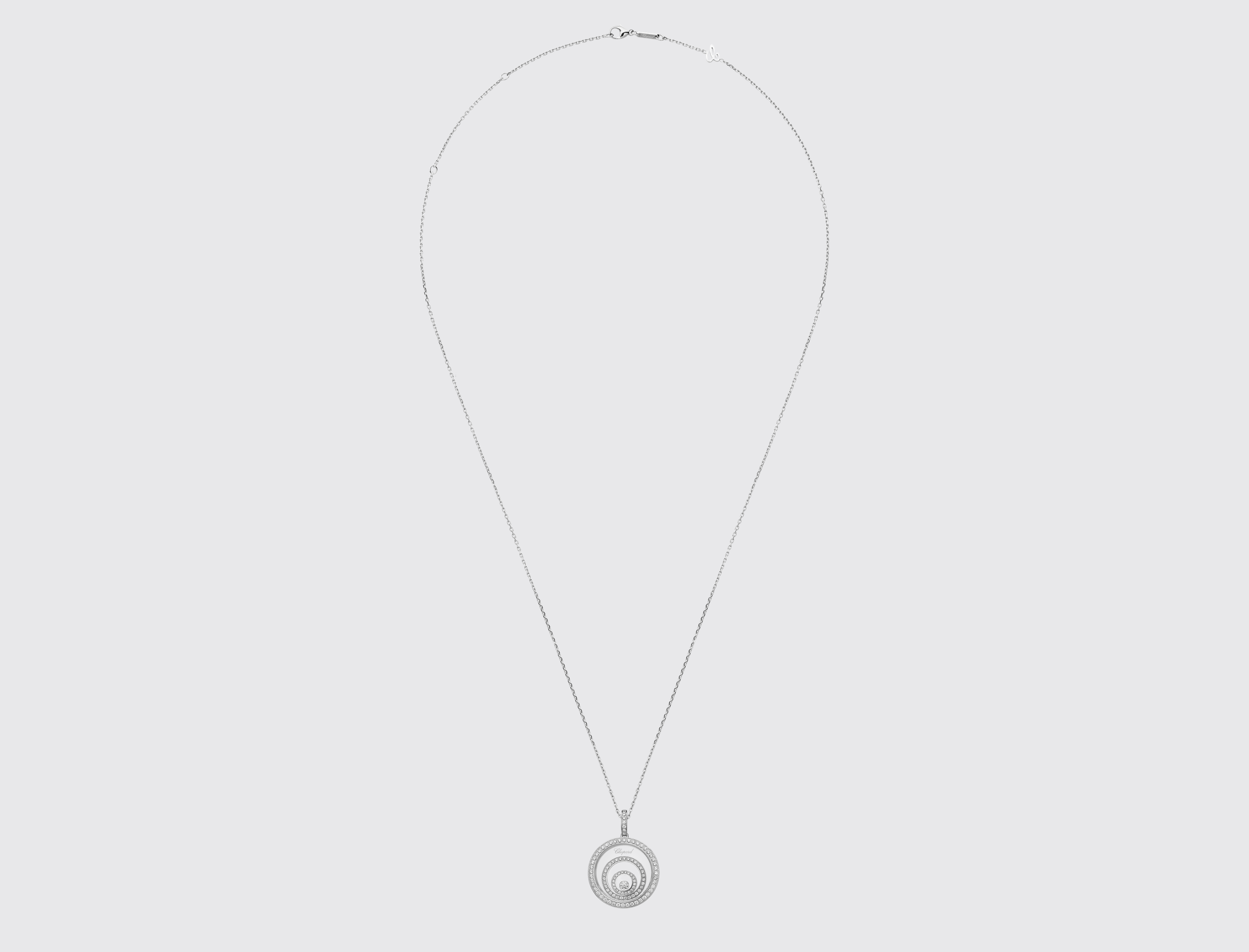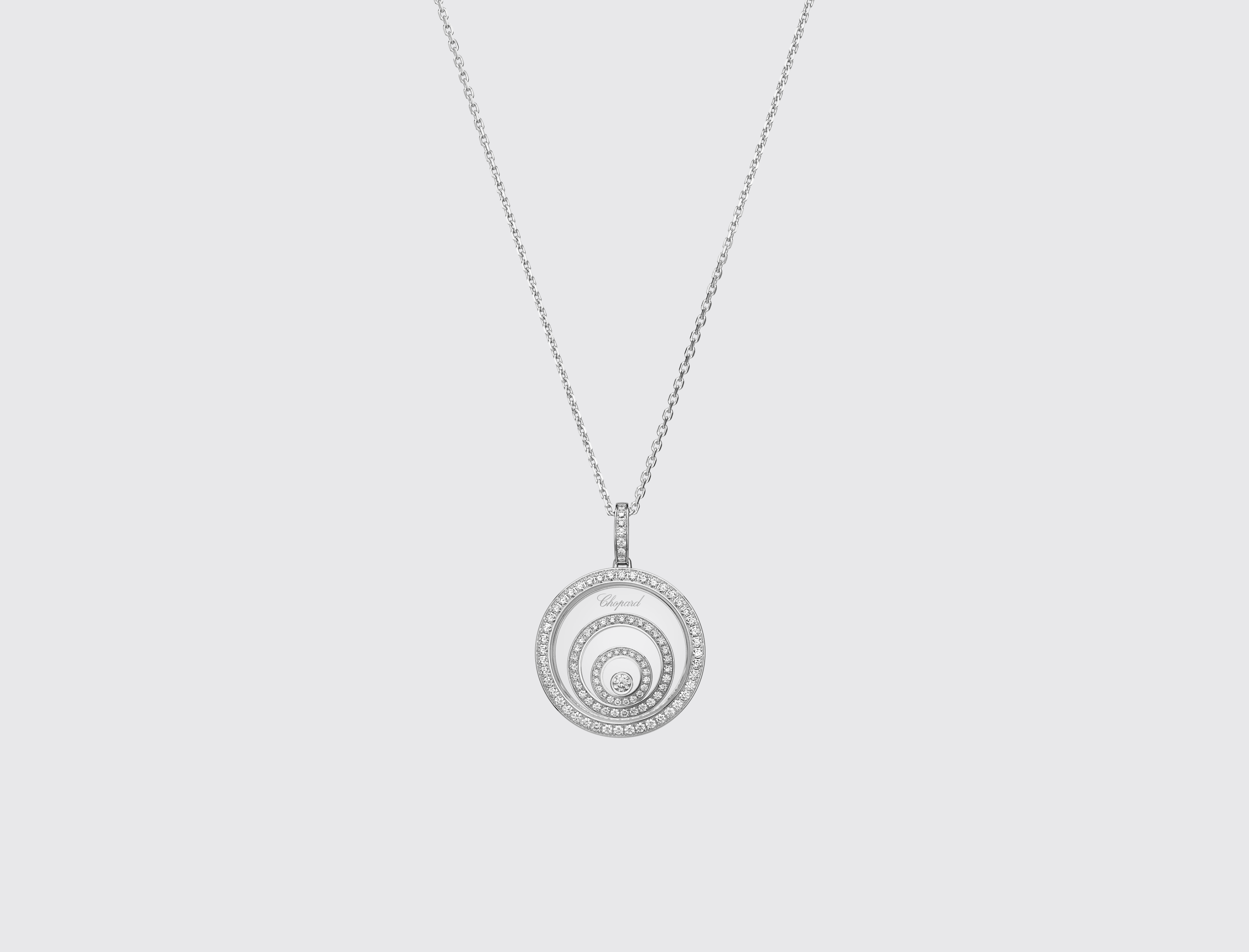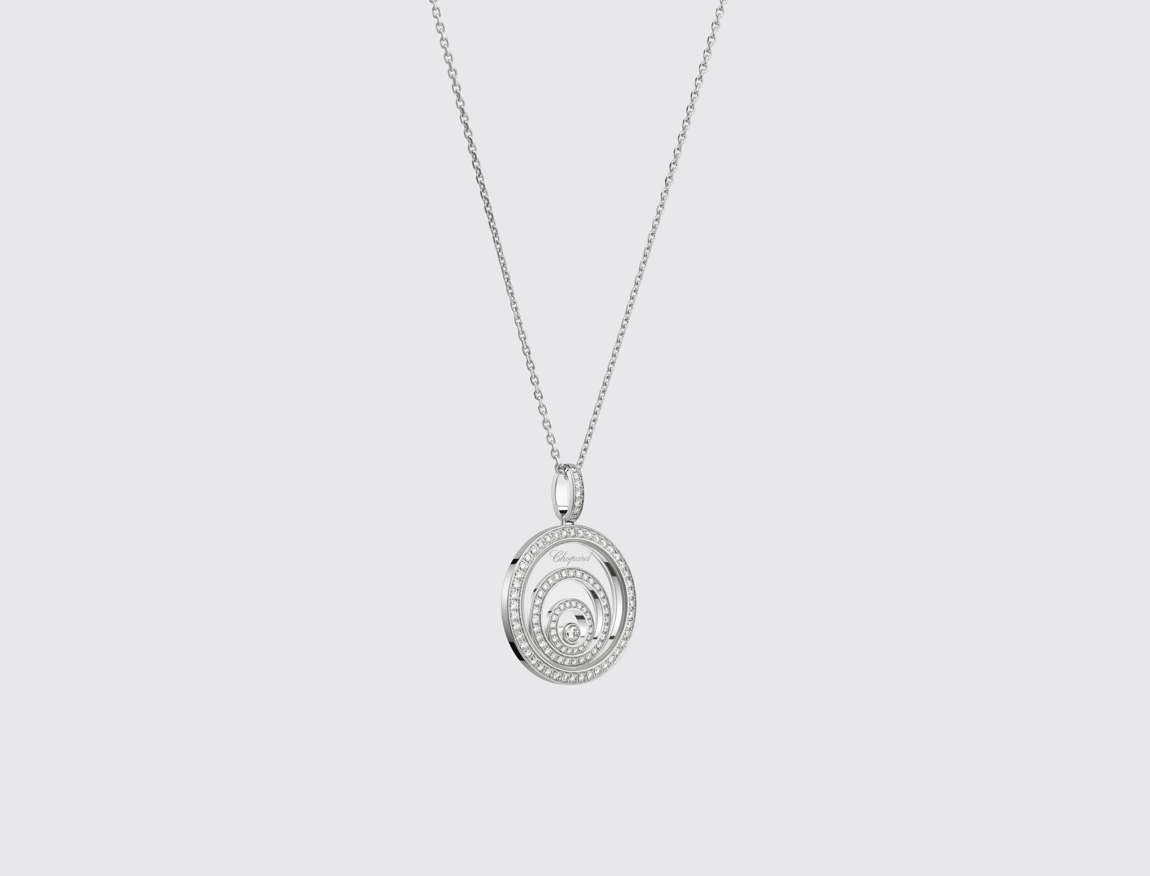 Celebrate timeless elegance with the Happy Spirit Necklace by Chopard. Featuring the signature dancing diamonds, this piece captures movement and light, creating a captivating charm that symbolizes joy and freedom. Perfect for the woman who treasures both beauty and spirit.