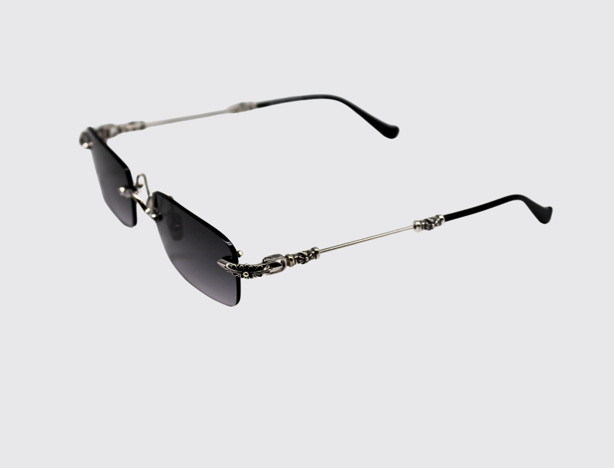 The Pills III sunglasses are within the luxury eyewear collection by Chrome Hearts. With intricate detailing at the temples, the overall design is exceptional.