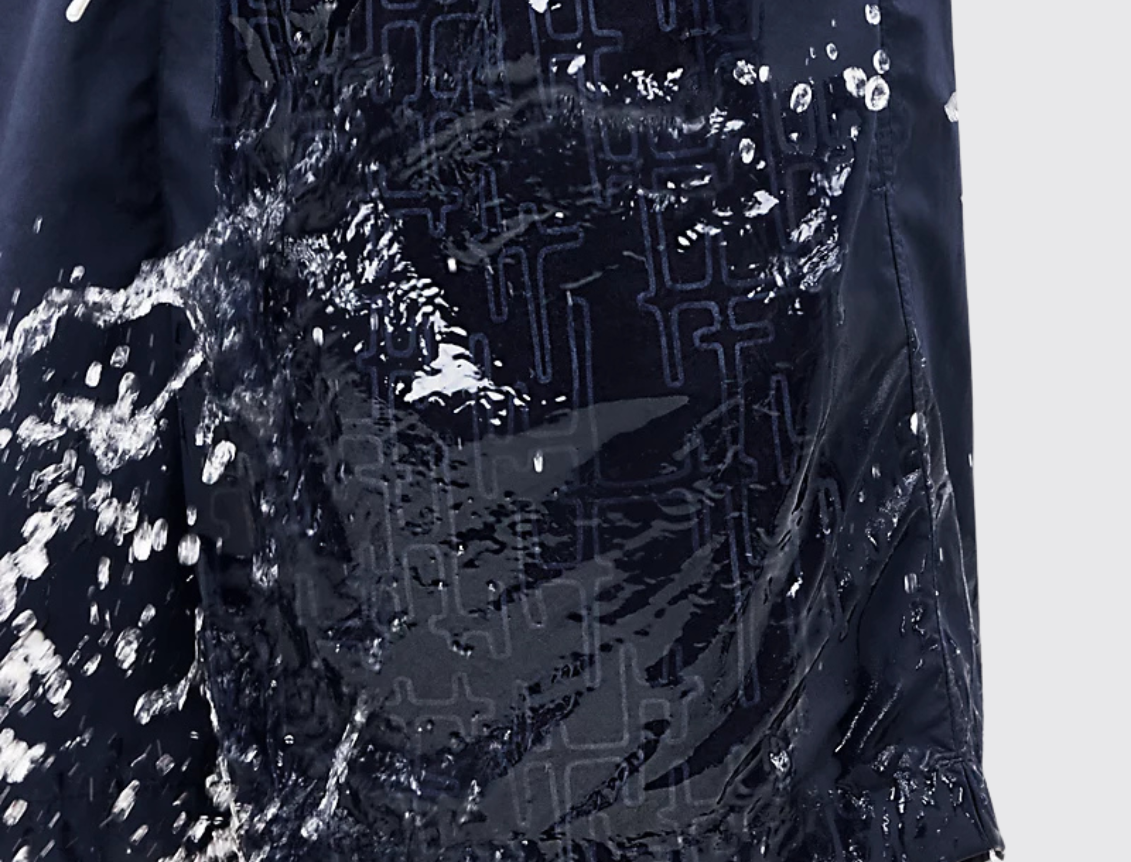 These swimming trunks will complement every moment spent by the water with elegance and mischief. Surprise! This swimsuit cleverly conceals its true identity: although it's plain when dry, it soon reveals an "H" pattern when it becomes wet, thanks to a mysterious technical ink.
