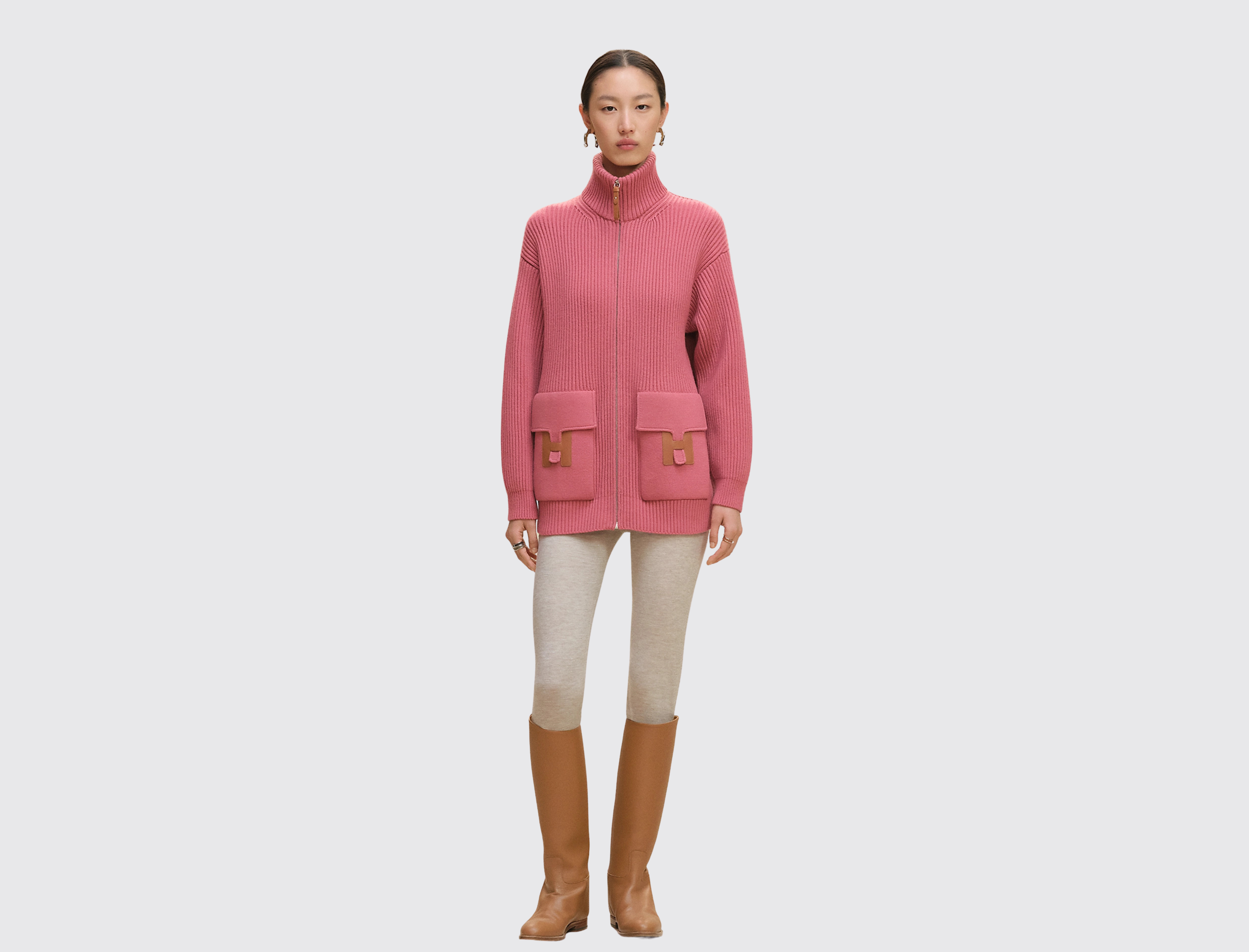 • Side flap pockets with leather "H" details