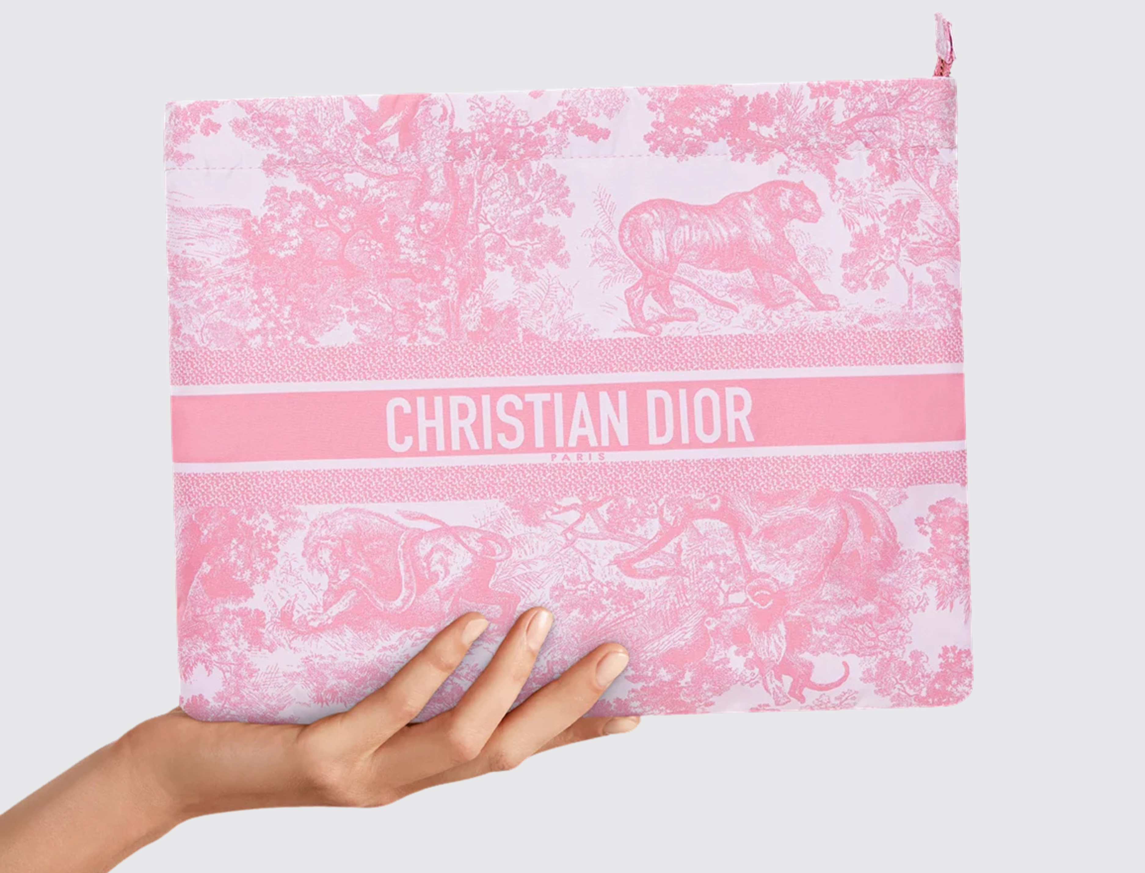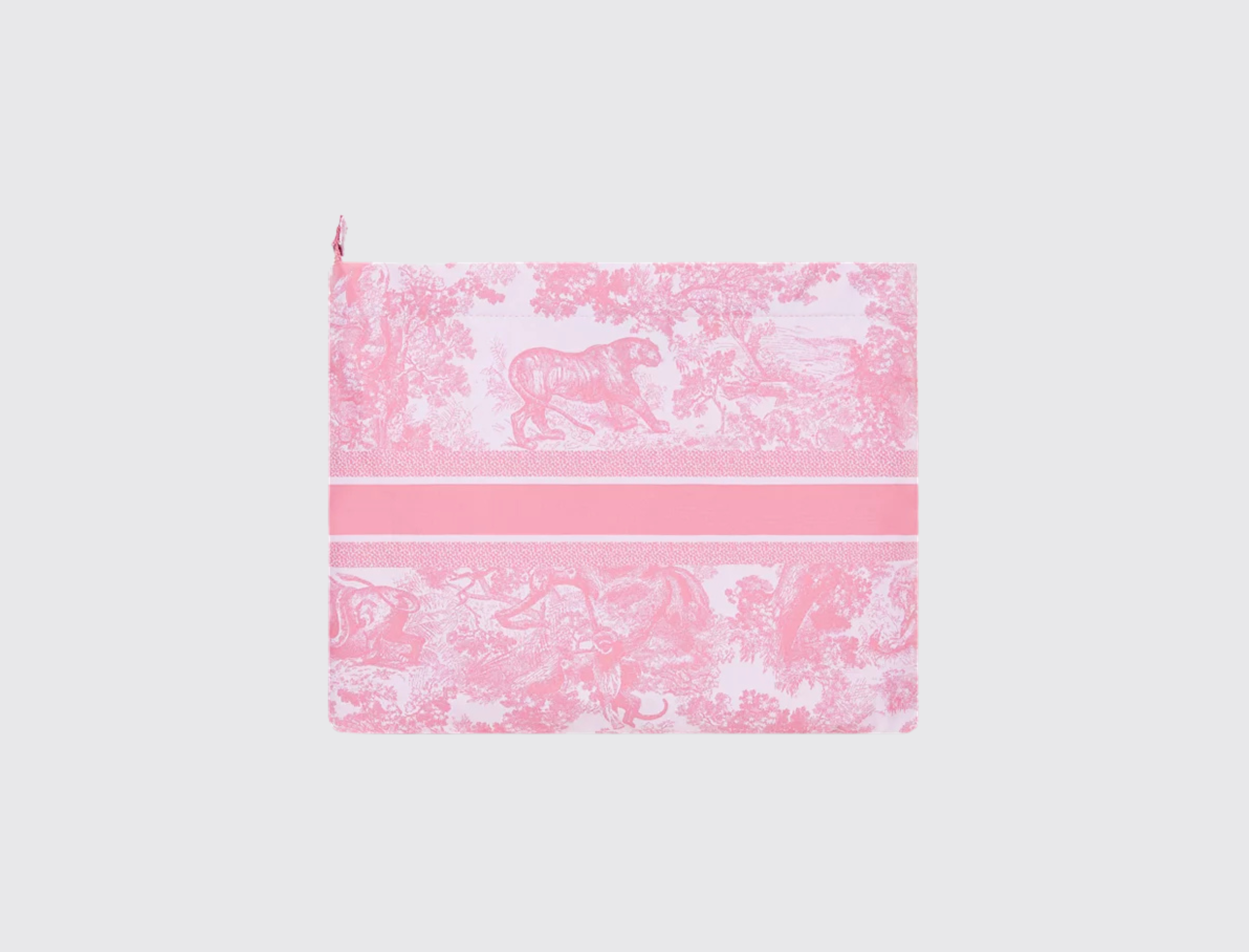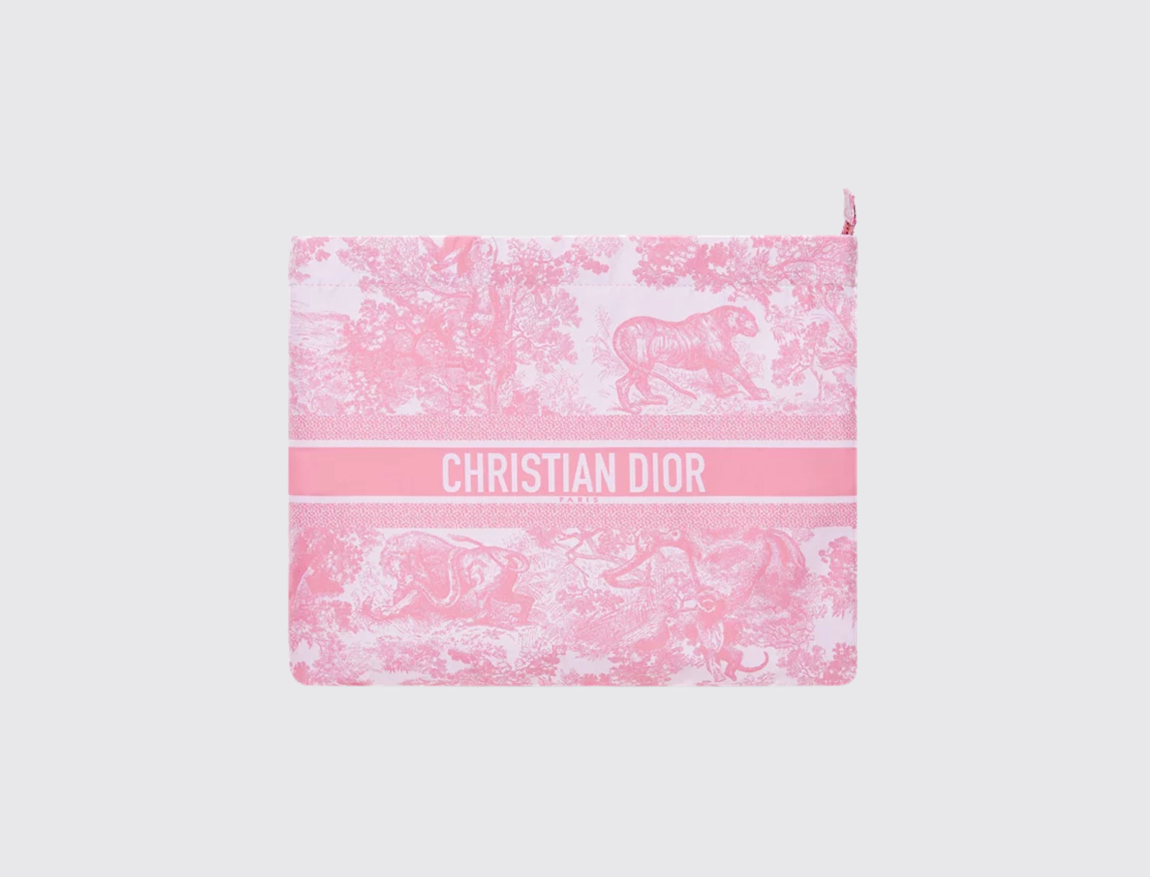 The Dioriviera Zipped Pouch from the Dioriviera capsule collection blends practicality with sophisticated style. Constructed from technical fabric, it features the Toile de Jouy Sauvage motif, a contemporary reinterpretation of Dior’s signature pattern. Its roomy interior, complemented by the Christian Dior Paris signature, accommodates all your essentials effortlessly, whether carried alone or placed inside a larger bag. This pouch exemplifies expert design and refined craftsmanship.