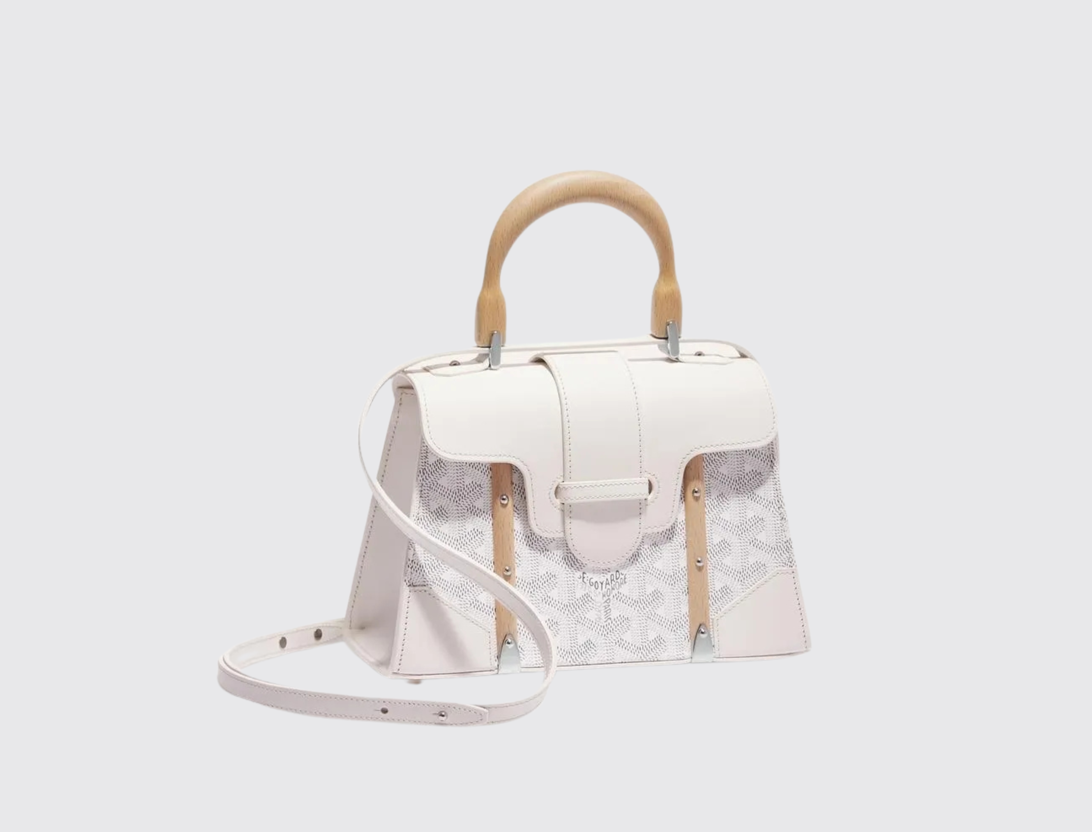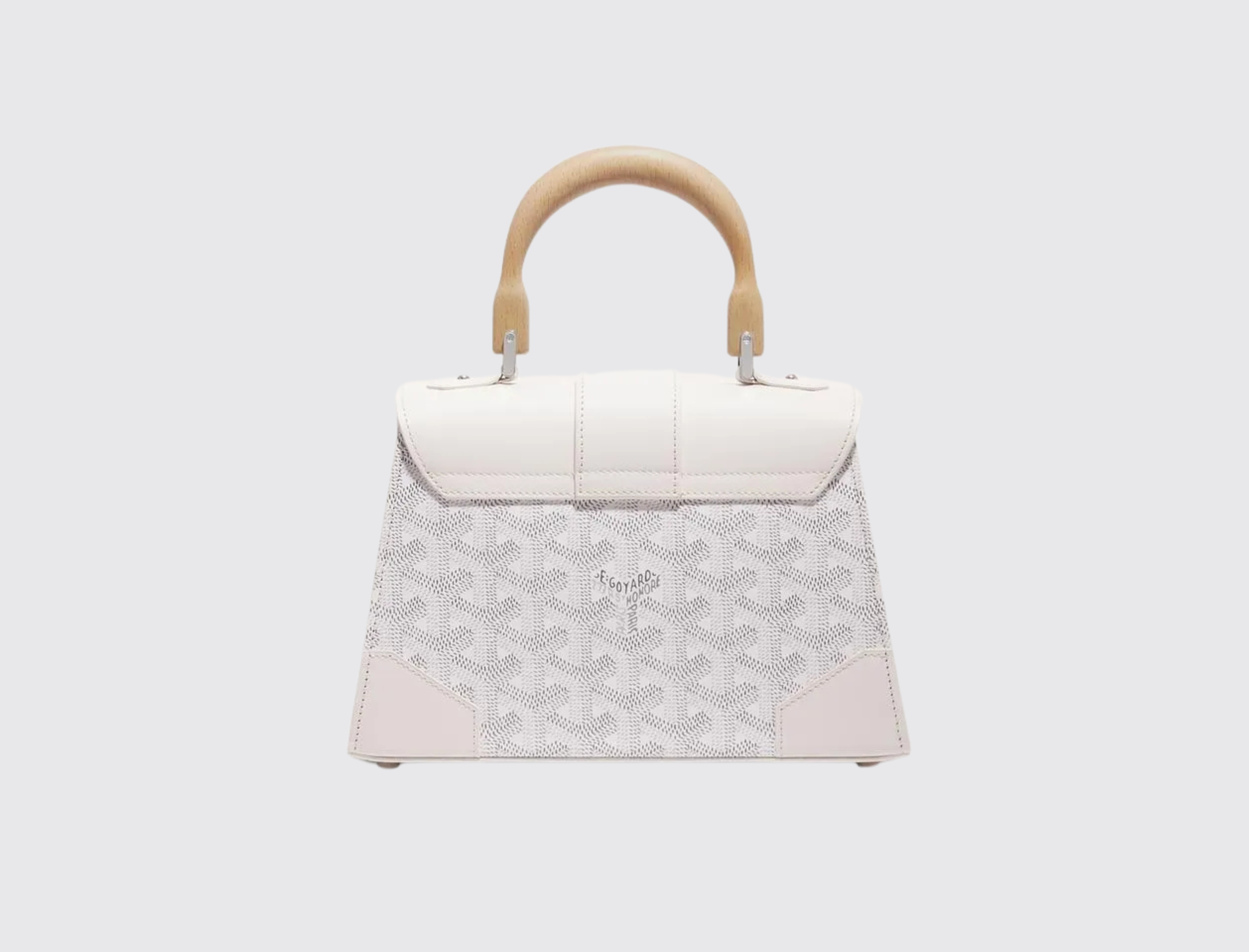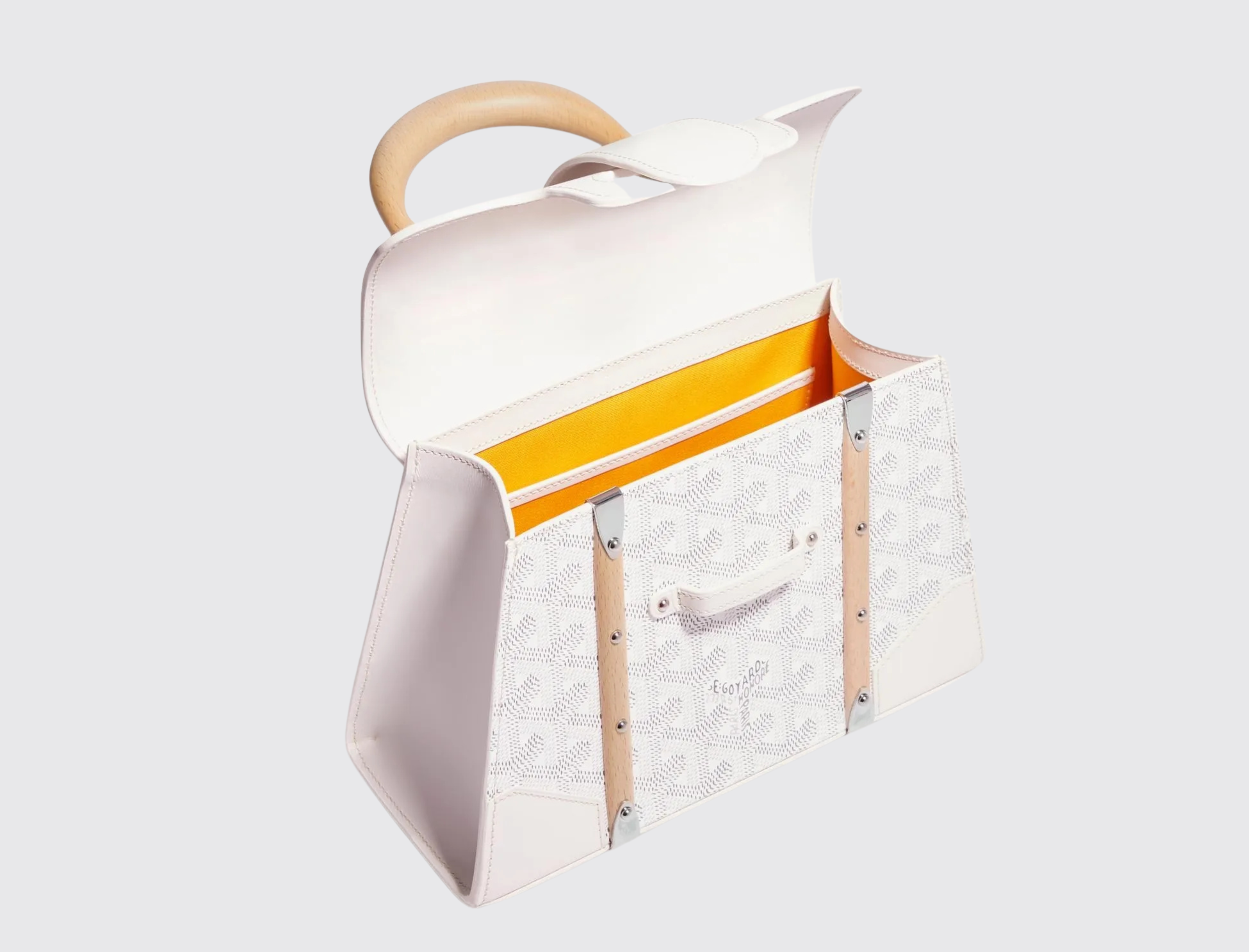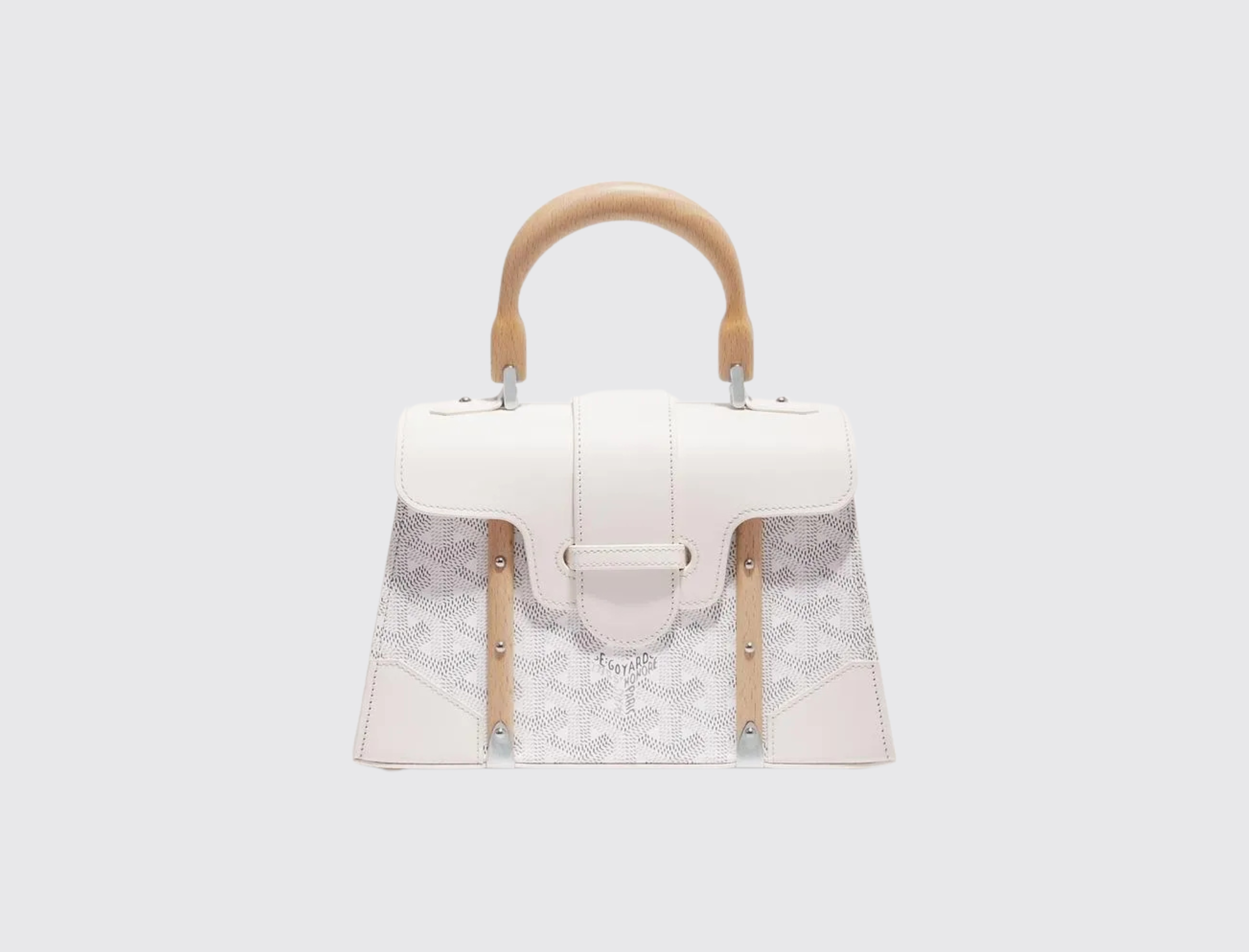 The Saïgon bag is one of Maison Goyard’s emblematic pieces as it inherits all their trunk-making signature codes, like the wood batons, leather corners and trunk rivets. In this structured, miniature format, the Saïgon bag can be worn with or without a strap for a chic and elegant style.