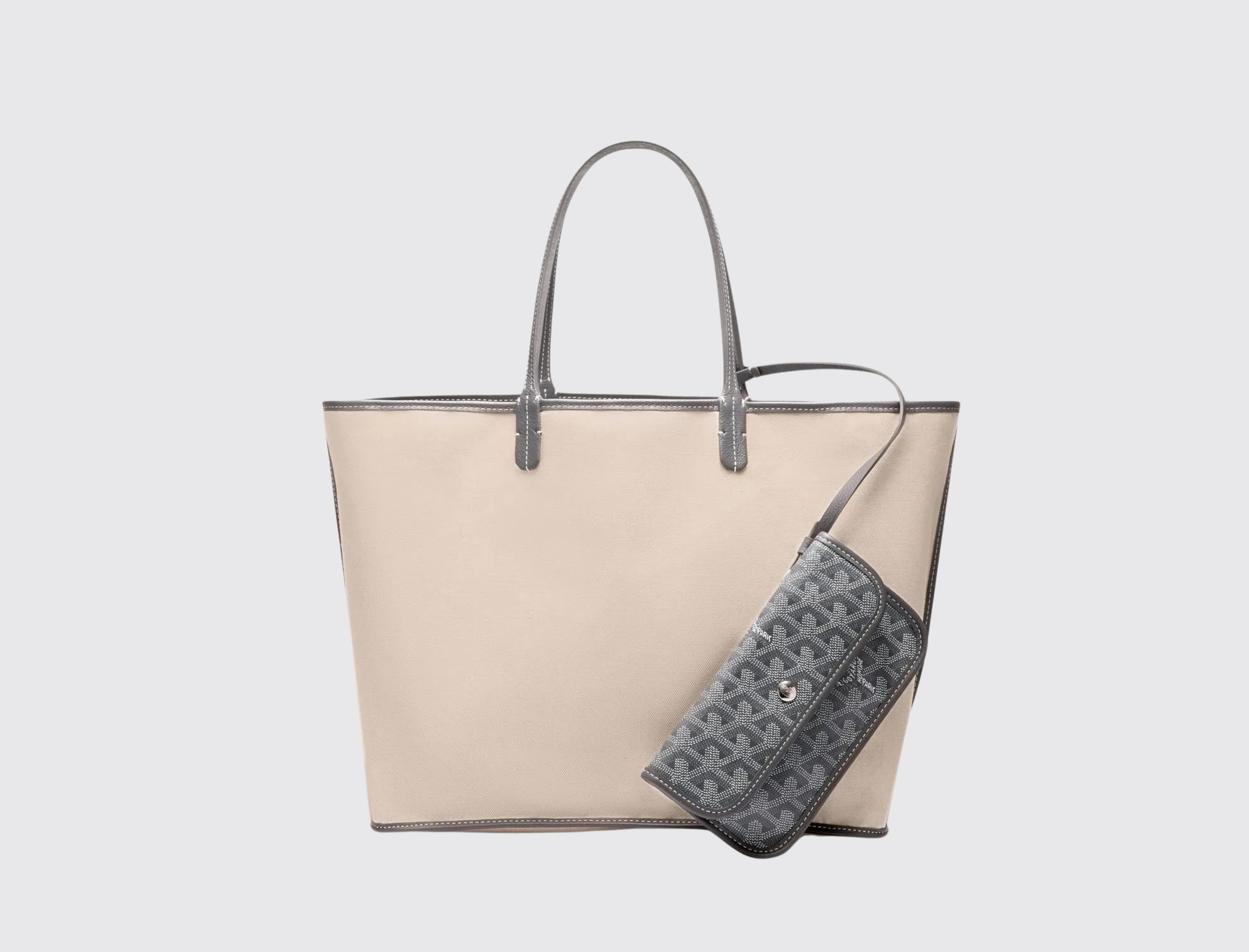 The Saint Louis PM bag is made from Goyardine and is unlined. It is extremely light and completely reversible. Wear it showing the Goyardine fabric or inside out, showing the linen and cotton mix. Its two leather handles with their progressive thickness mean it can be worn in different ways. It has a removable inside pocket attached to one of the handles for quick and easy access.