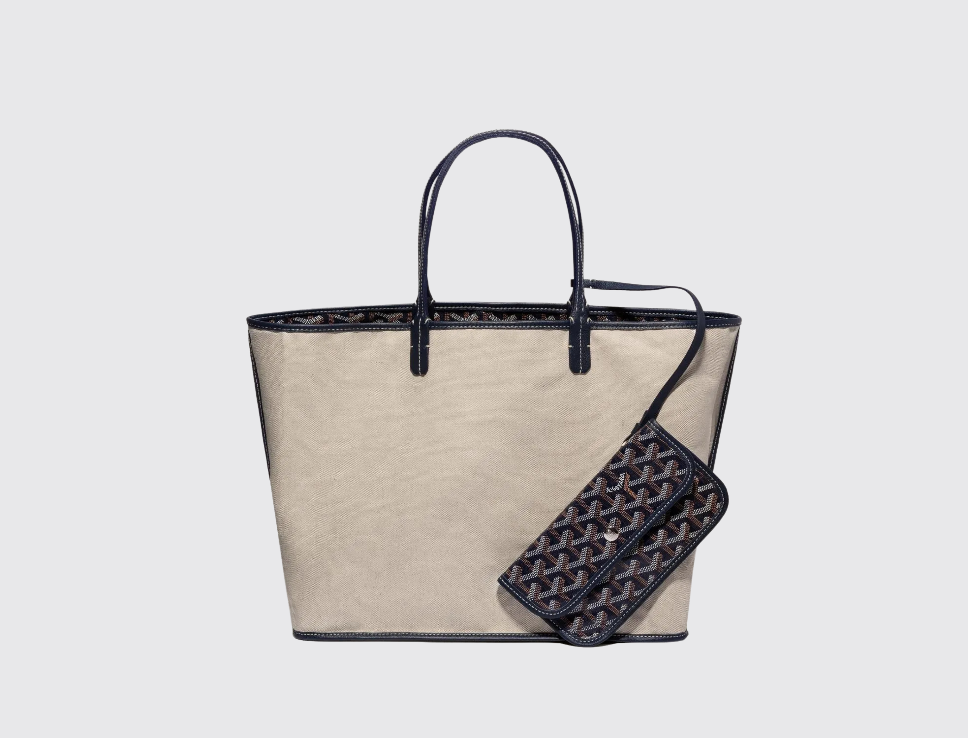 The Saint Louis PM bag is made from Goyardine and is unlined. It is extremely light and completely reversible. Wear it showing the Goyardine fabric or inside out, showing the linen and cotton mix. Its two leather handles with their progressive thickness mean it can be worn in different ways. It has a removable inside pocket attached to one of the handles for quick and easy access.