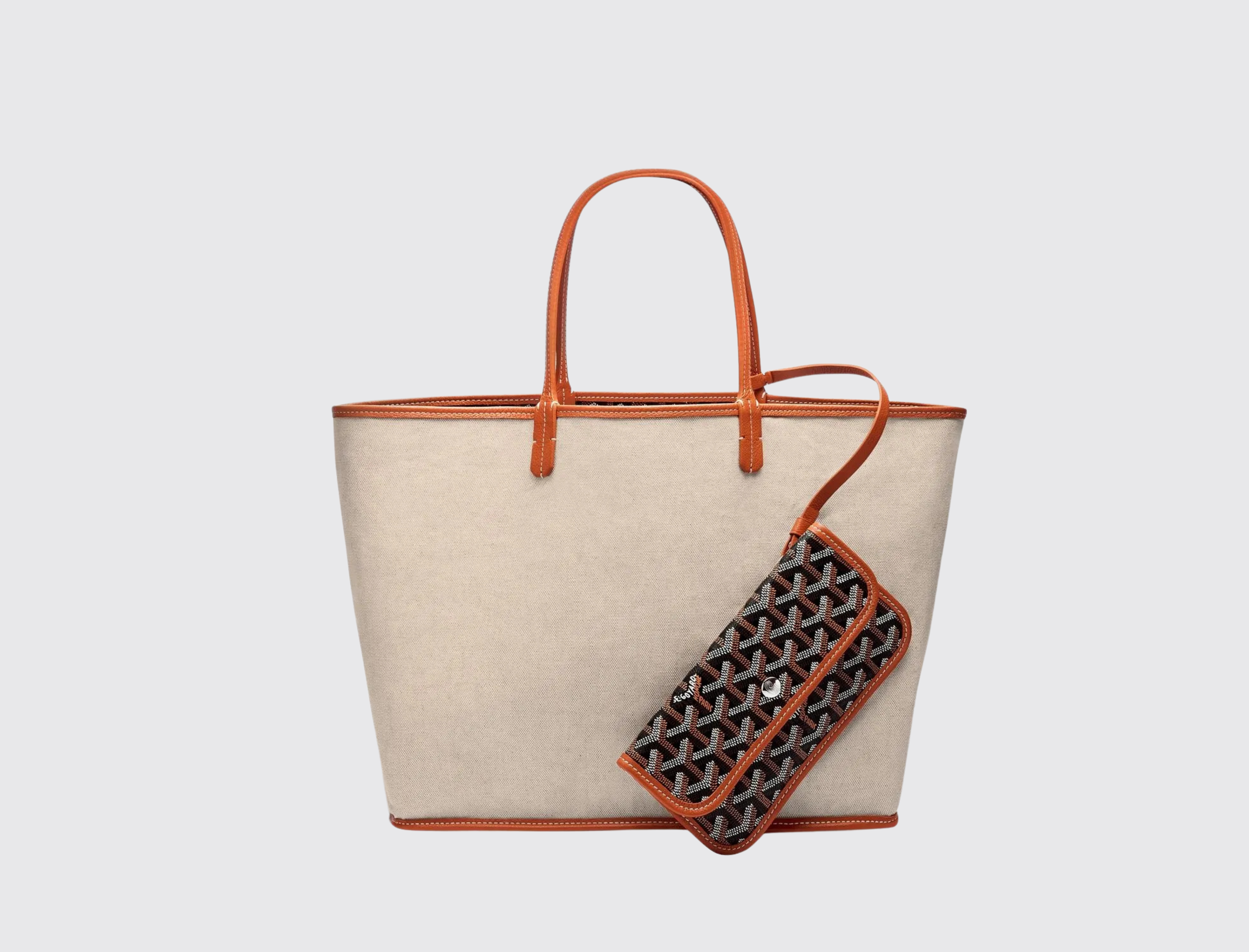 The Saint Louis PM bag is made from Goyardine and is unlined. It is extremely light and completely reversible. Wear it showing the Goyardine fabric or inside out, showing the linen and cotton mix. Its two leather handles with their progressive thickness mean it can be worn in different ways. It has a removable inside pocket attached to one of the handles for quick and easy access.