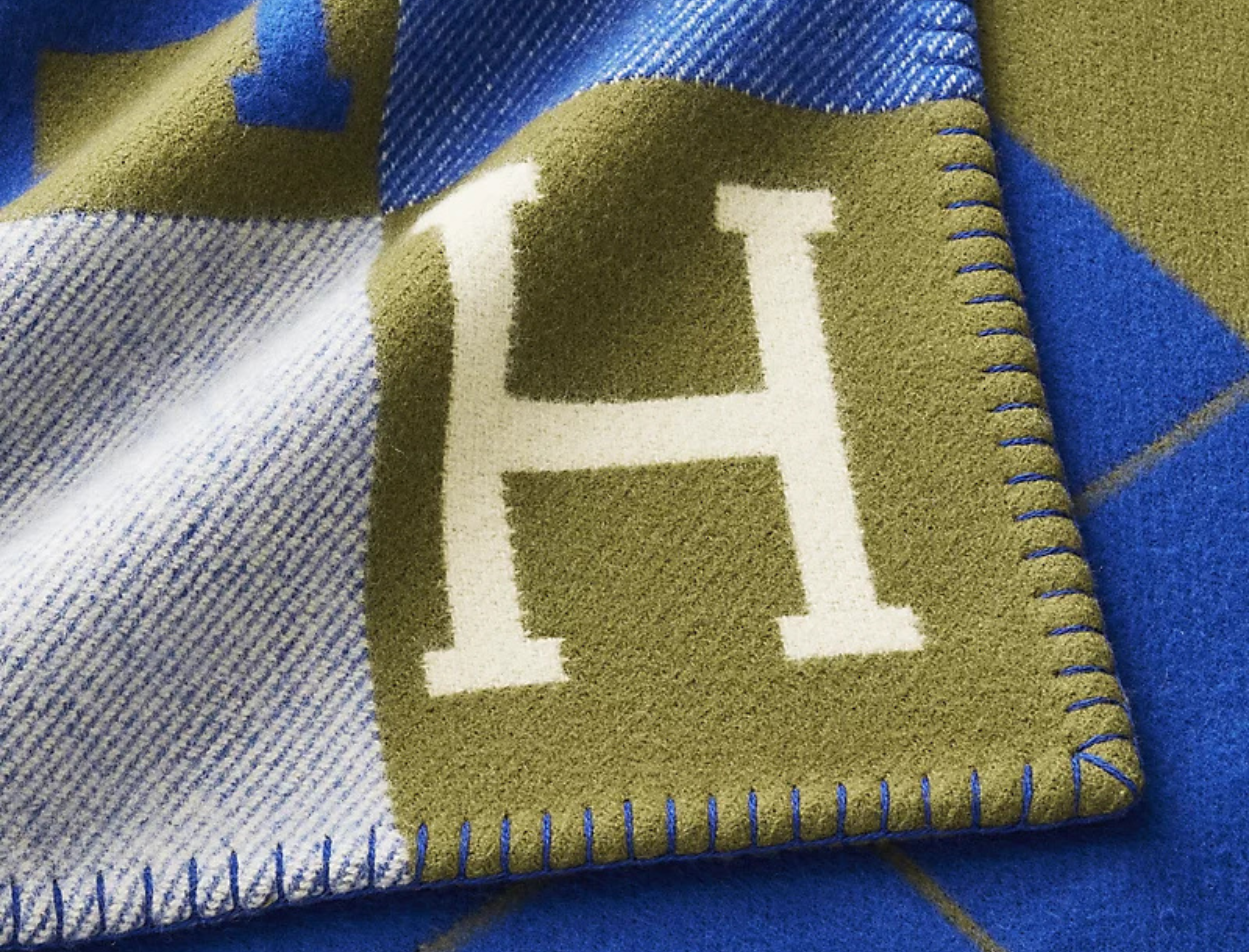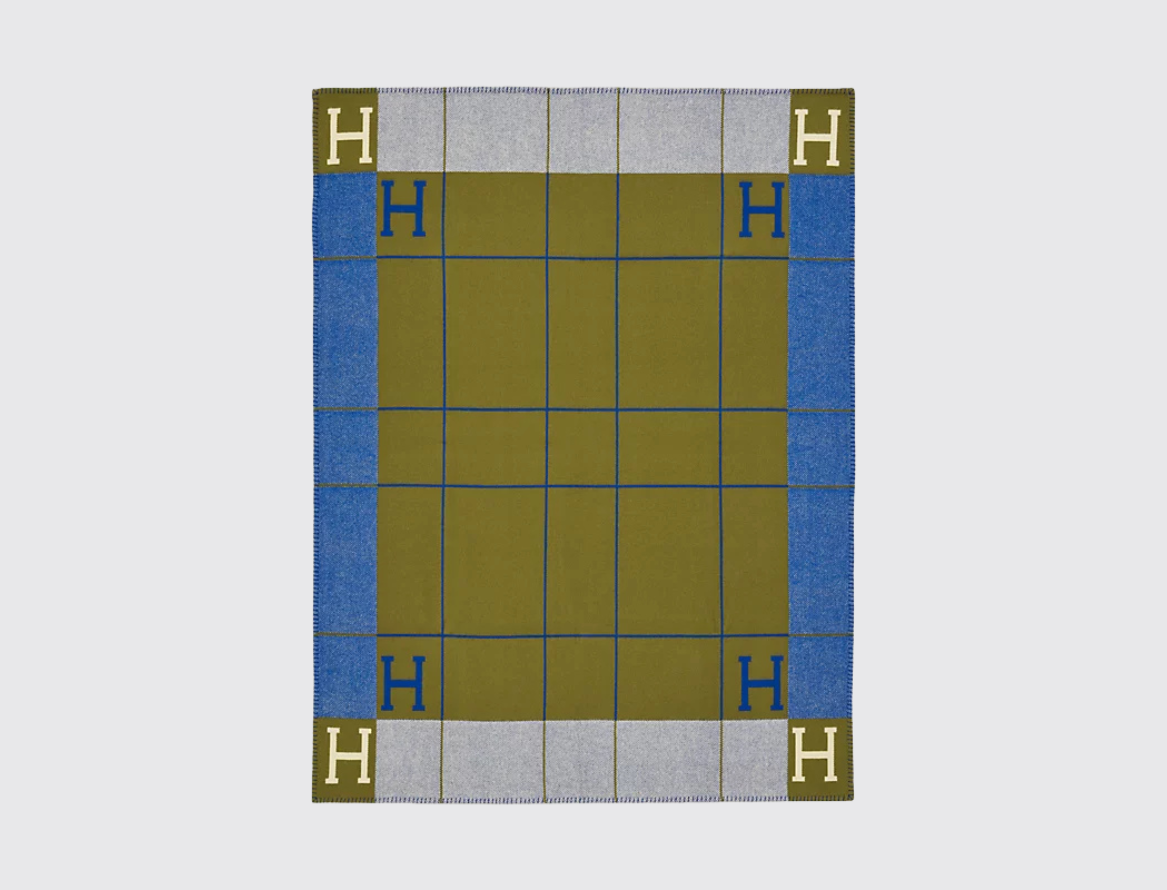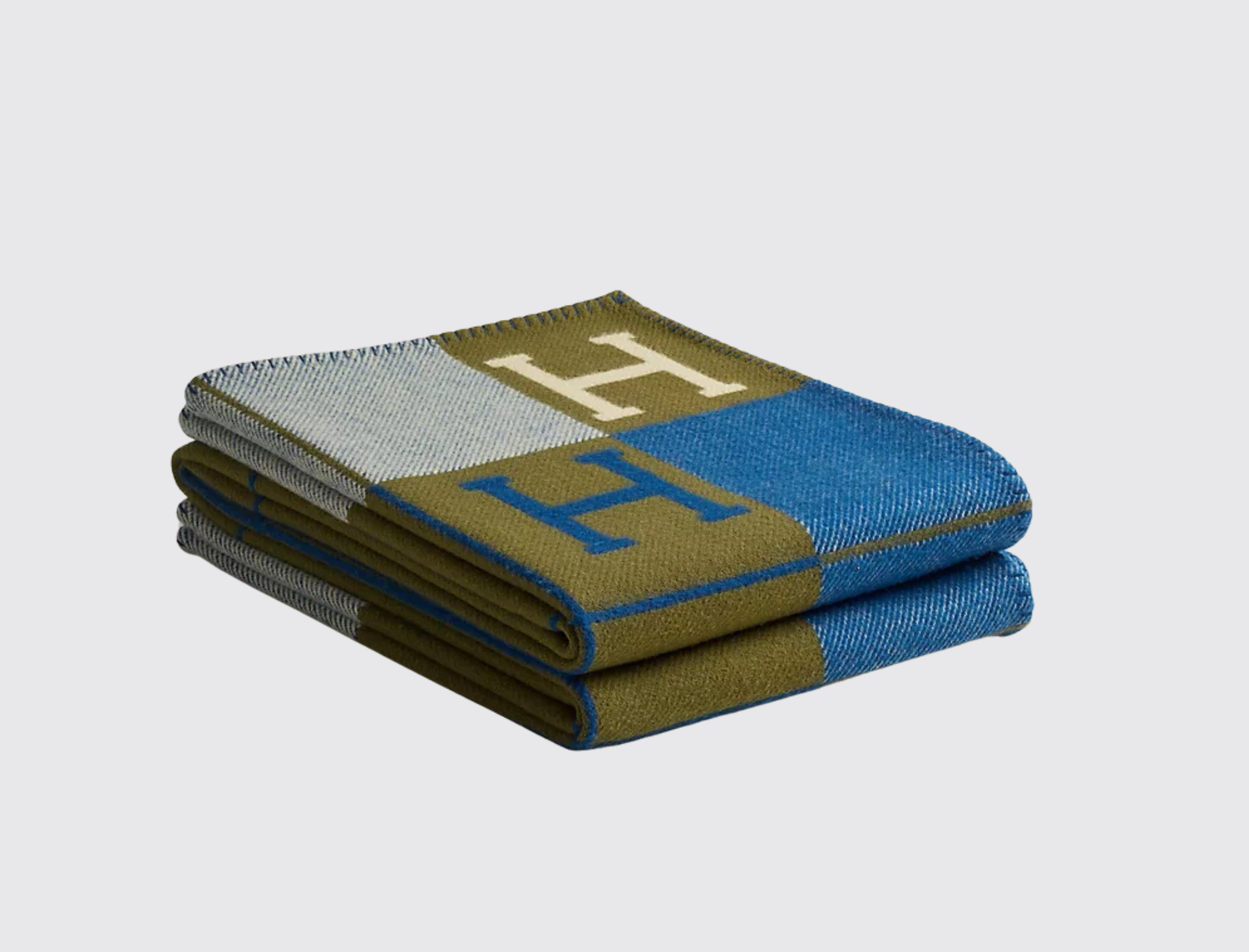 With an H elegantly adorning the corners, the Avalon III jacquard blankets and pillows are signature Hermès styles that combine skilled craftmanship and precise mechanical work. They are crafted with jacquard woven wool and cashmere.