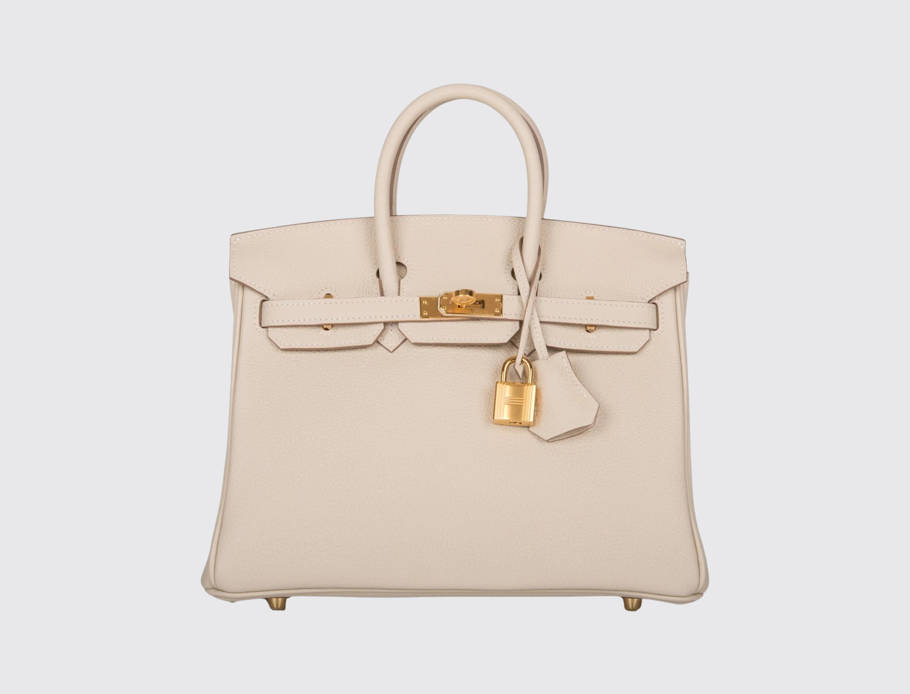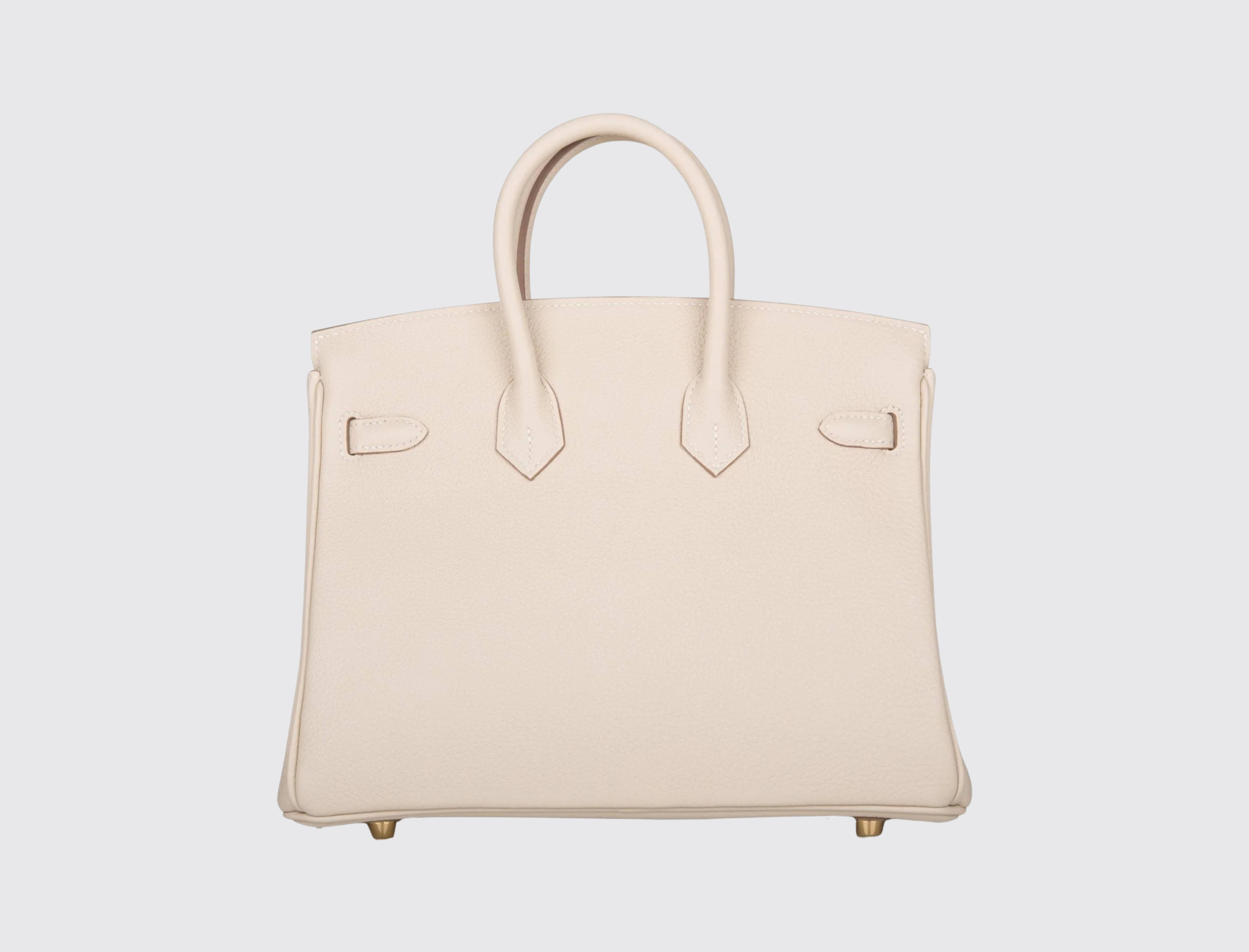 The Hermes Birkin 25 is a compact yet iconic symbol of luxury and craftsmanship. In the sophisticated craie color, this bag offers a chic and versatile look, perfect for both day and evening wear.