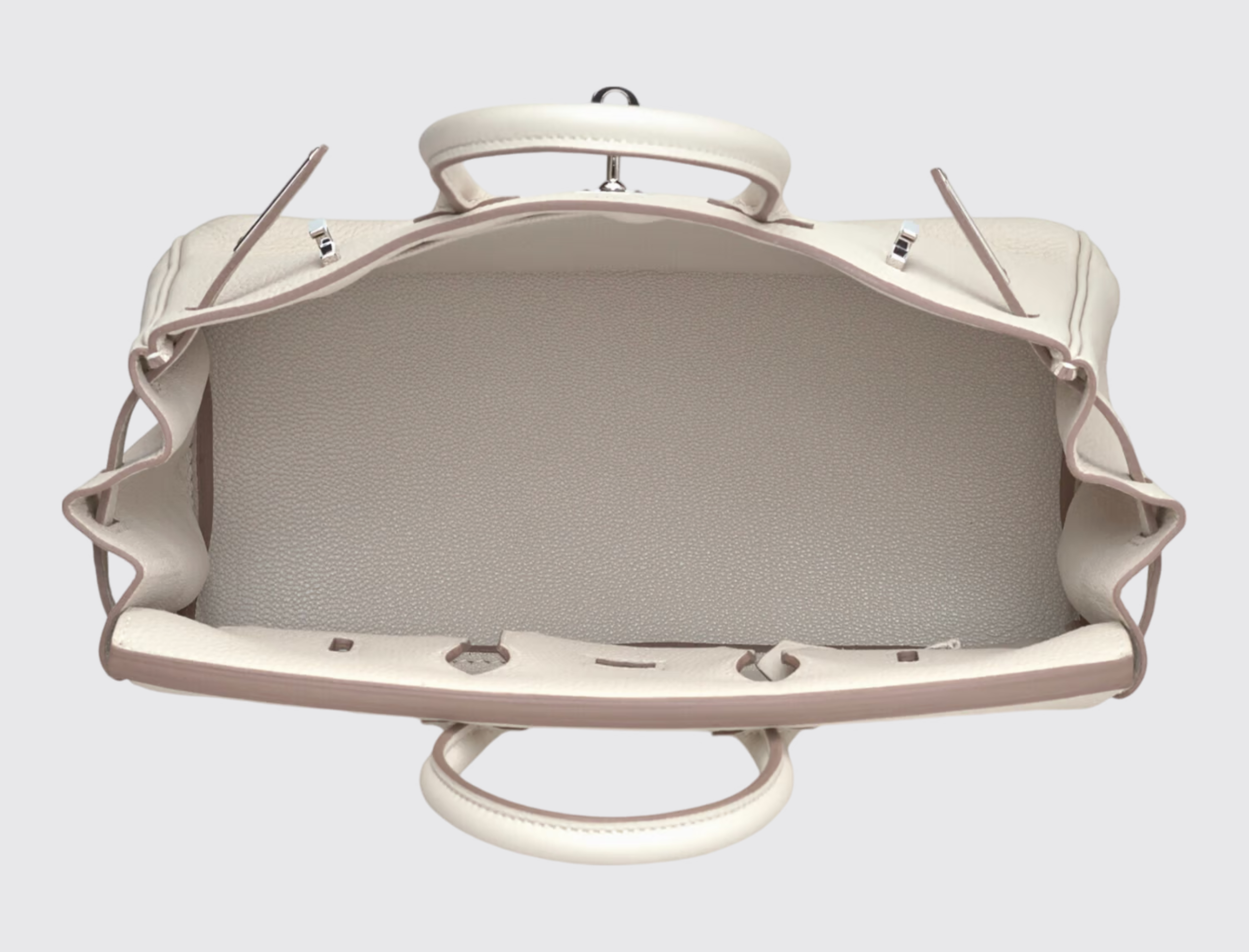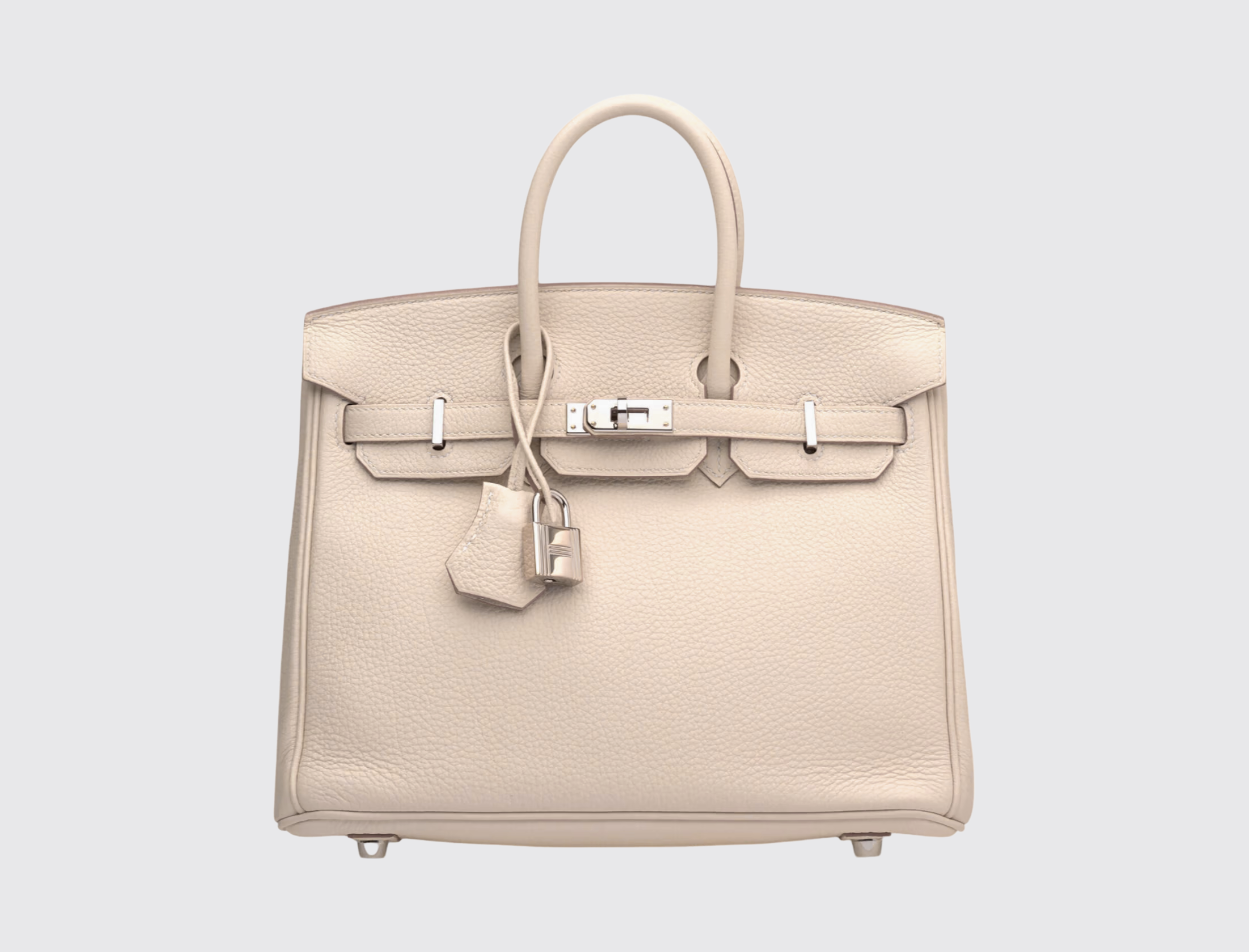 The Hermes Birkin 25 is a compact yet iconic symbol of luxury and craftsmanship. In the sophisticated craie color, this bag offers a chic and versatile look, perfect for both day and evening wear.