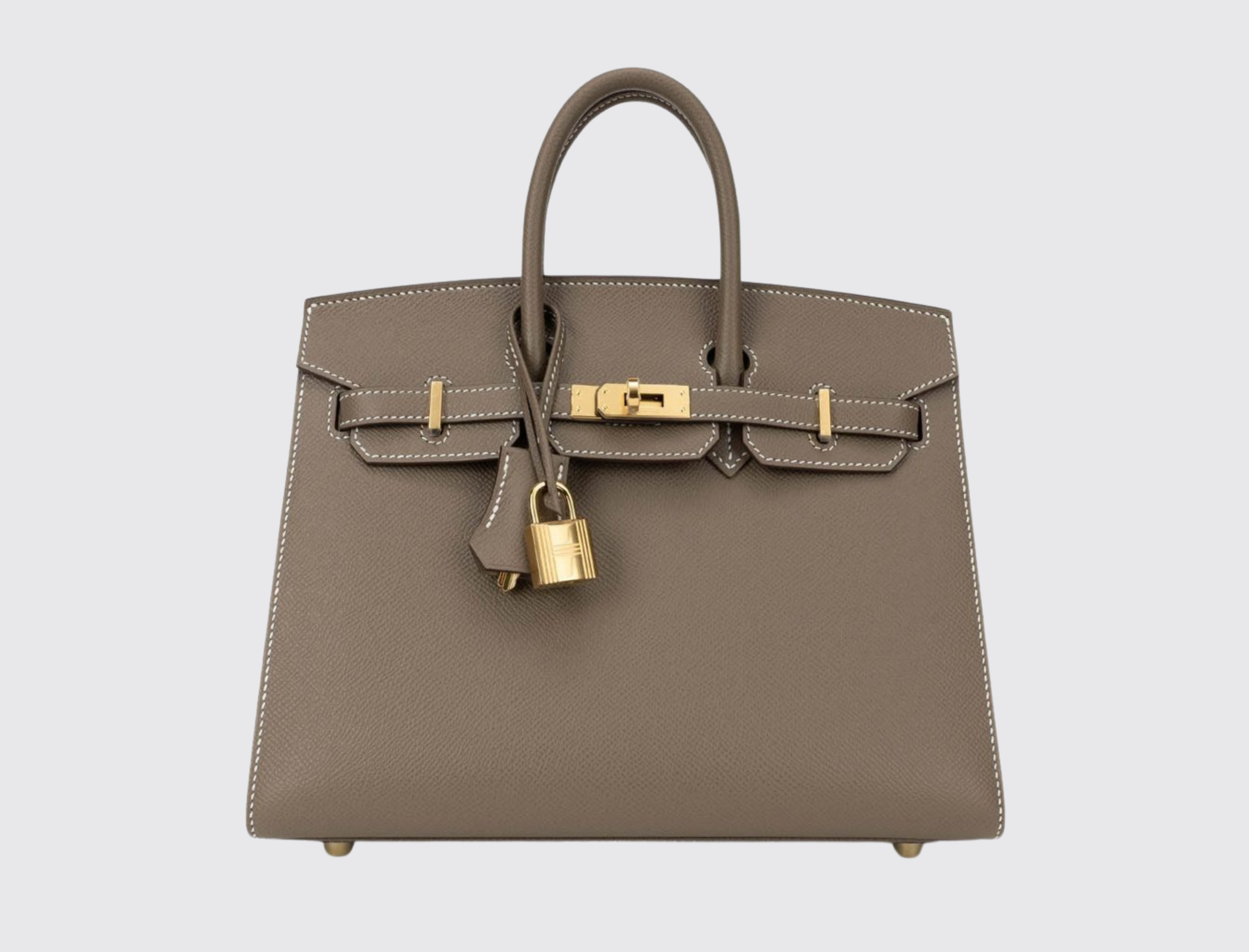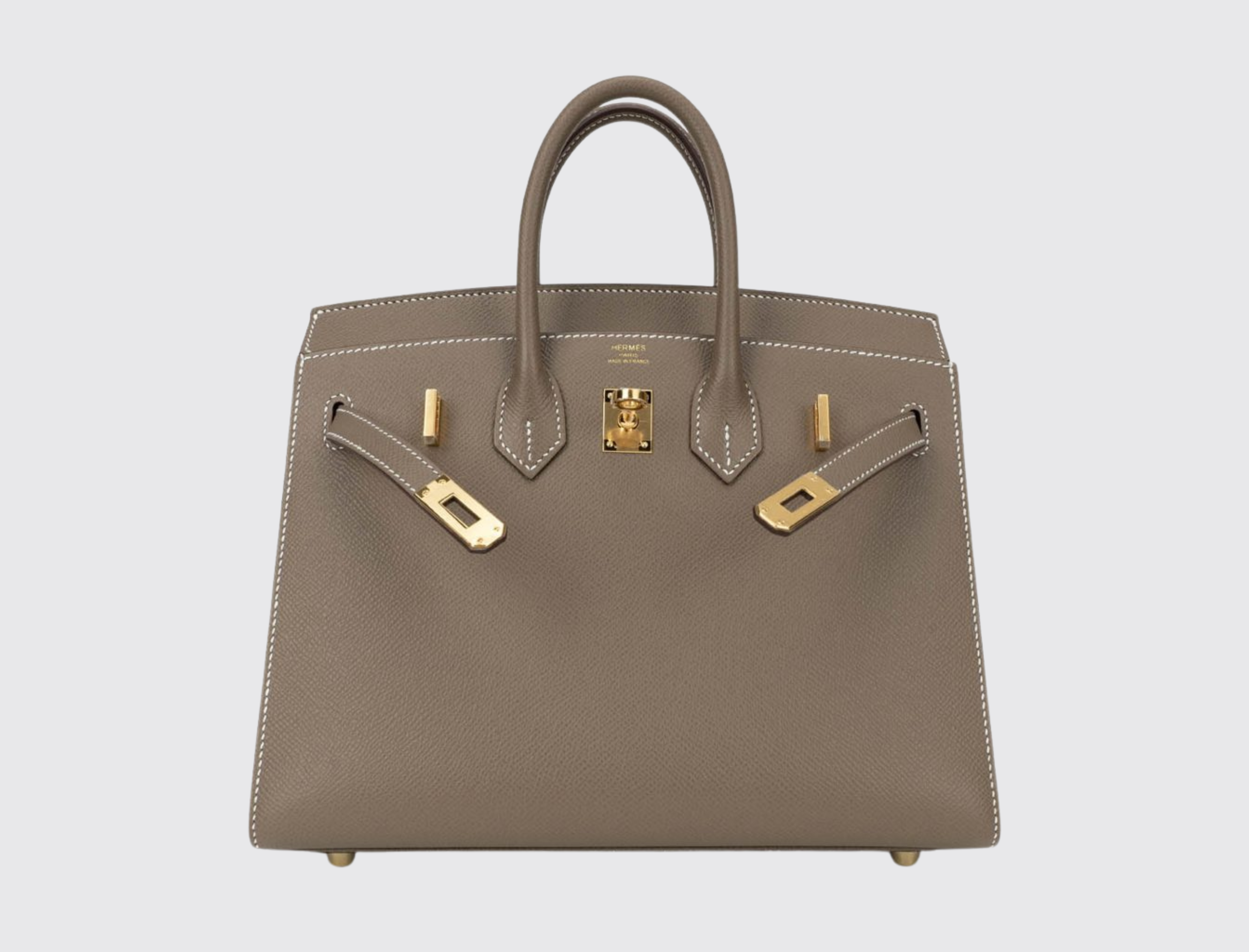The Hermes Birkin 25 is a compact yet iconic symbol of luxury and craftsmanship. In the sophisticated etoupe color, this bag offers a chic and versatile look, perfect for both day and evening wear.