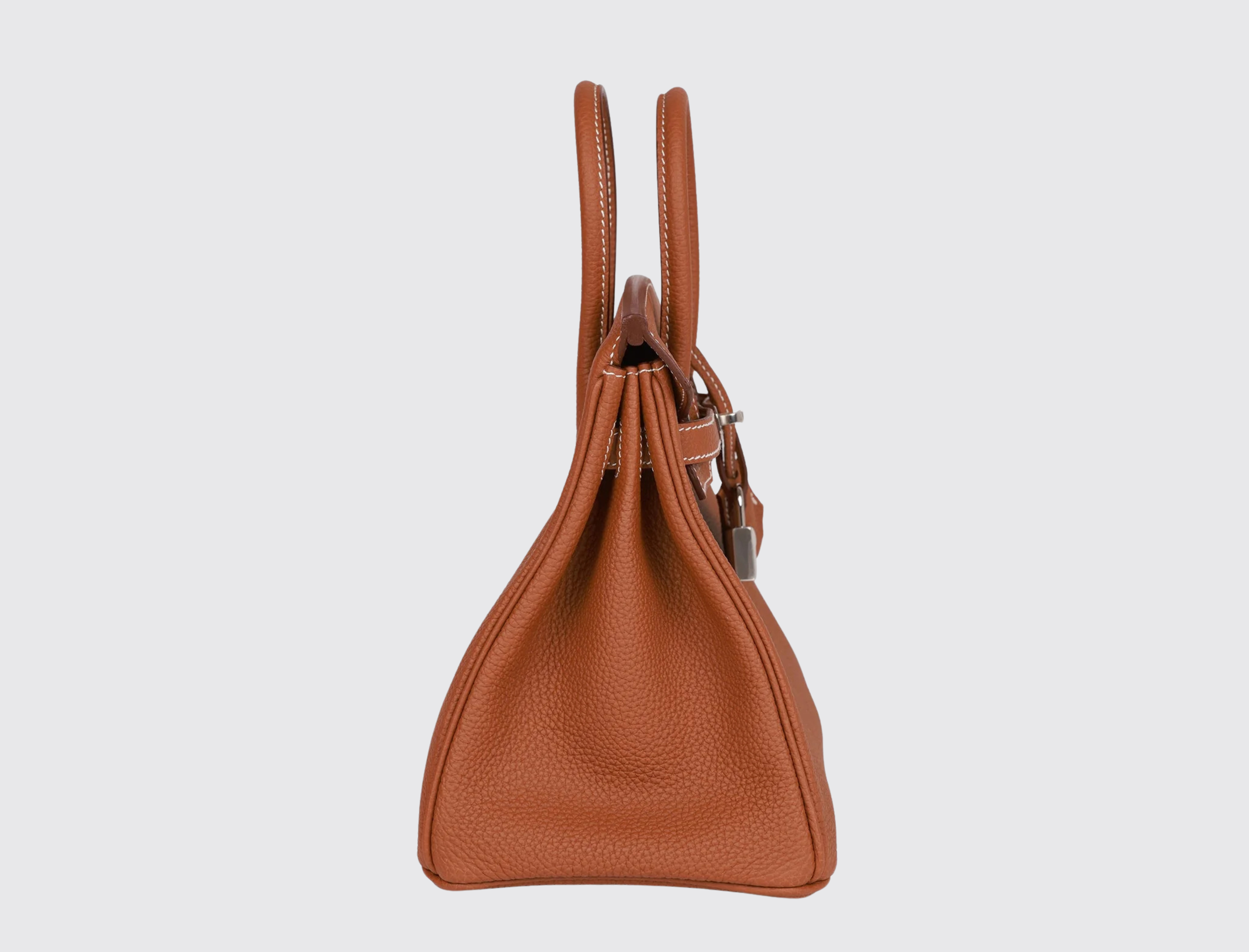 The Hermes Birkin 25 is a compact yet iconic symbol of luxury and craftsmanship. In the sophisticated gold color, this bag offers a chic and versatile look, perfect for both day and evening wear.