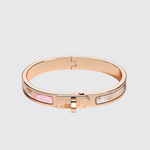The Mini Clic Kelly bracelet features a slim design with the classic Hermes H logo. It is adorned with unique printed enamel.