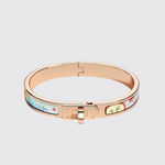 The Mini Clic Kelly bracelet features a slim design with the classic Hermes H logo. It is adorned with unique printed enamel.