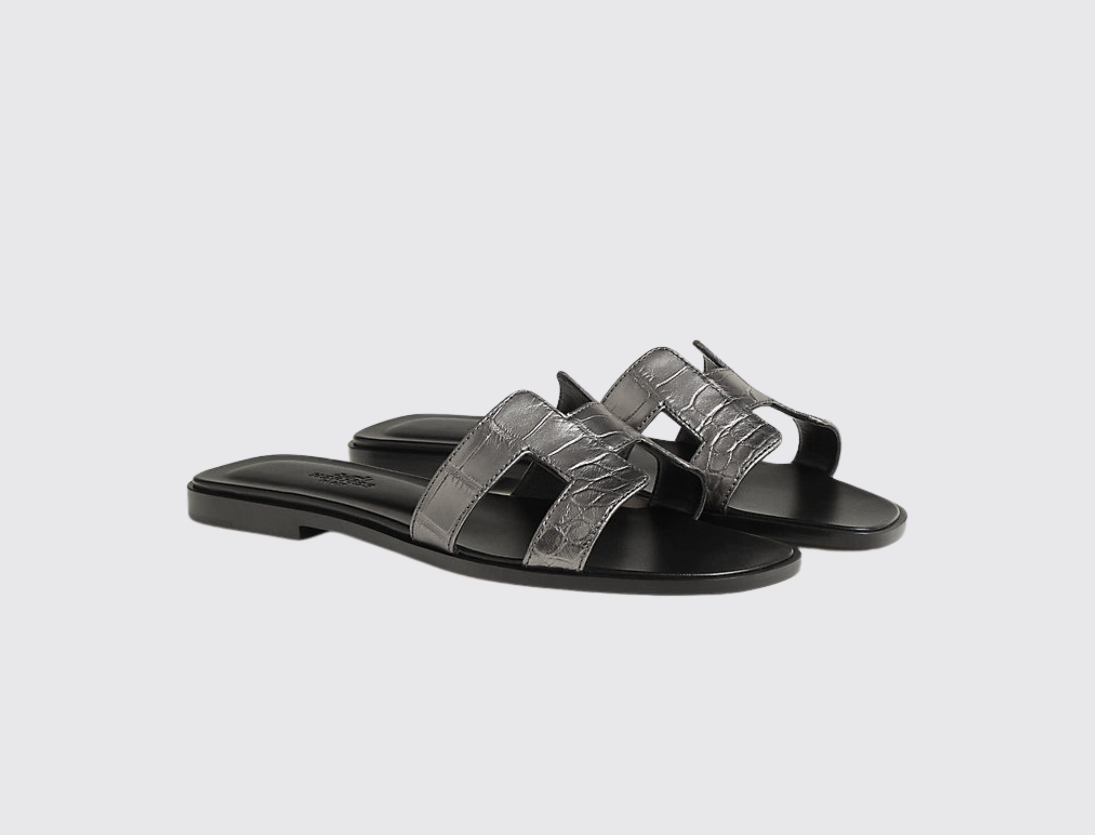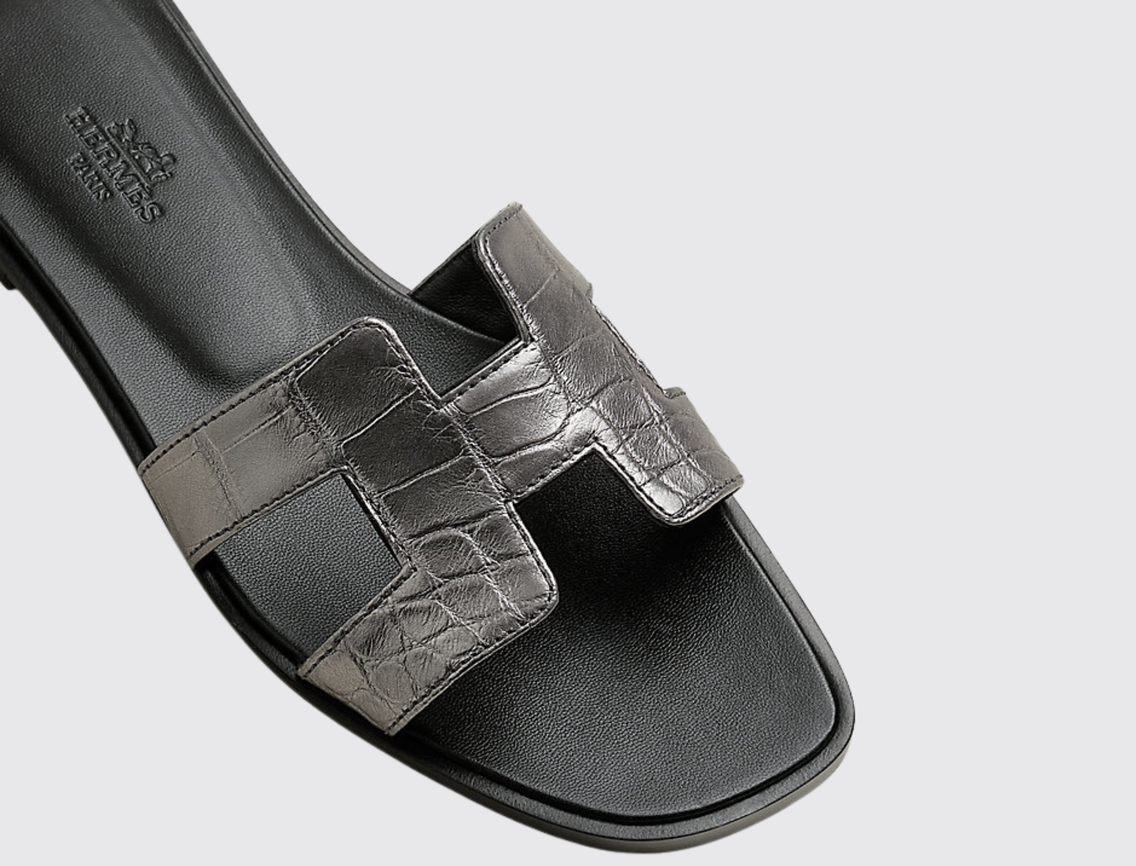 The sandal is an invitation to travel. Its journey begins on the shores of Oran, warmed by the radiant sun. Then, alive with vibrant colors and geometric lines, it makes its way between Ndebele houses. Created in 1997 by Pierre Hardy and enhanced by the iconic H cut, its style is minimalist and timeless. From one collection to the next, this summer icon is constantly reimagined in a multitude of colors and materials.