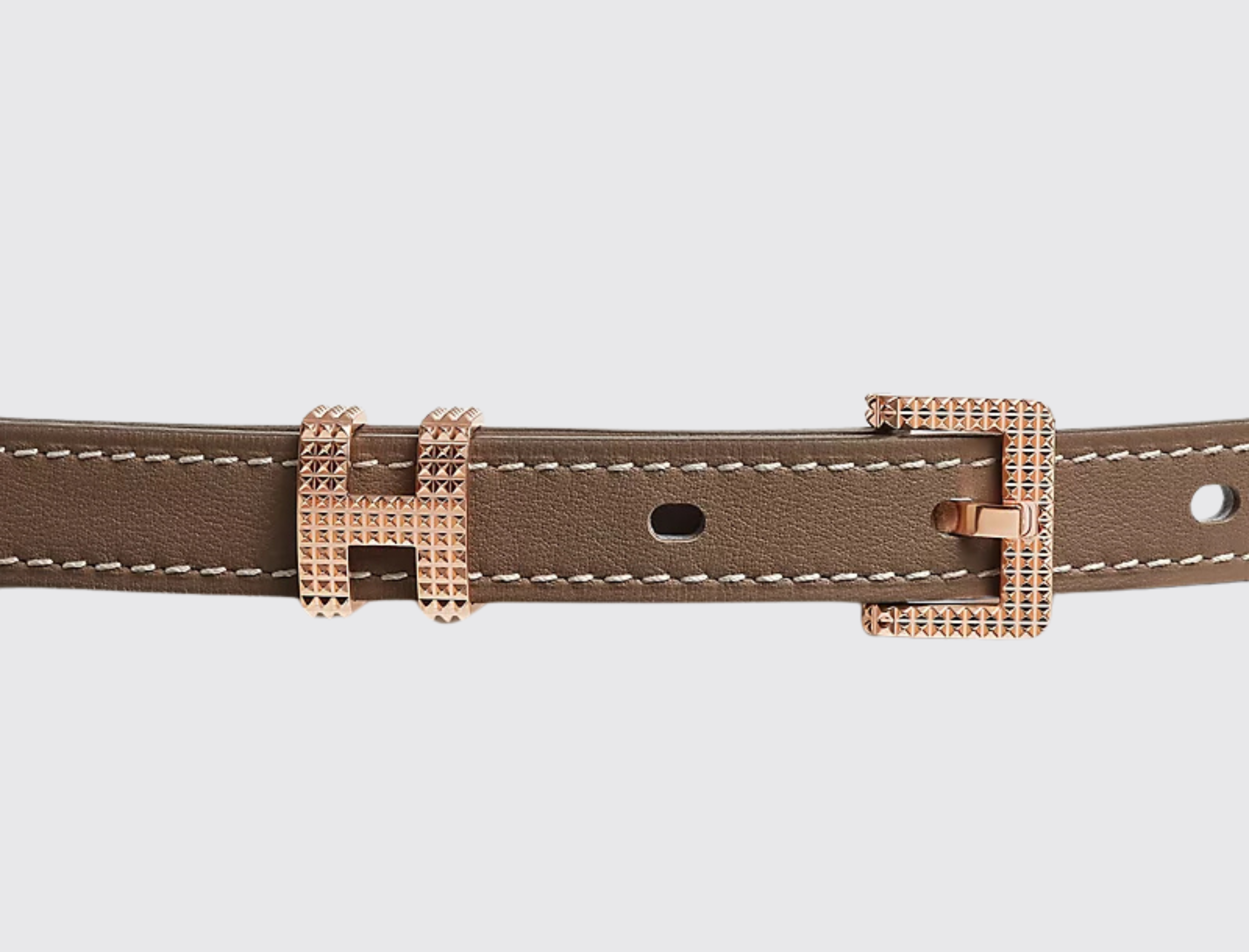 The Pop H belt is a luxurious accessory crafted from luxurious leather and equipped with a sturdy metal buckle. Its signature Pop H design features a stylish guilloched jewel that doubles as a loop, adding a touch of sophistication to any outfit. Elevate your style with this bold and chic belt.
