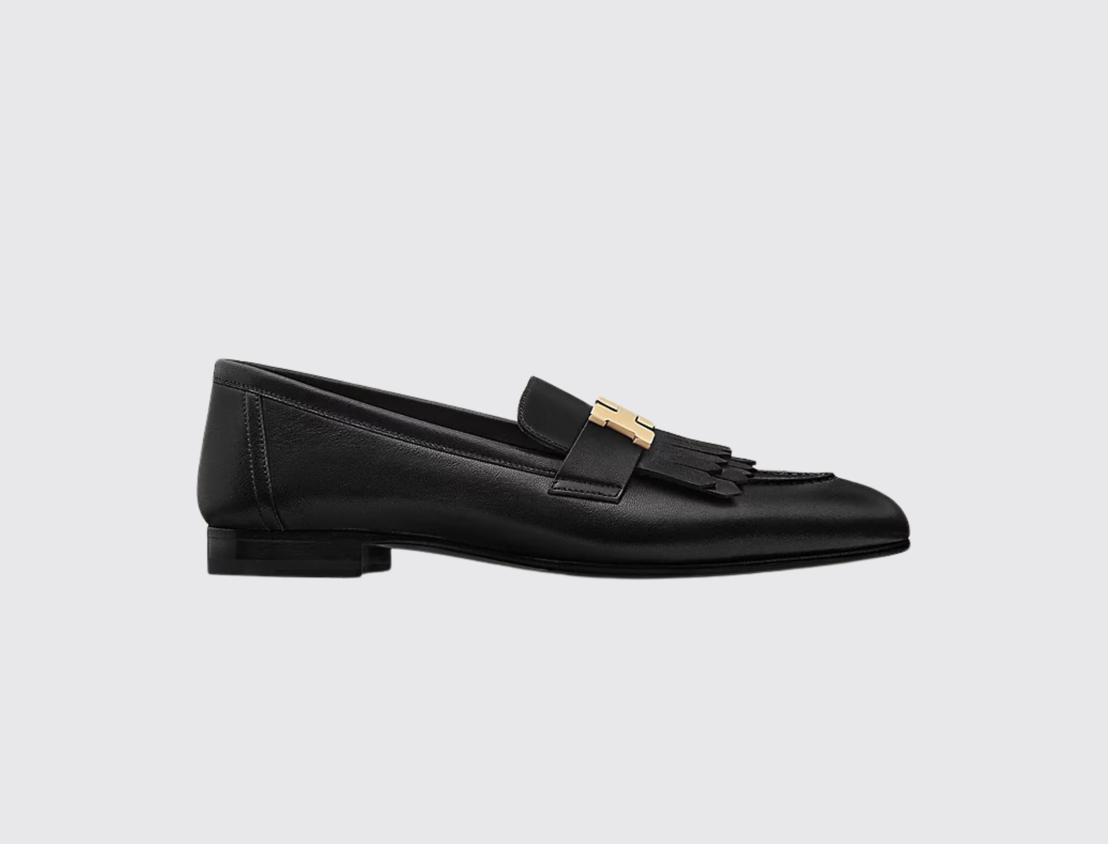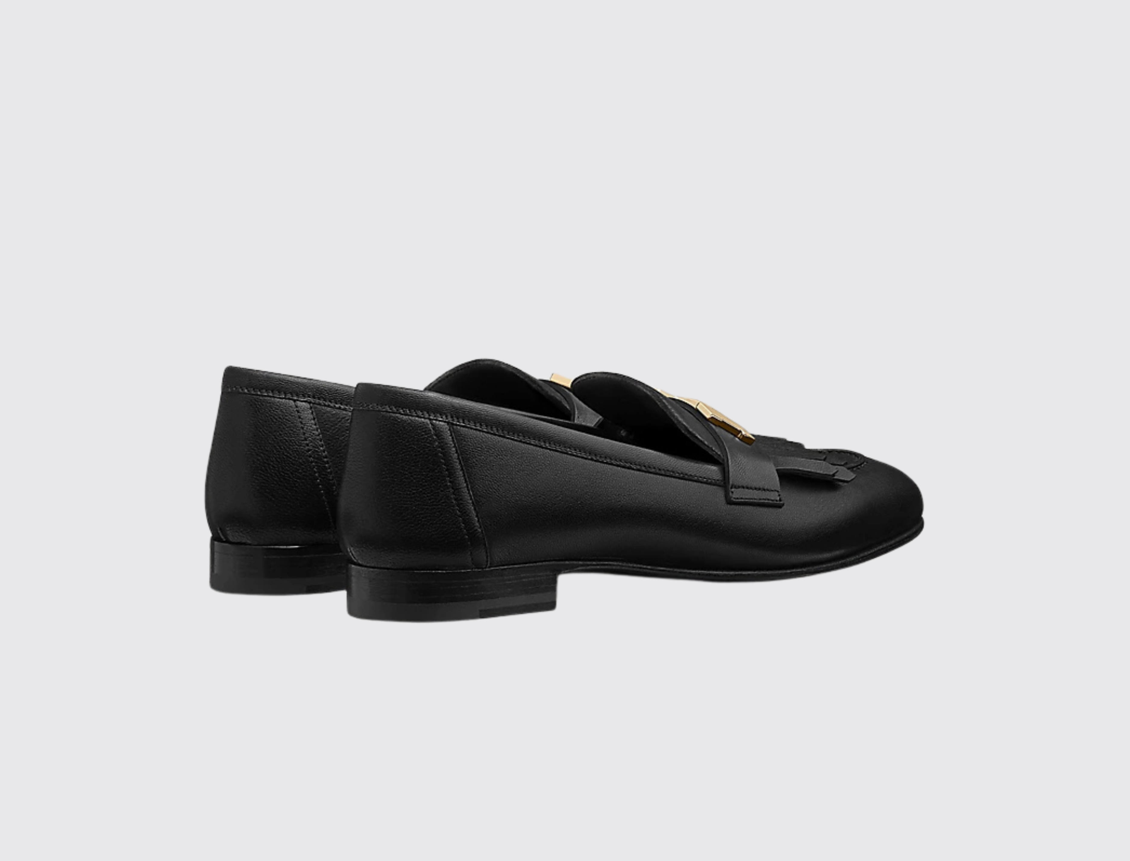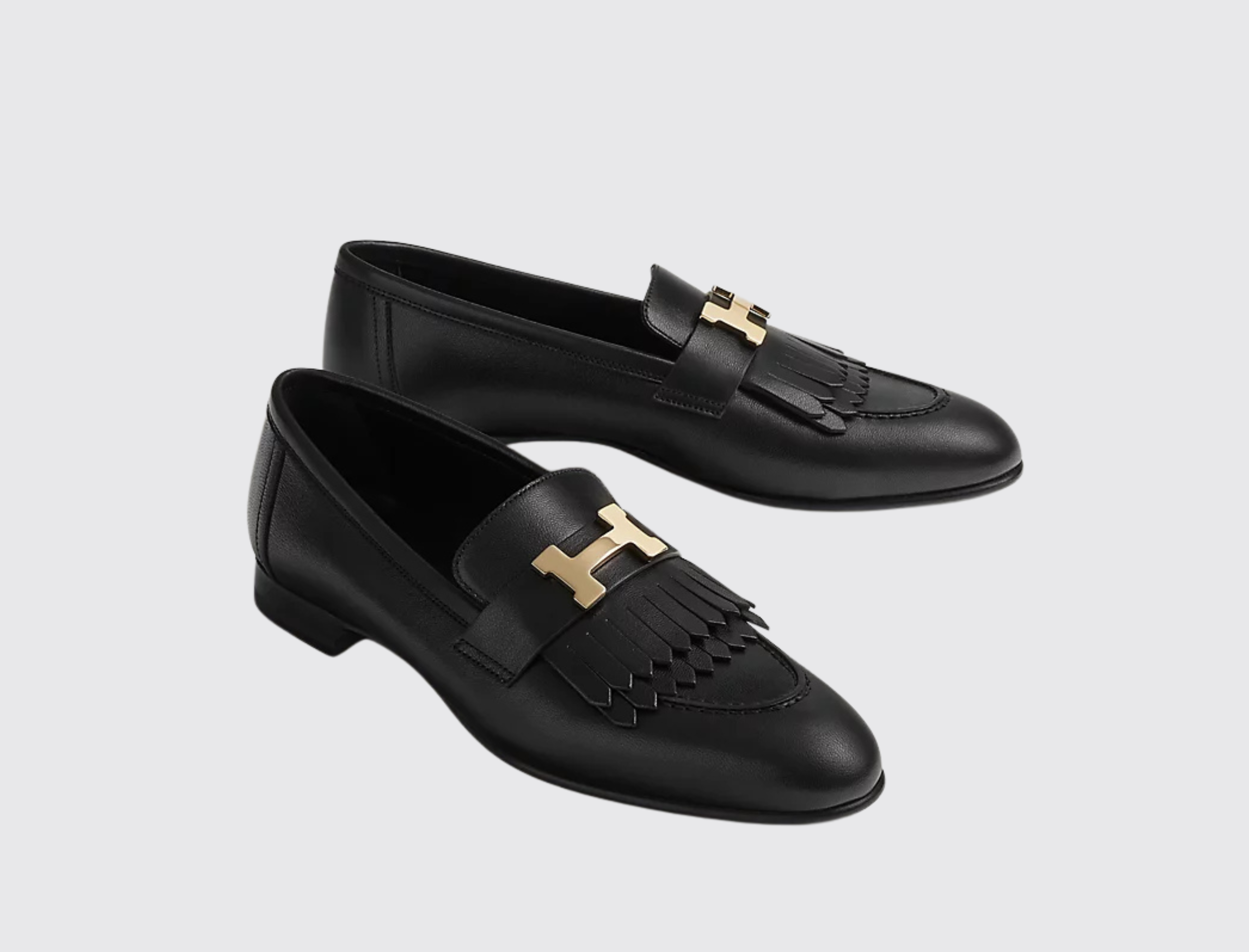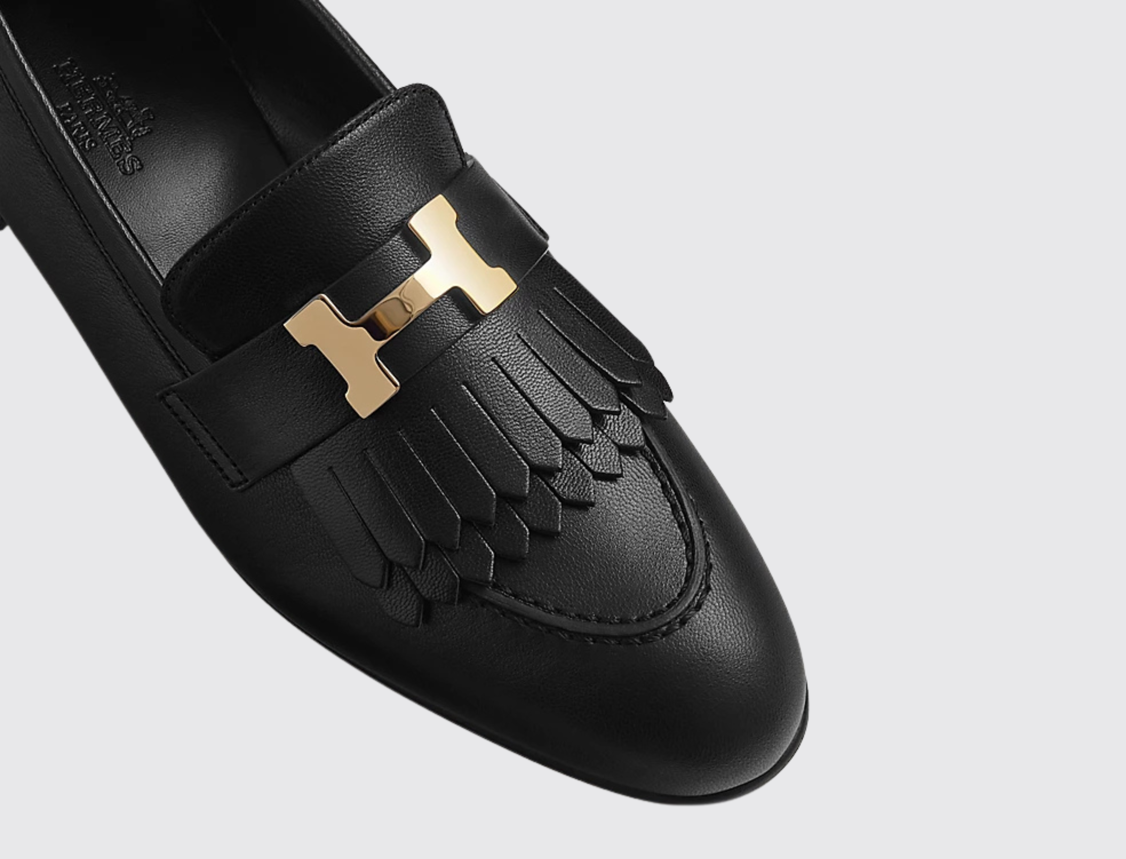 The Hermès Royal Loafer is a refined piece of footwear that combines classic design with luxurious materials. The signature Paris buckle makes an appearance, offering a chic and sophisticated look.
