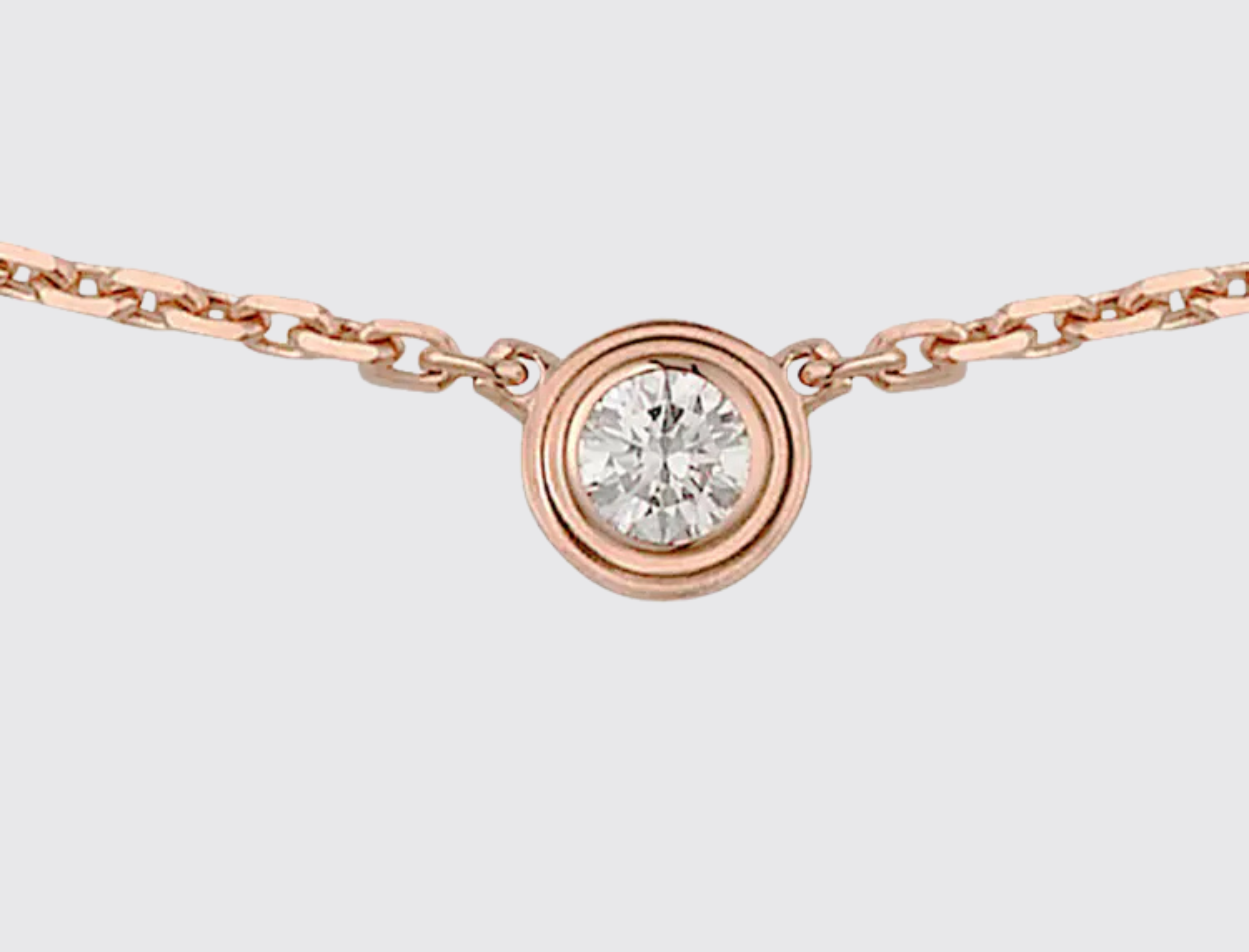The Cartier d'Amour necklace, mini model is a refined and timeless piece that showcases Cartier's dedication to elegance and craftsmanship. This delicate necklace features a brilliant-cut diamond, encircled by a micro-pavé setting, enhancing its sparkle and creating a luminous halo effect.
