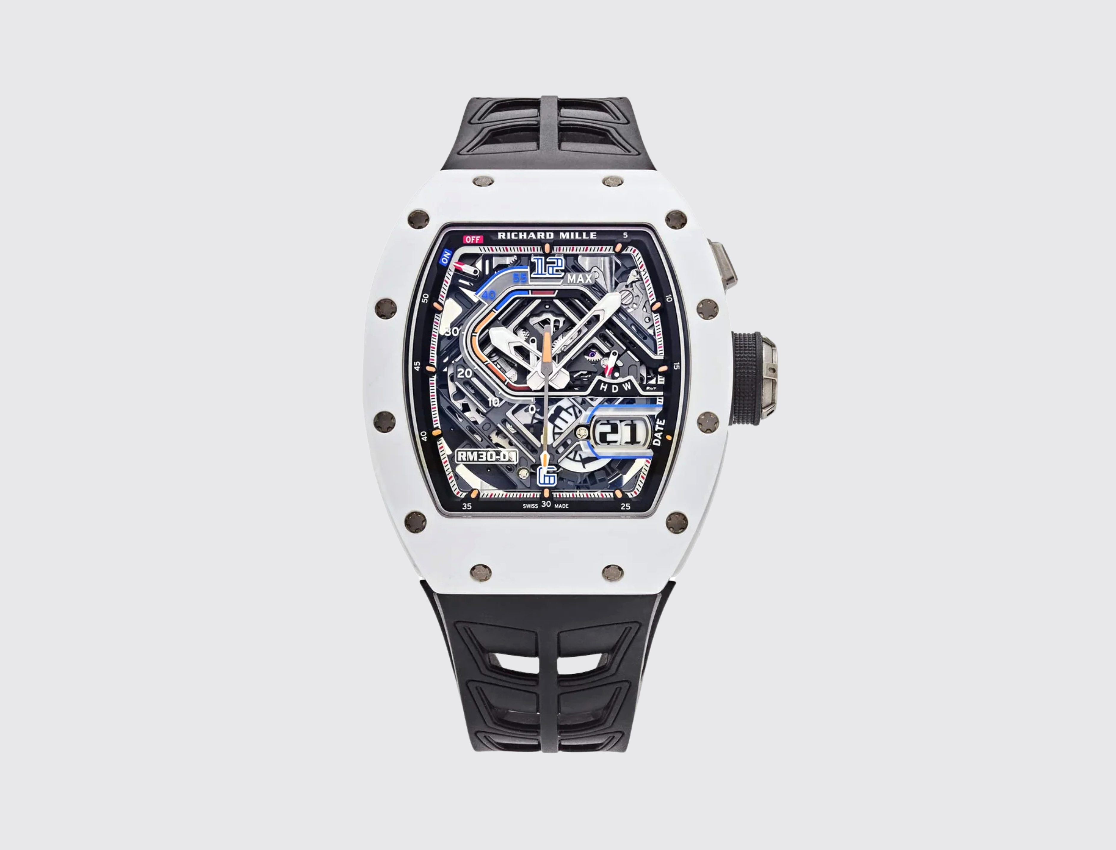 A true synthesis of the identity of its collections, the RM 30-01 stays true to Richard Mille’s key values: ergonomics, pure lines and exceptional finishes. The RM 30-01 Automatic with Declutchable Rotor epitomises not only the quintessence of the brand, but also the many aesthetic adventures experienced by Richard Mille for over twenty years.