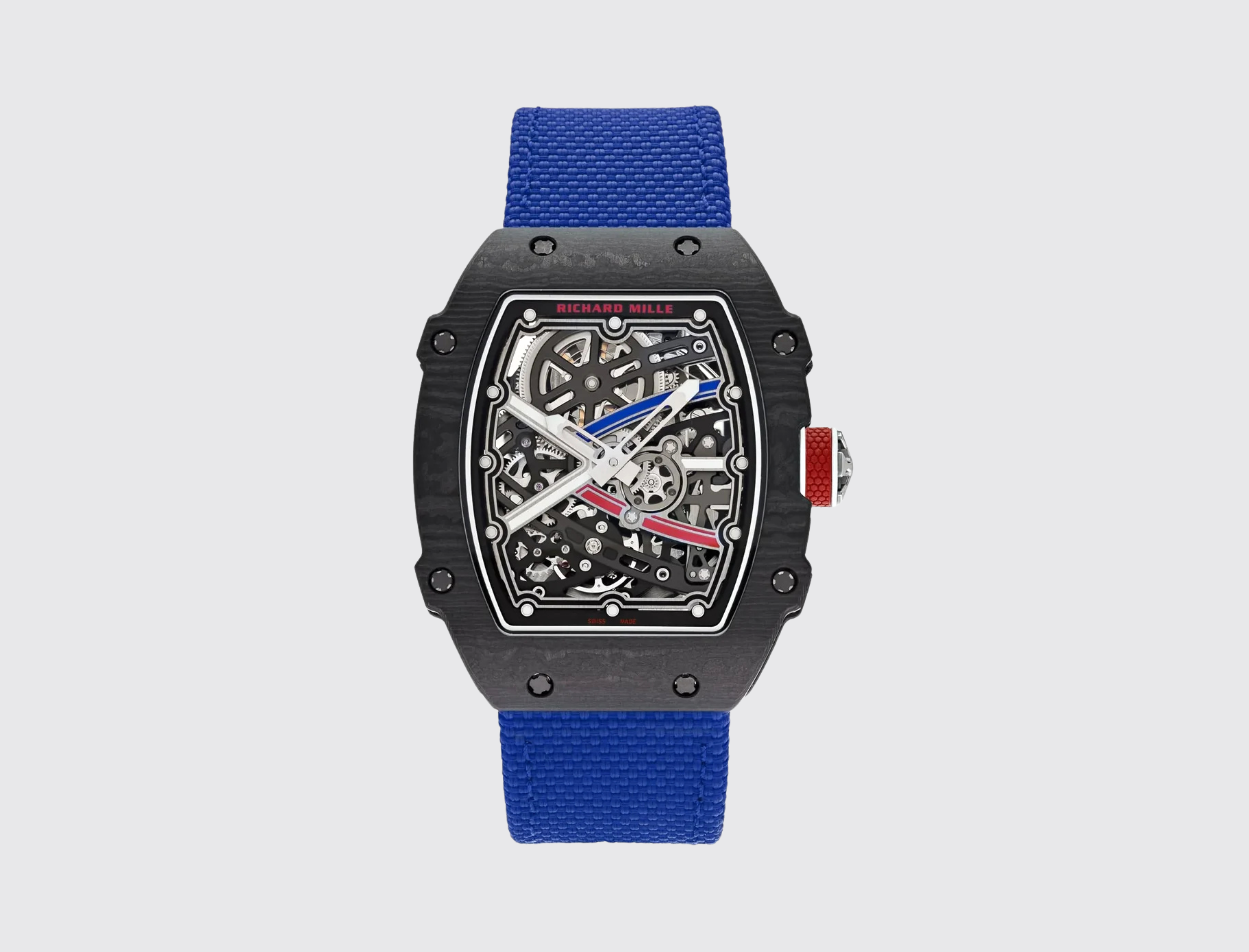 The Richard Mille RM 67-02 'Sébastien Ogier' Carbon TPT (2019) is a high-performance timepiece designed in collaboration with the rally champion. Featuring a durable Carbon TPT case, this watch combines strength and lightweight comfort, ideal for extreme conditions. The automatic movement ensures precise timekeeping, while the bold design reflects Ogier’s dynamic and competitive spirit. Limited in production, this timepiece offers a unique blend of cutting-edge technology, style, and motorsport inspiration, making it a must-have for collectors.