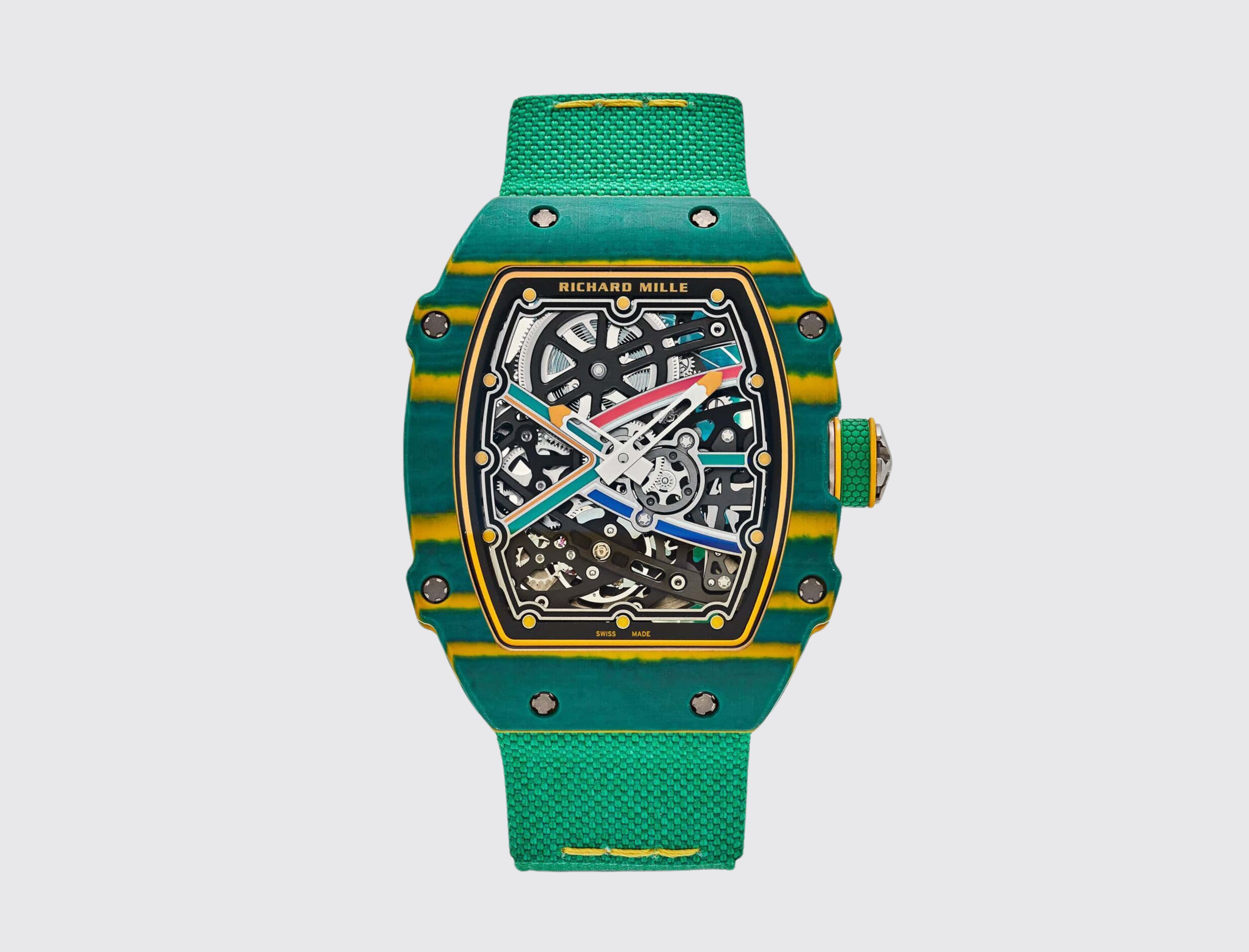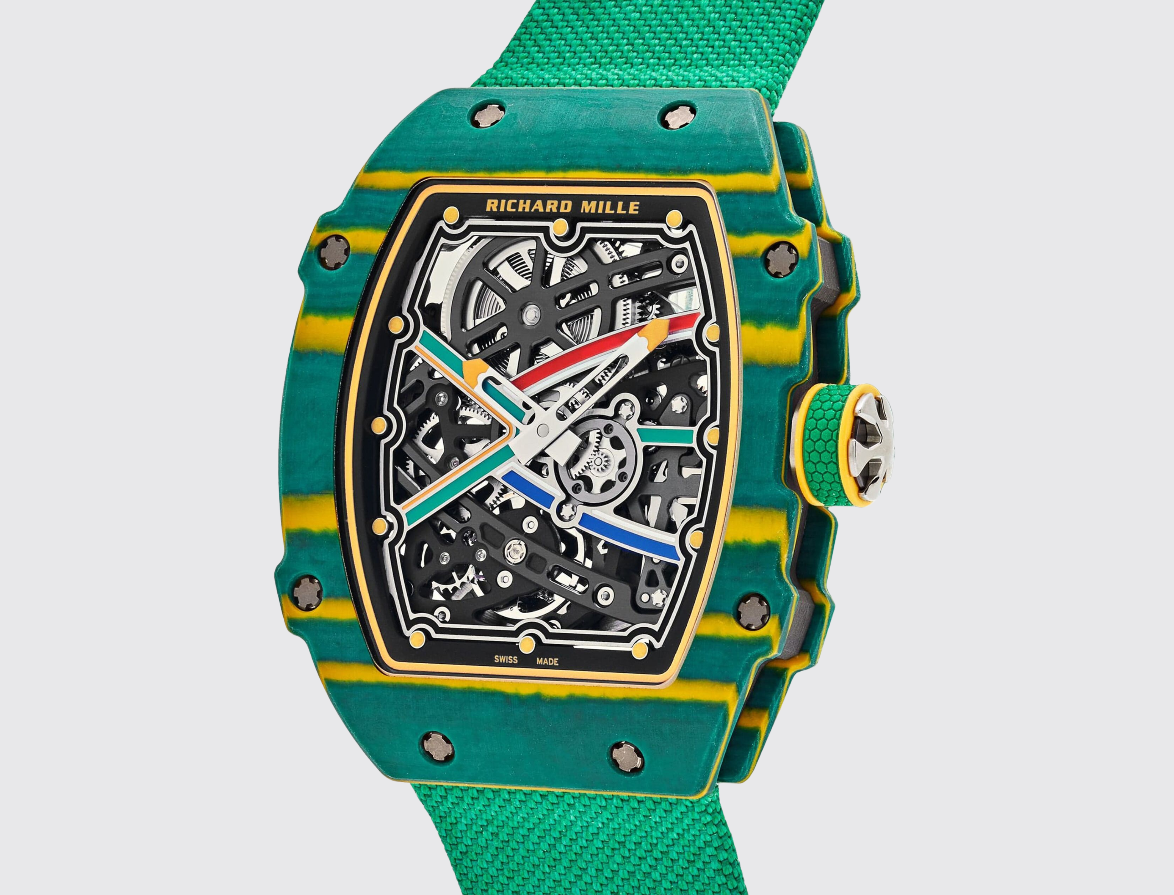 Starting with the RM 67-01, whose lightness, thinness and ergonomics made it a perfect candidate, we reworked its lines to highlight its hidden athletic qualities. The definition of the bezels and case with four extensions, in addition to being a hallmark of the brand’s sports watches, contributes to the reinforcement the case structure.