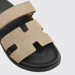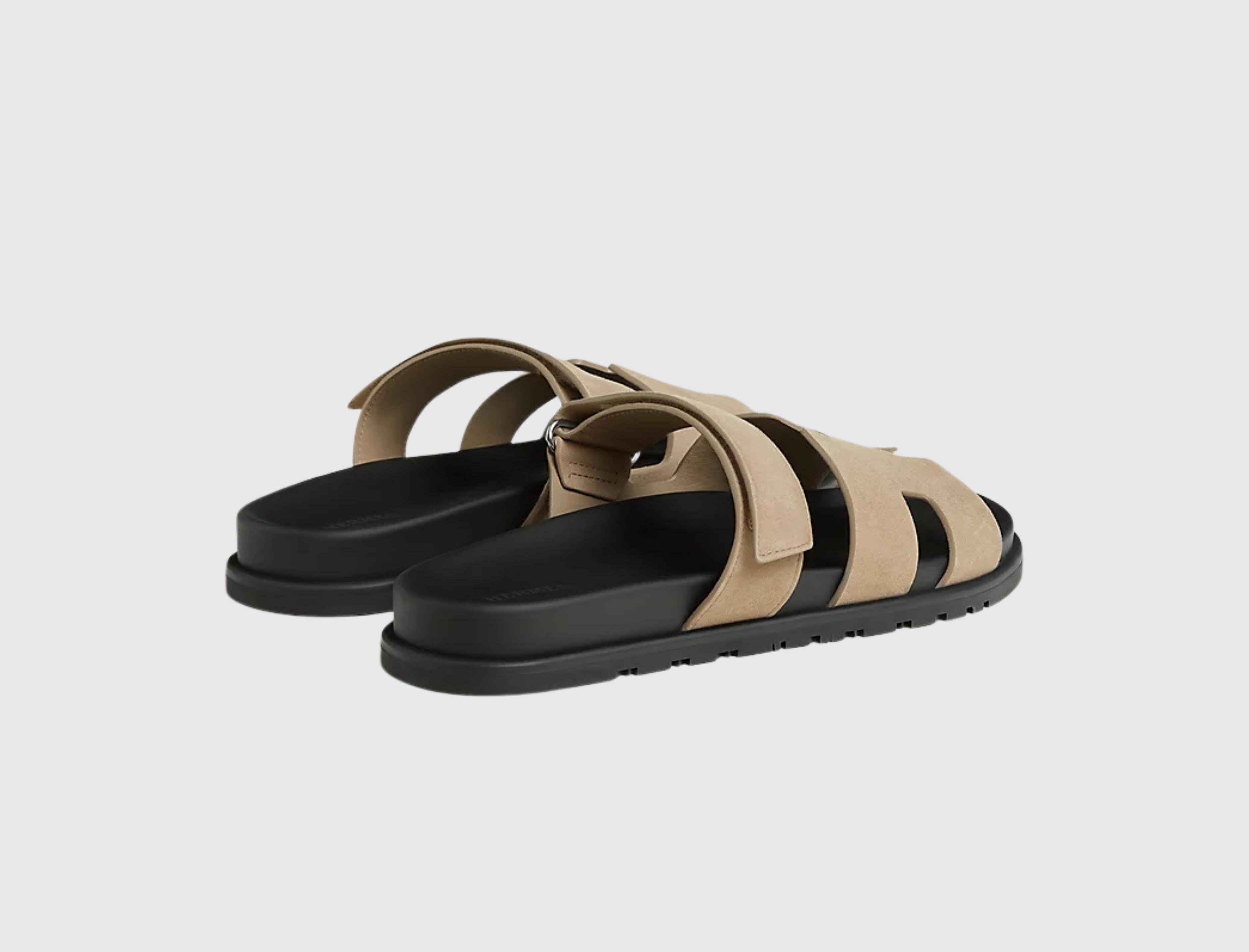 Techno-sandal in suede goatskin with anatomical rubber sole and adjustable strap. A sleek design for a comfortable and casual look.