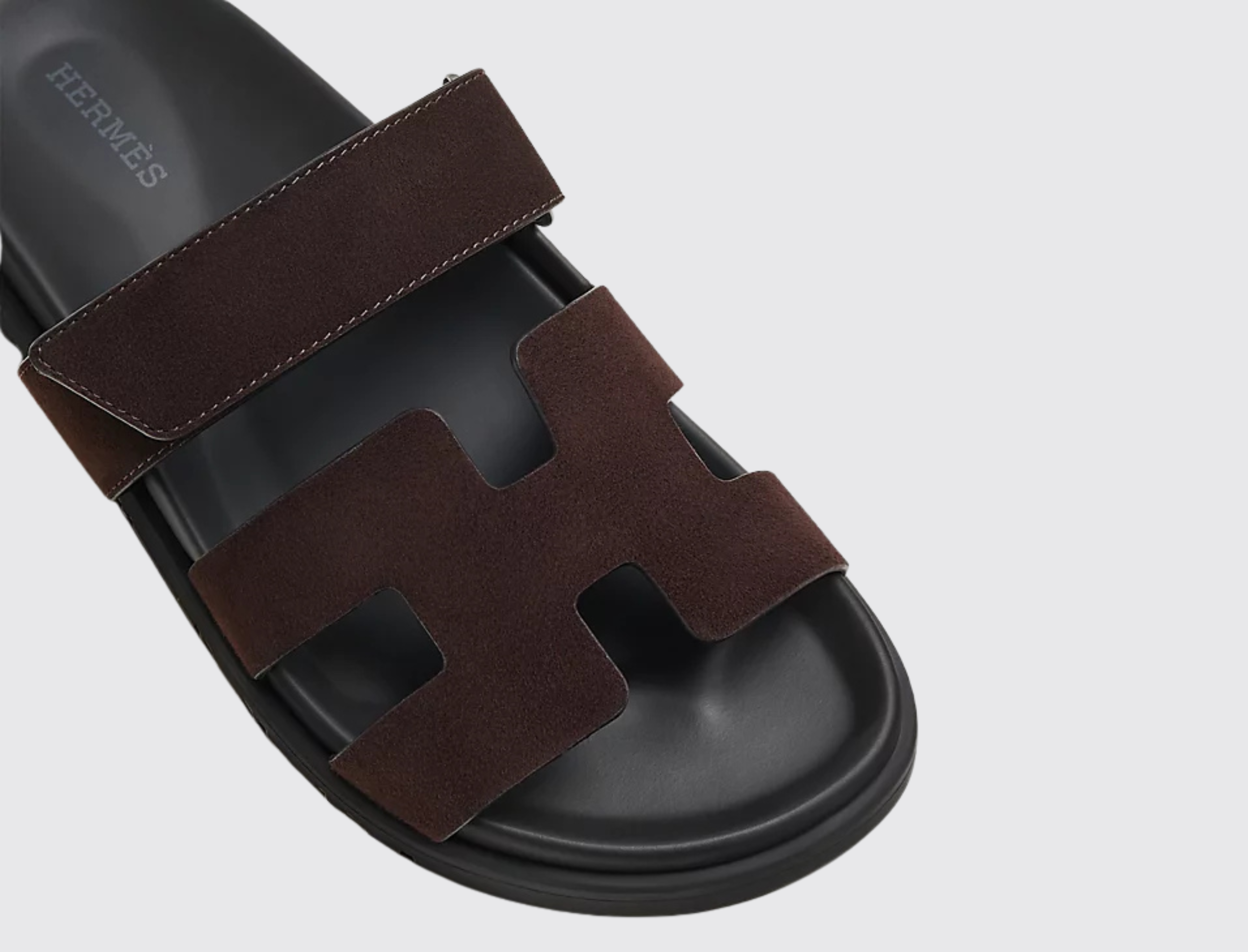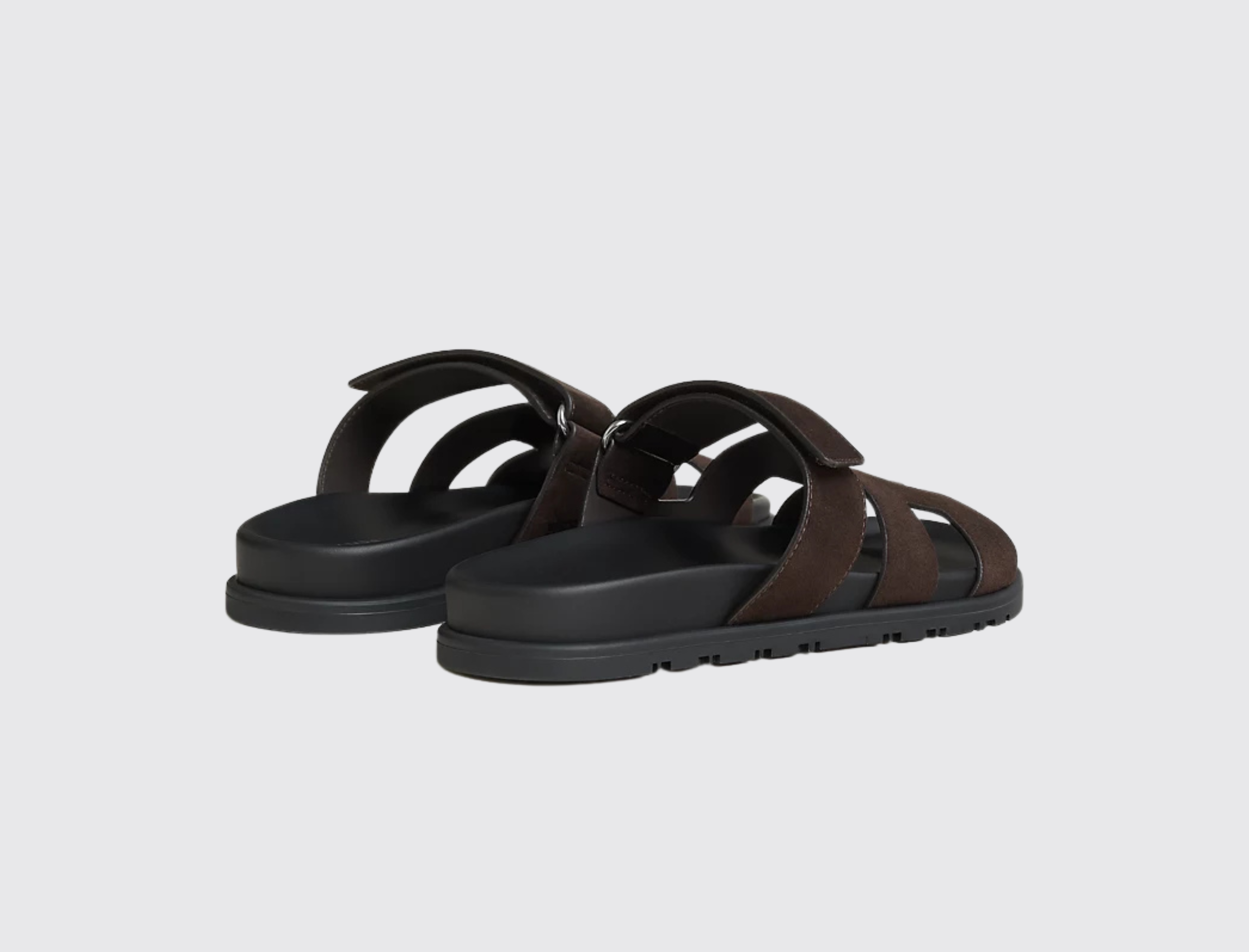 Techno-sandal in suede goatskin with anatomical rubber sole and adjustable strap. A sleek design for a comfortable and casual look.