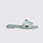 The sandal is an invitation to travel. Its journey begins on the shores of Oran, warmed by the radiant sun. Then, alive with vibrant colors and geometric lines, it makes its way between Ndebele houses. Created in 1997 by Pierre Hardy and enhanced by the iconic H cut, its style is minimalist and timeless. From one collection to the next, this summer icon is constantly reimagined in a multitude of colors and materials.