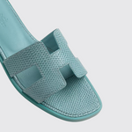 The sandal is an invitation to travel. Its journey begins on the shores of Oran, warmed by the radiant sun. Then, alive with vibrant colors and geometric lines, it makes its way between Ndebele houses. Created in 1997 by Pierre Hardy and enhanced by the iconic H cut, its style is minimalist and timeless. From one collection to the next, this summer icon is constantly reimagined in a multitude of colors and materials.