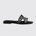 The sandal is an invitation to travel. Its journey begins on the shores of Oran, warmed by the radiant sun. Then, alive with vibrant colors and geometric lines, it makes its way between Ndebele houses. Created in 1997 by Pierre Hardy and enhanced by the iconic H cut, its style is minimalist and timeless. From one collection to the next, this summer icon is constantly reimagined in a multitude of colors and materials.