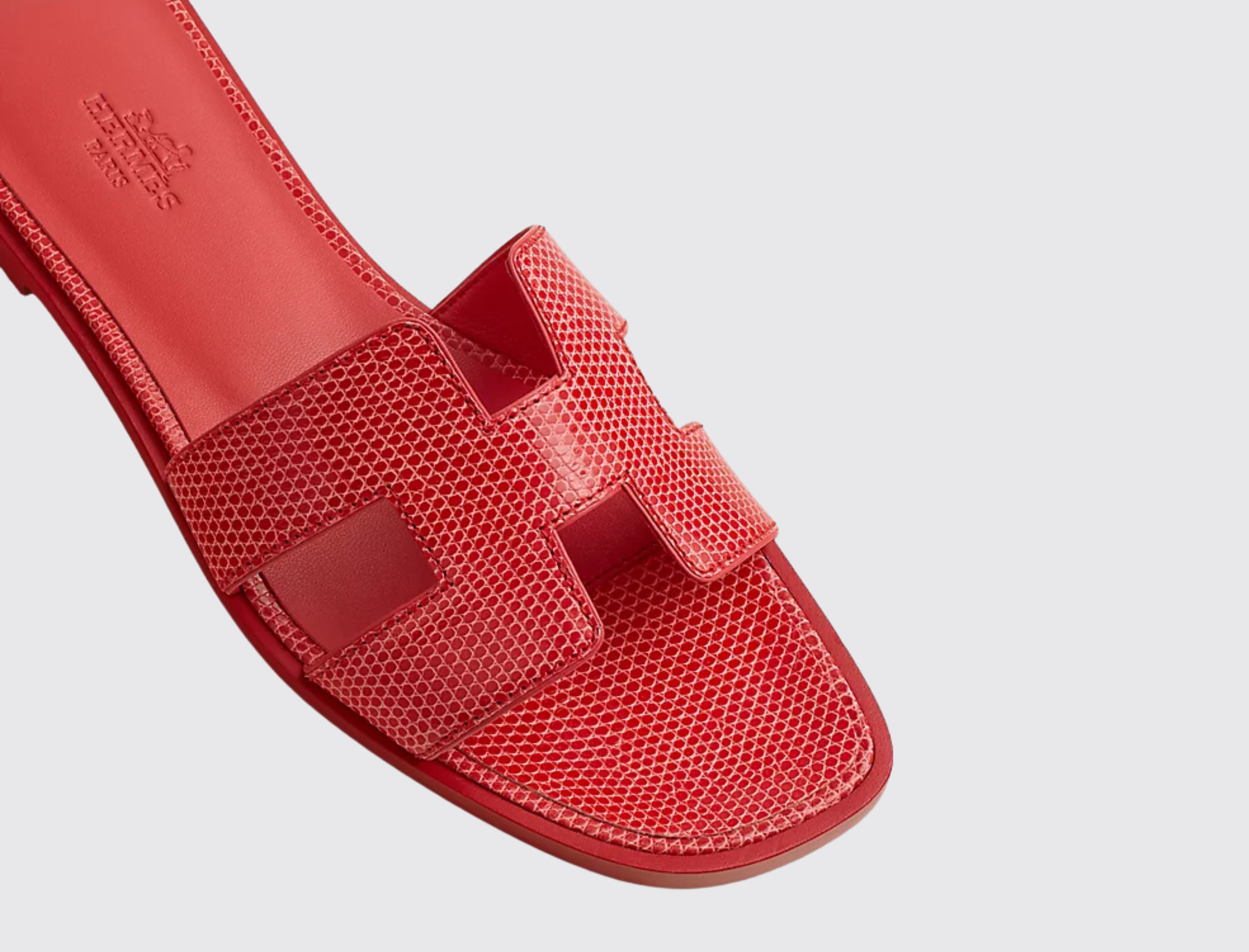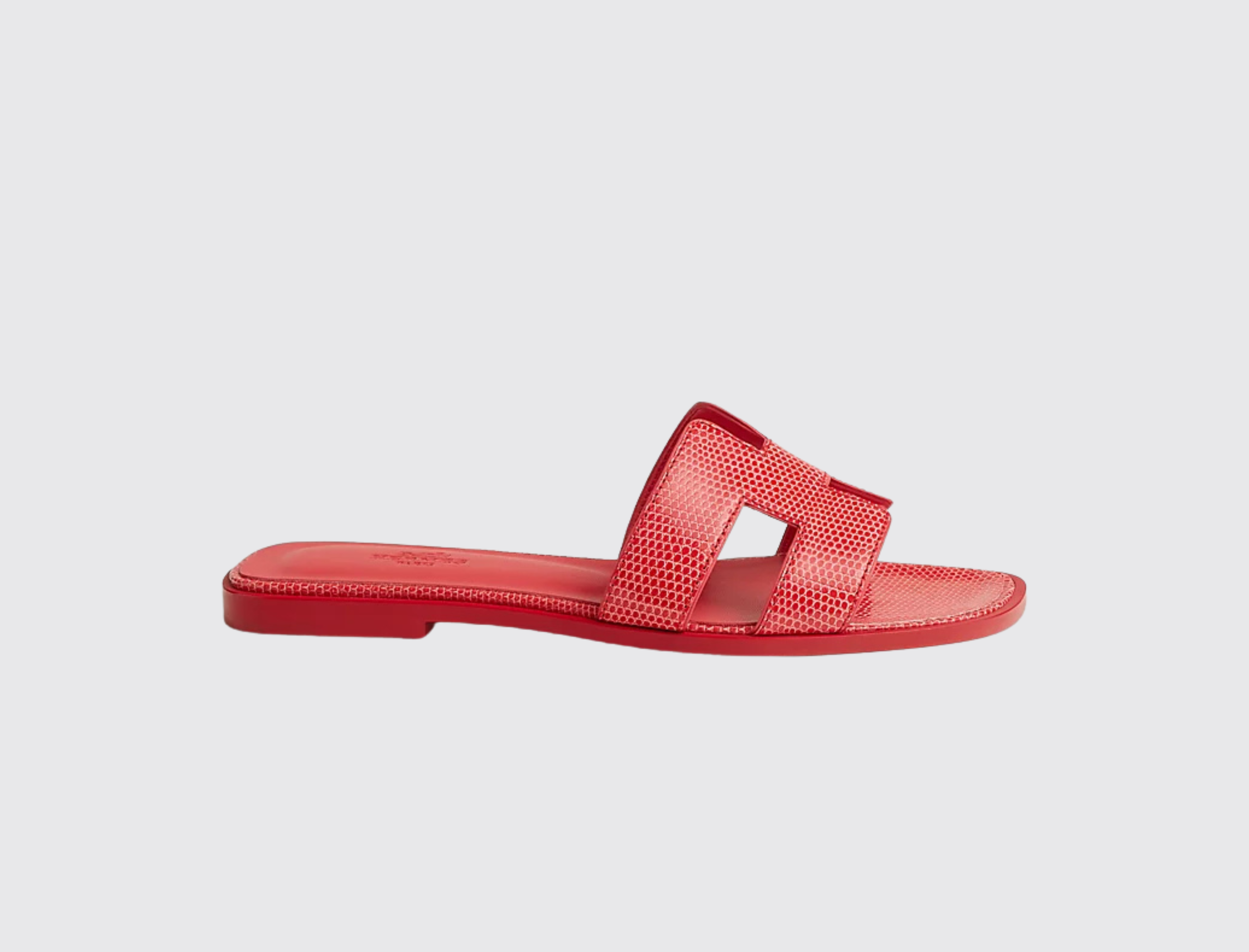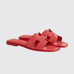 The sandal is an invitation to travel. Its journey begins on the shores of Oran, warmed by the radiant sun. Then, alive with vibrant colors and geometric lines, it makes its way between Ndebele houses. Created in 1997 by Pierre Hardy and enhanced by the iconic H cut, its style is minimalist and timeless. From one collection to the next, this summer icon is constantly reimagined in a multitude of colors and materials.