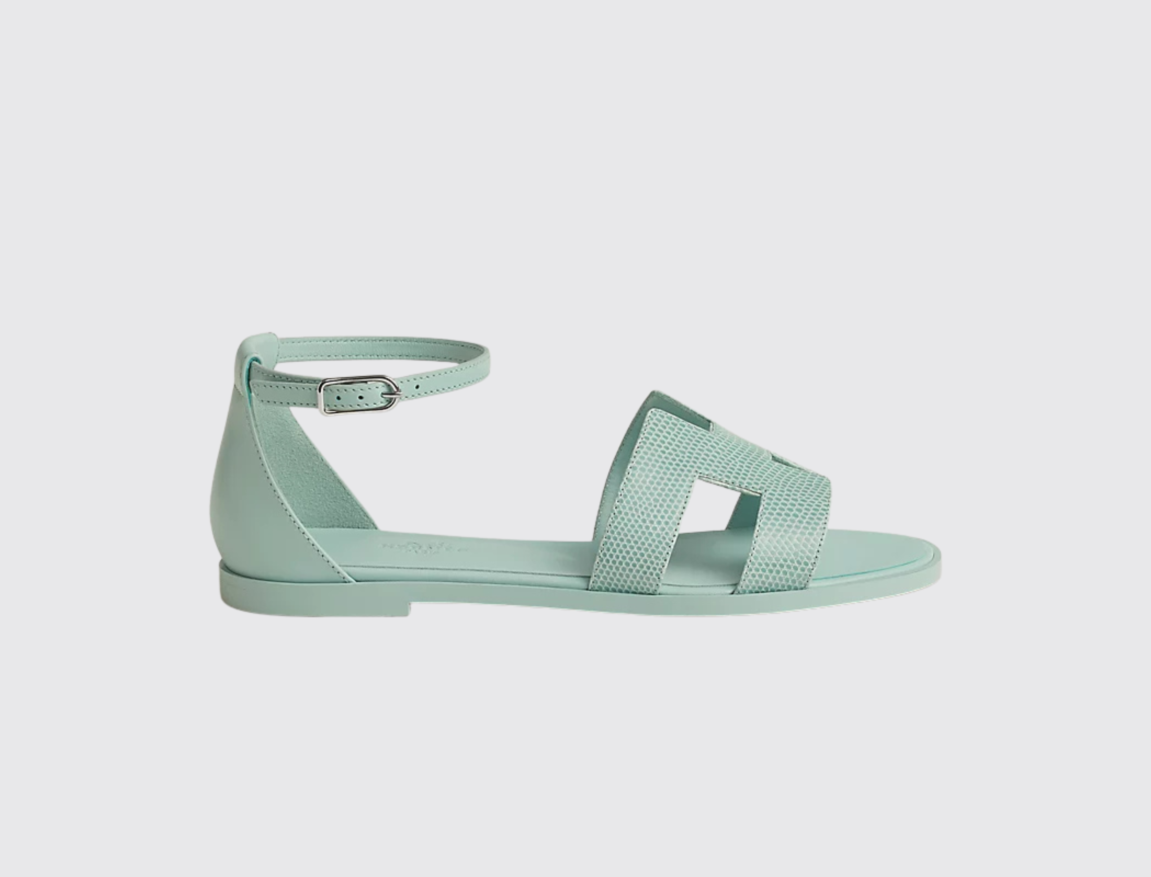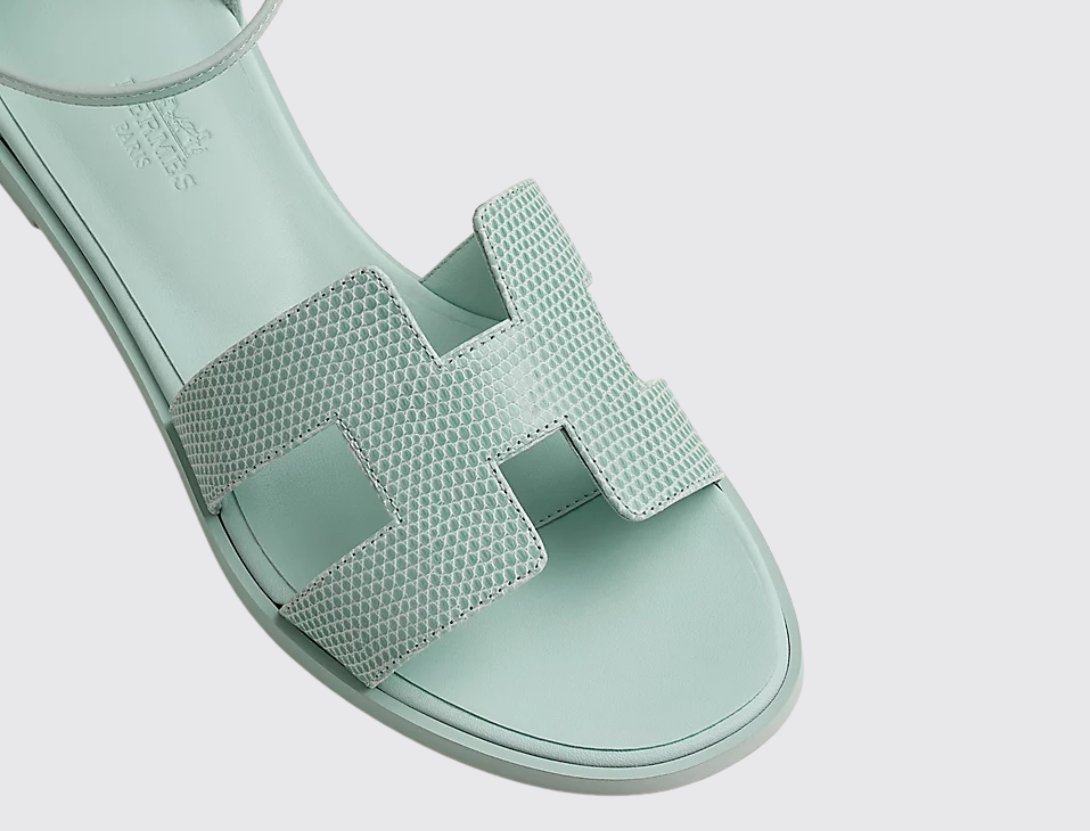 - Shiny Java lizard and calfskin with iconic "H" cut-out