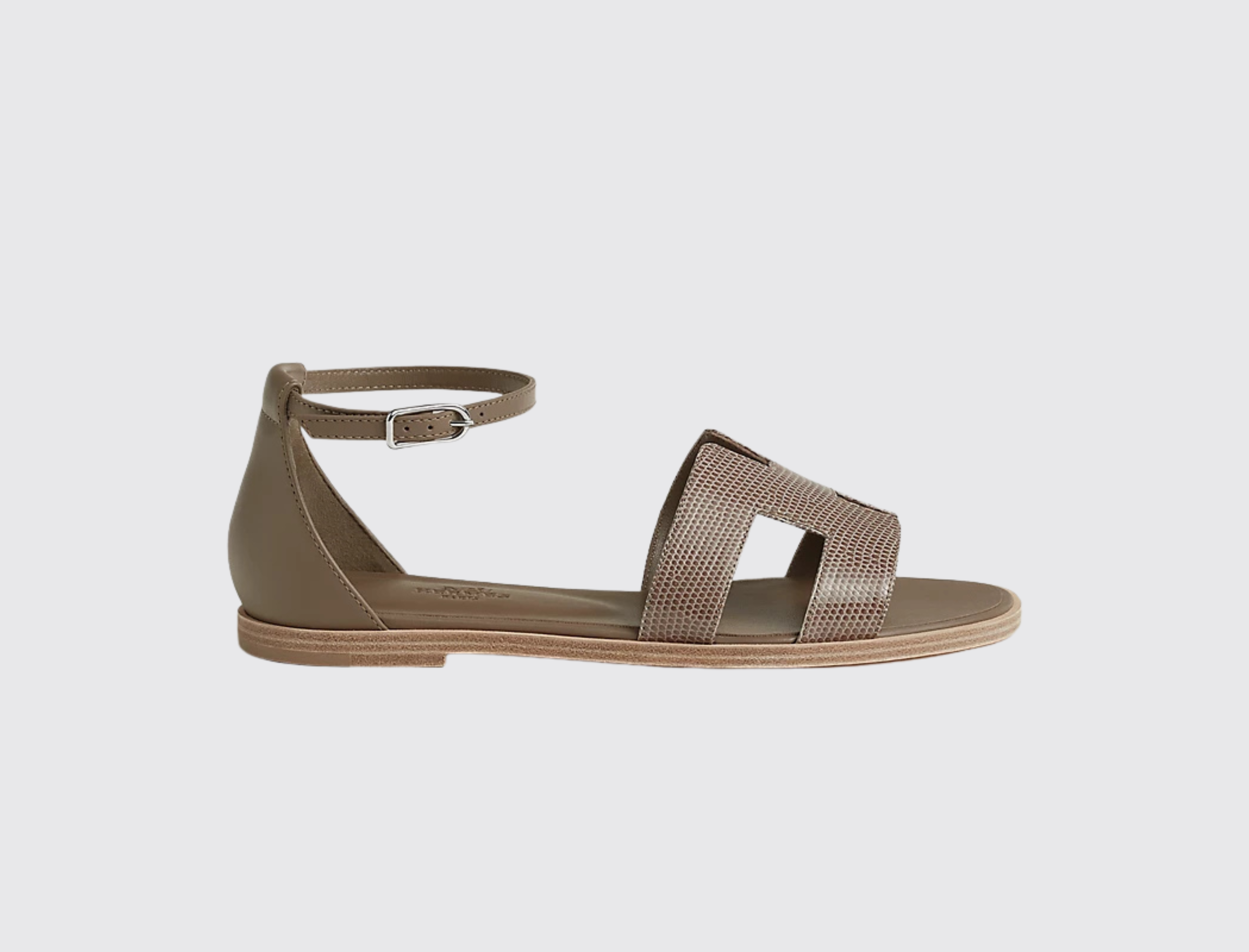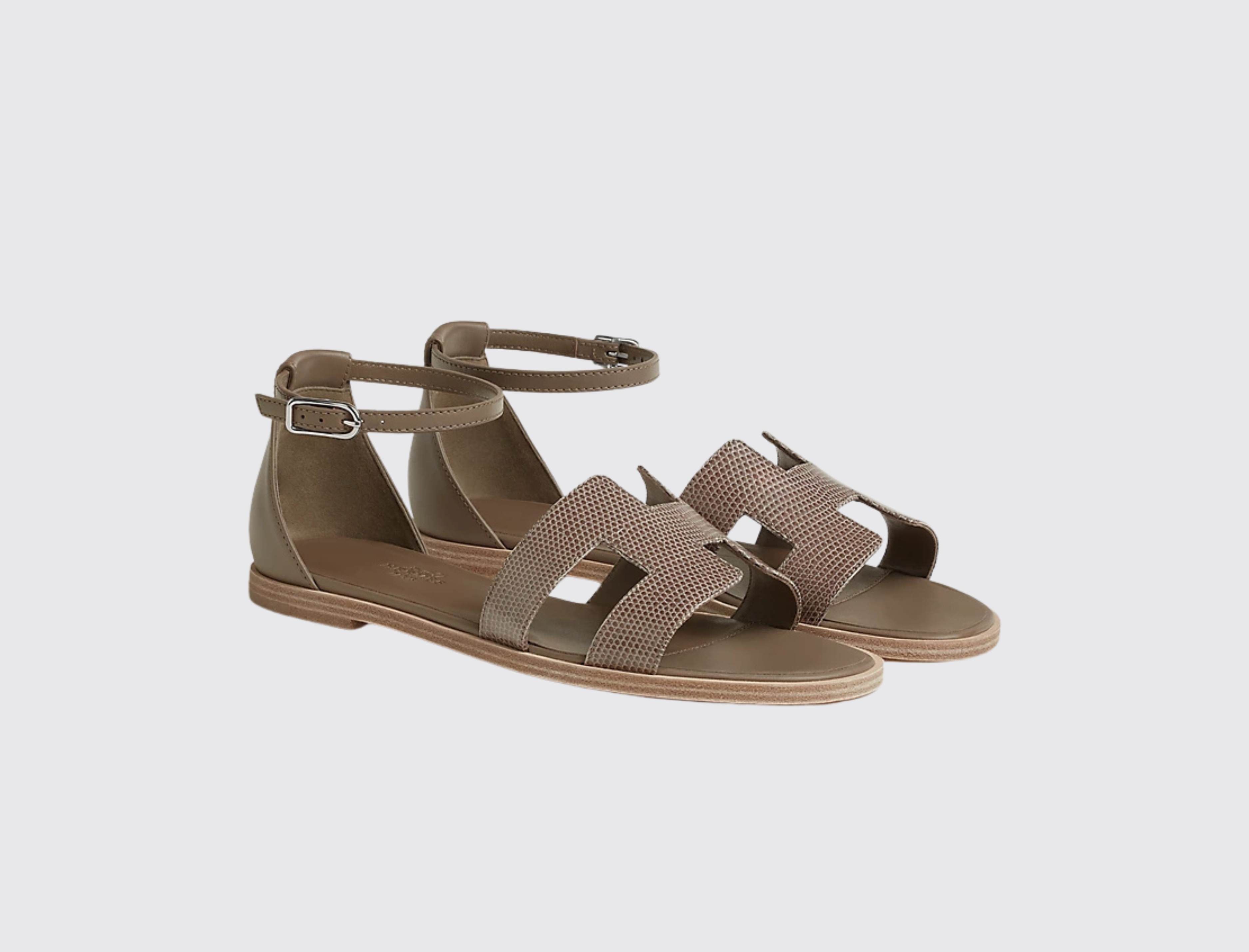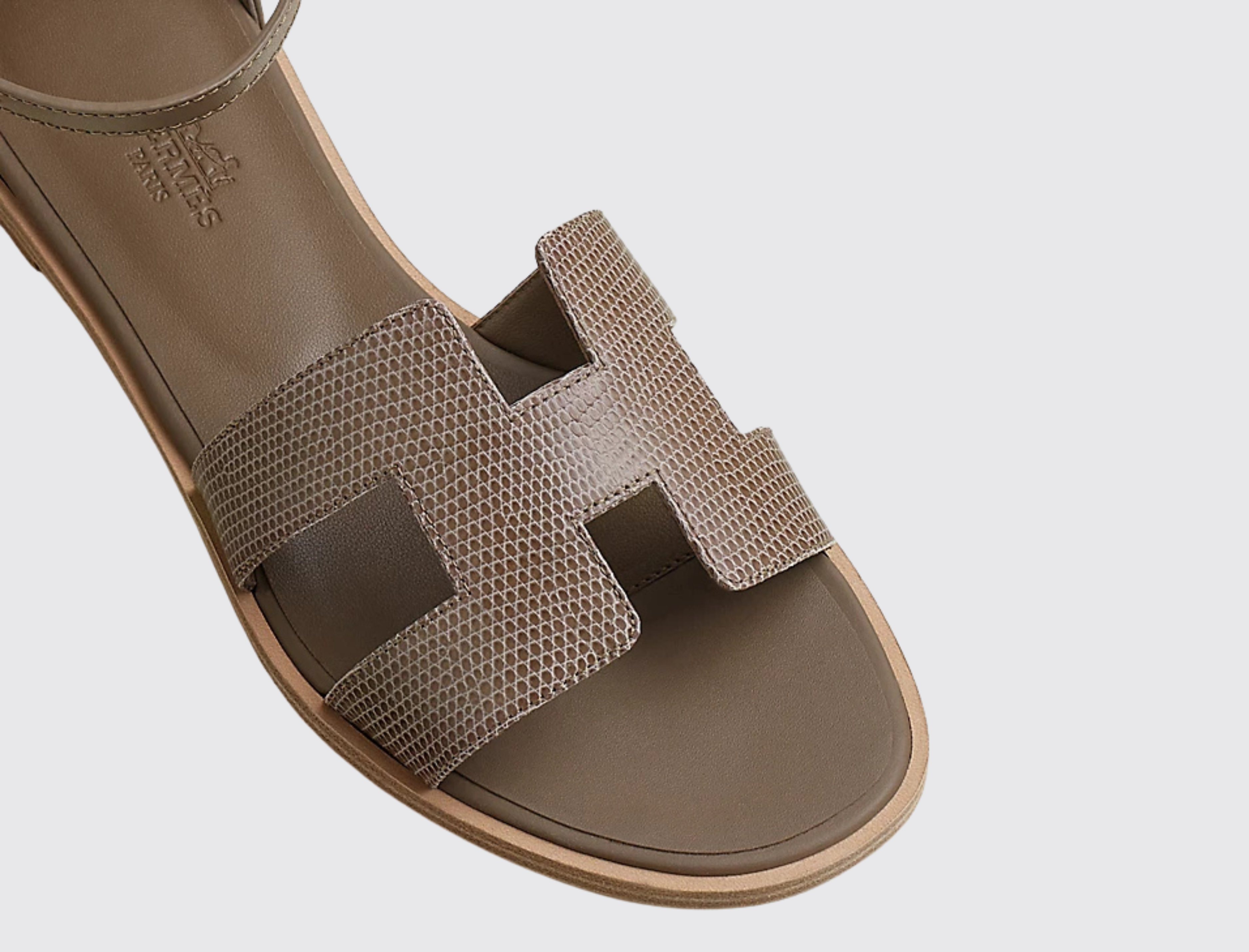 - Shiny Java lizard and calfskin with iconic "H" cut-out