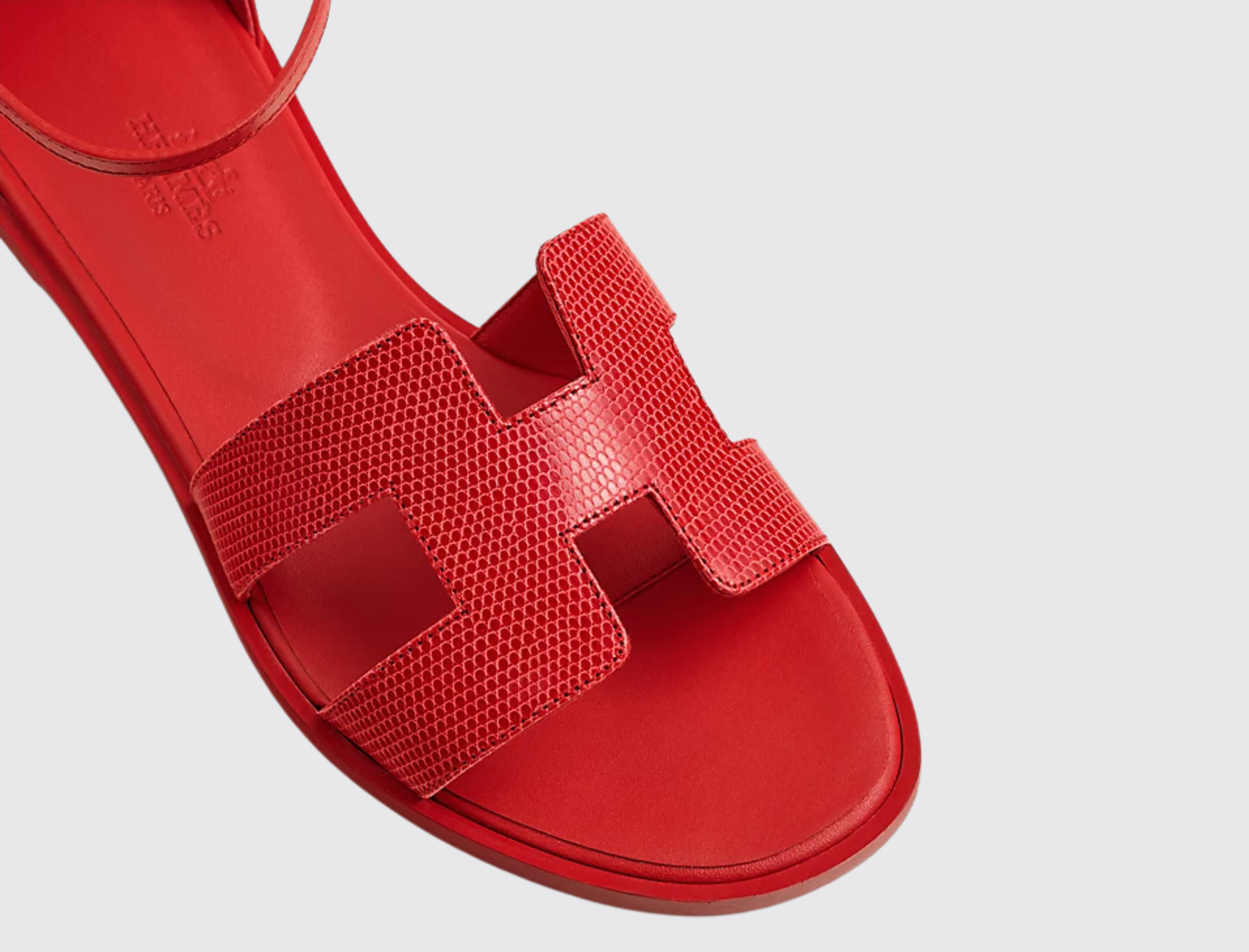 - Shiny Java lizard and calfskin with iconic "H" cut-out