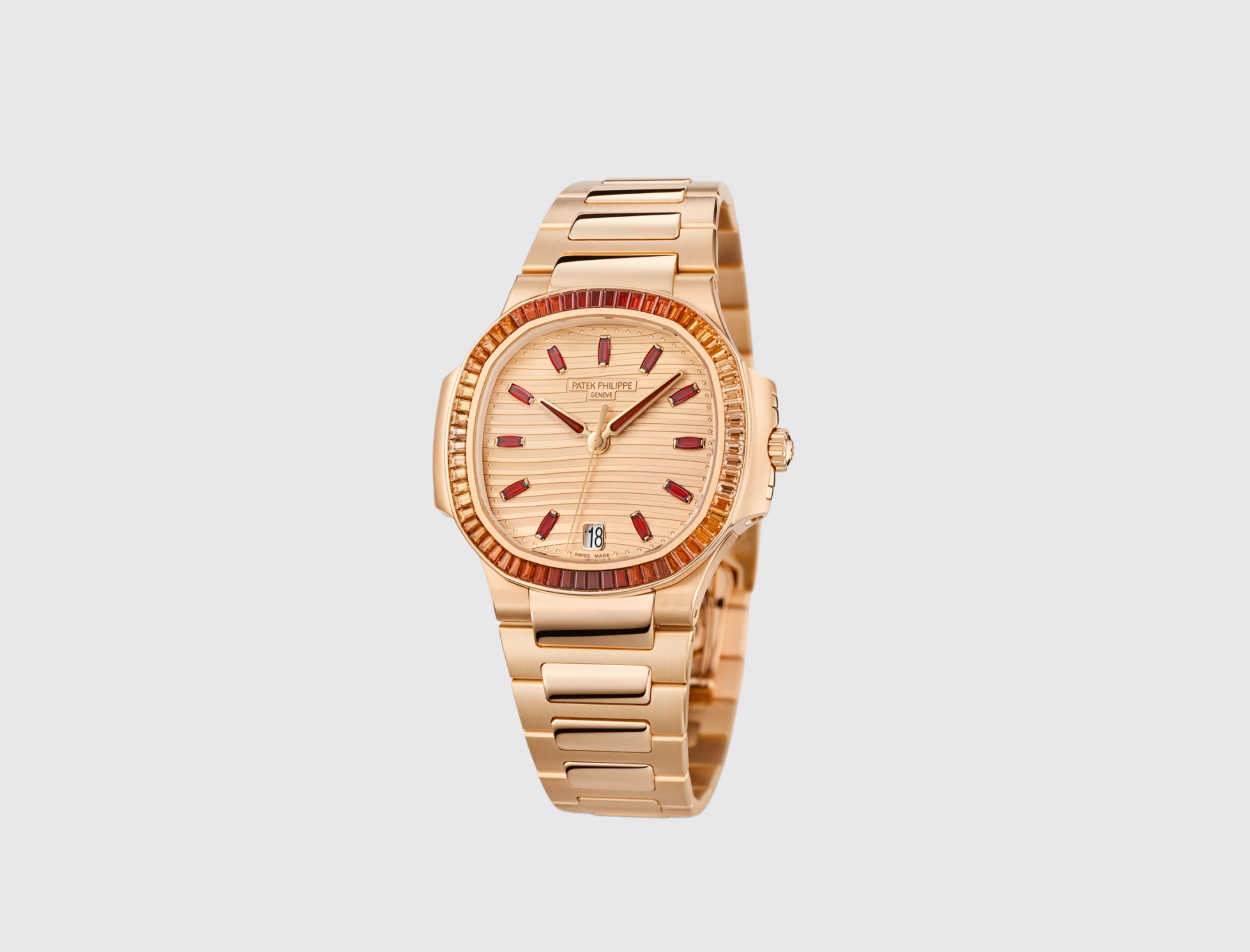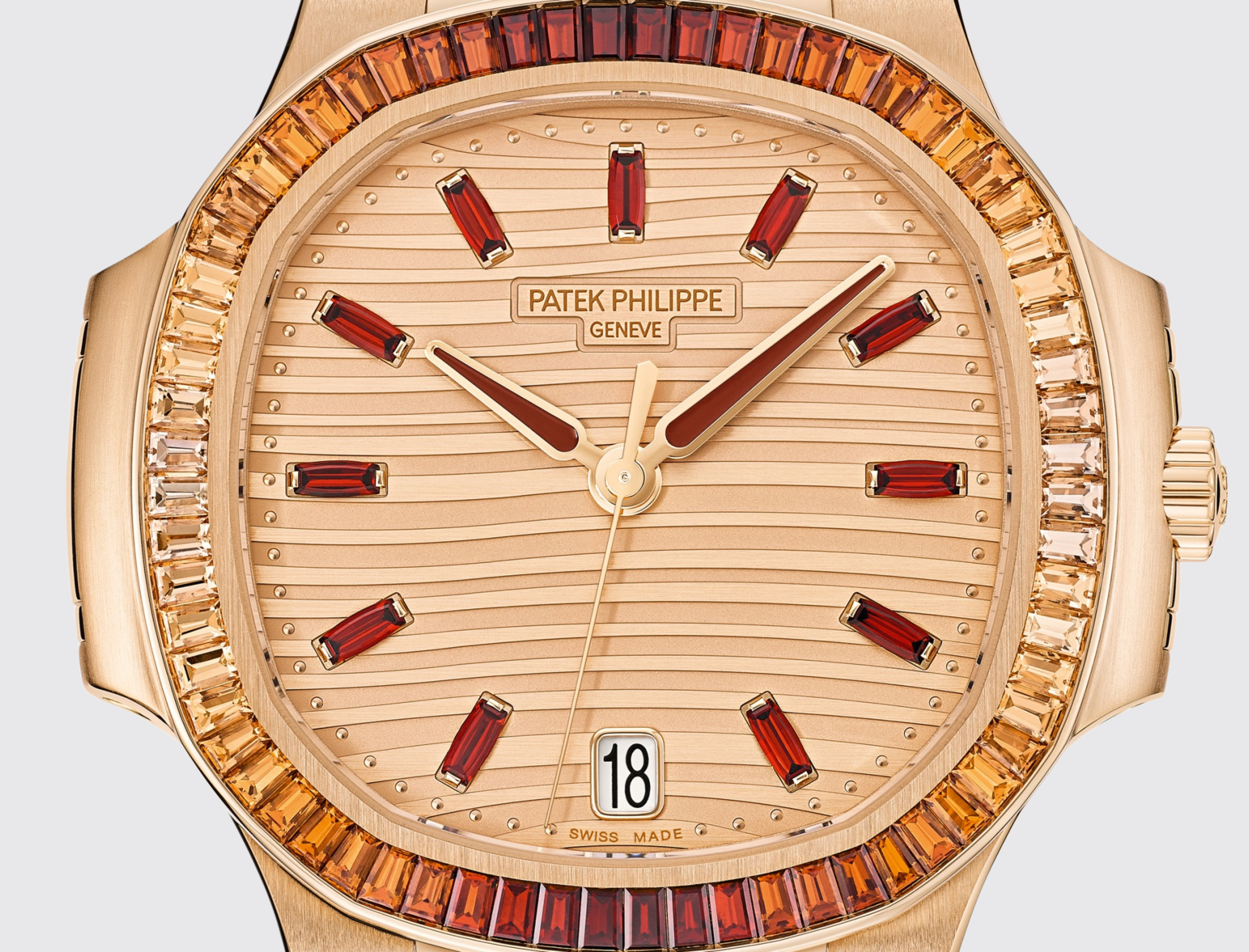 Patek Philippe presents a new ladies’ Nautilus jewelry version in which rose gold harmonizes distinctively with the luster of spessartite gems.